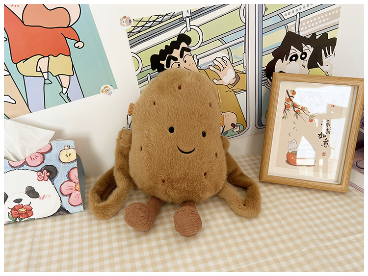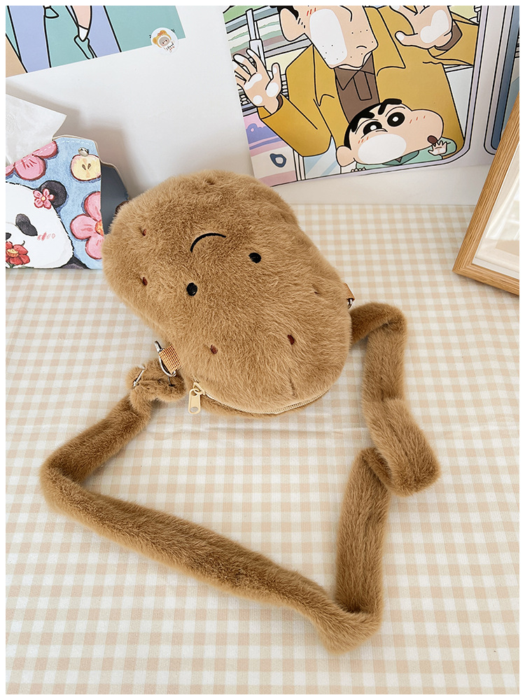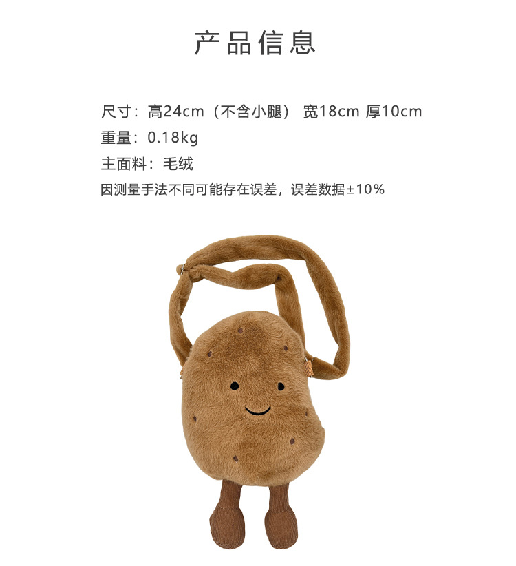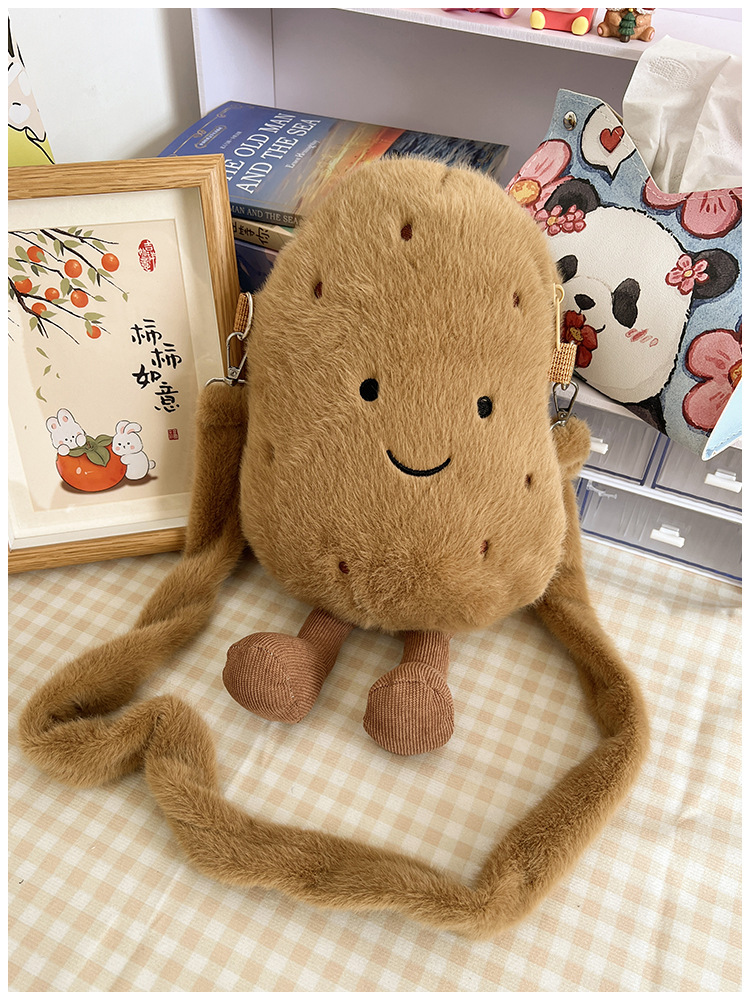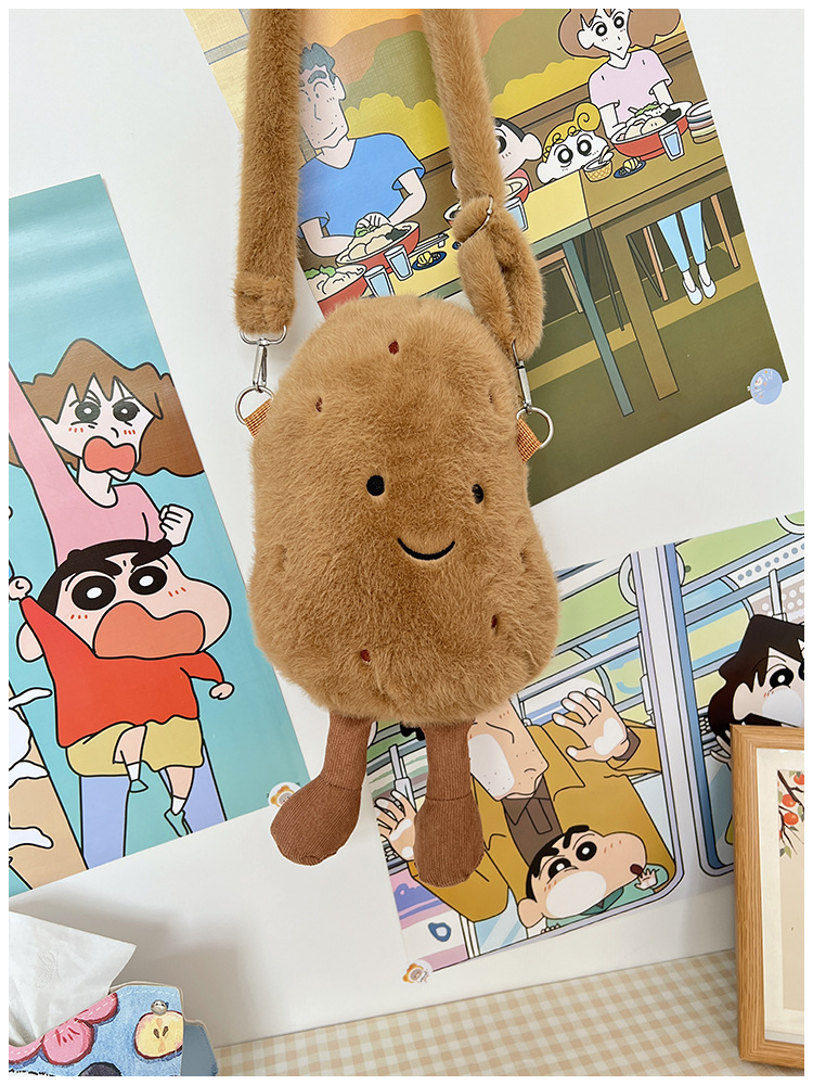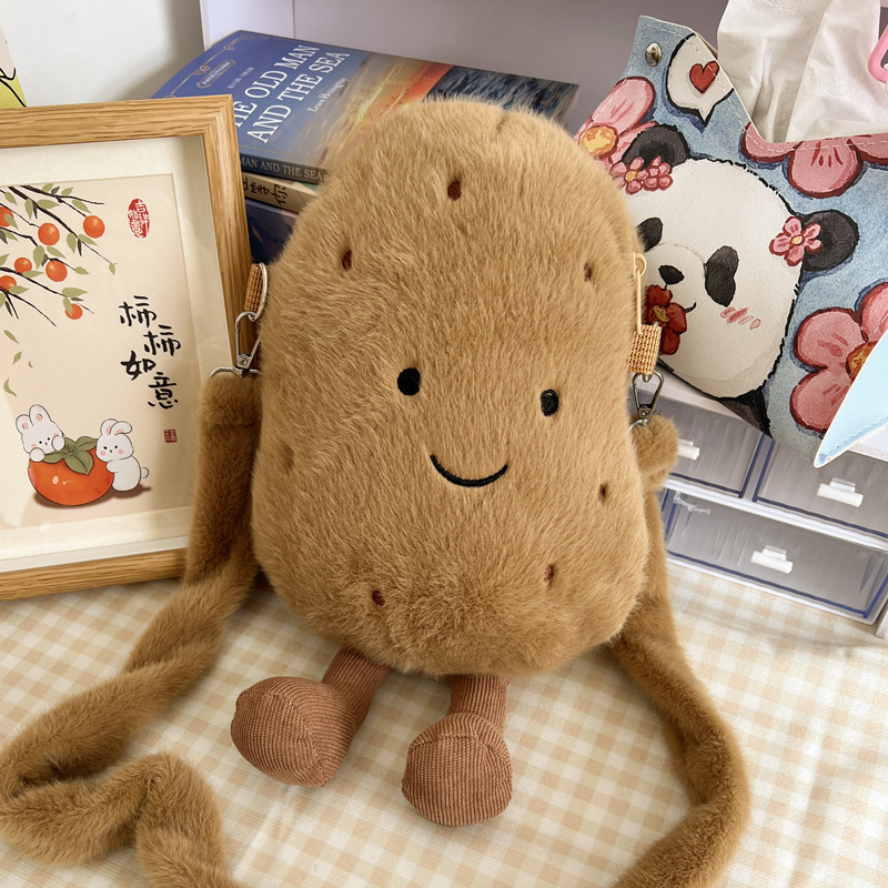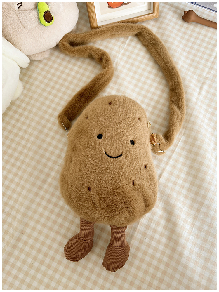 2024 새로운 귀여운 작은 감자 크로스 백 만화 봉제 인형 어깨 가방 인형 동전 지갑 생일 선물