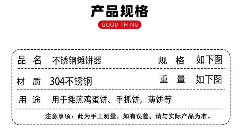 전체 304 스테인리스 스틸 팬케이크 팬 (소형) 13.1*26cm, 35g