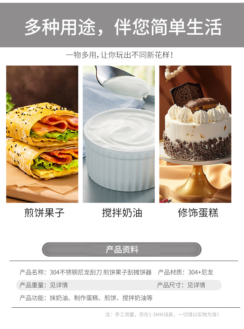 스테인레스 스틸 팬케이크 과일 Stall 가정용 팬케이크 도구 실리콘 스크레이퍼 계란 케이크 스크레이퍼 팬케이크 도구