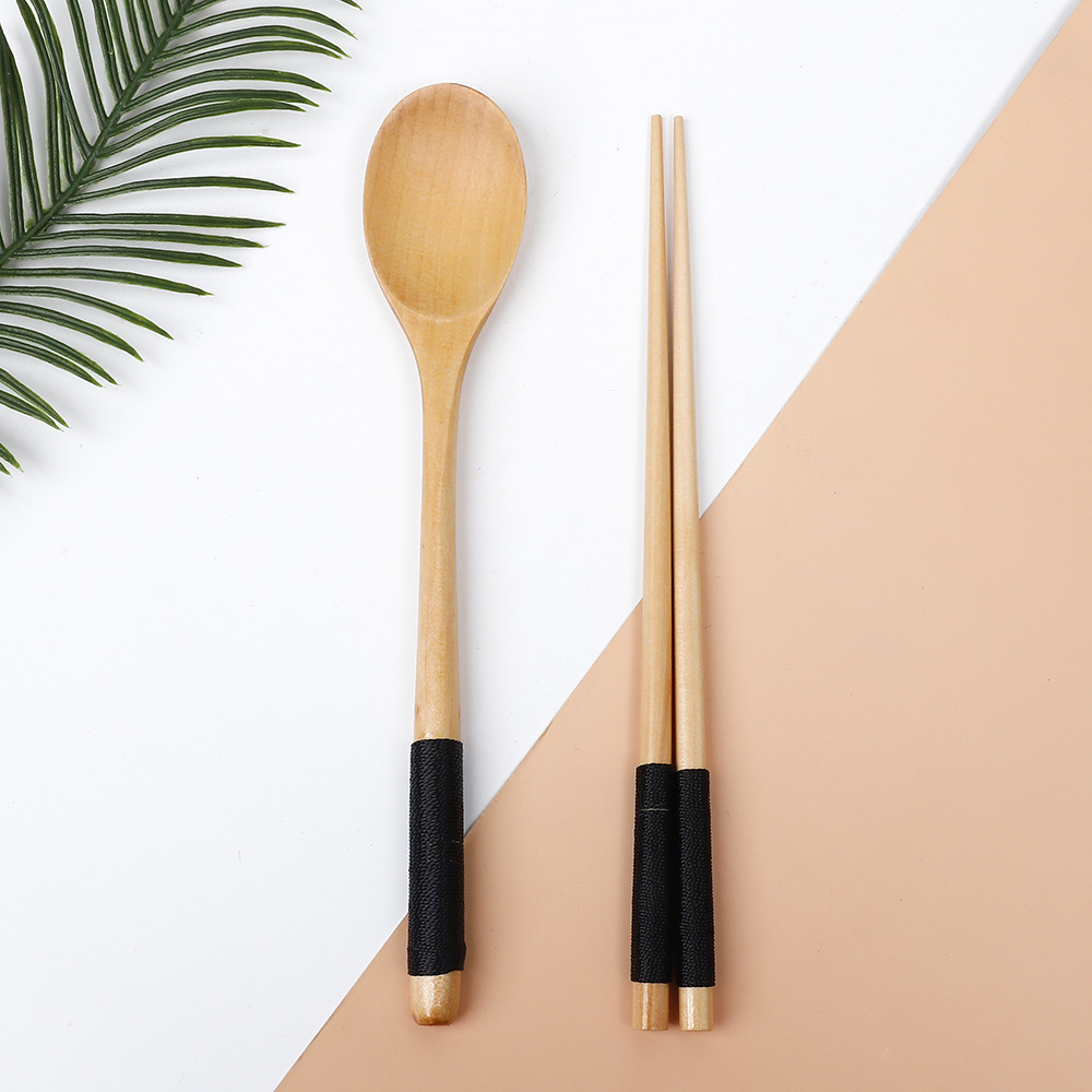 가정용 일본 나무 숟가락 젓가락 세트 도매 긴 손잡이 숟가락 저녁 식사 숟가락 식기 공장 직접 공급