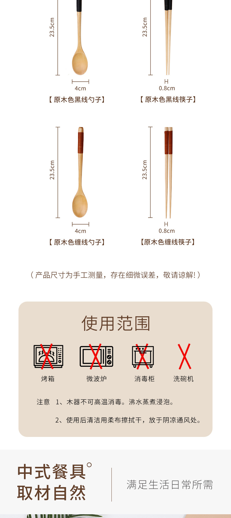 나무색 실로 감싼 젓가락과 숟가락