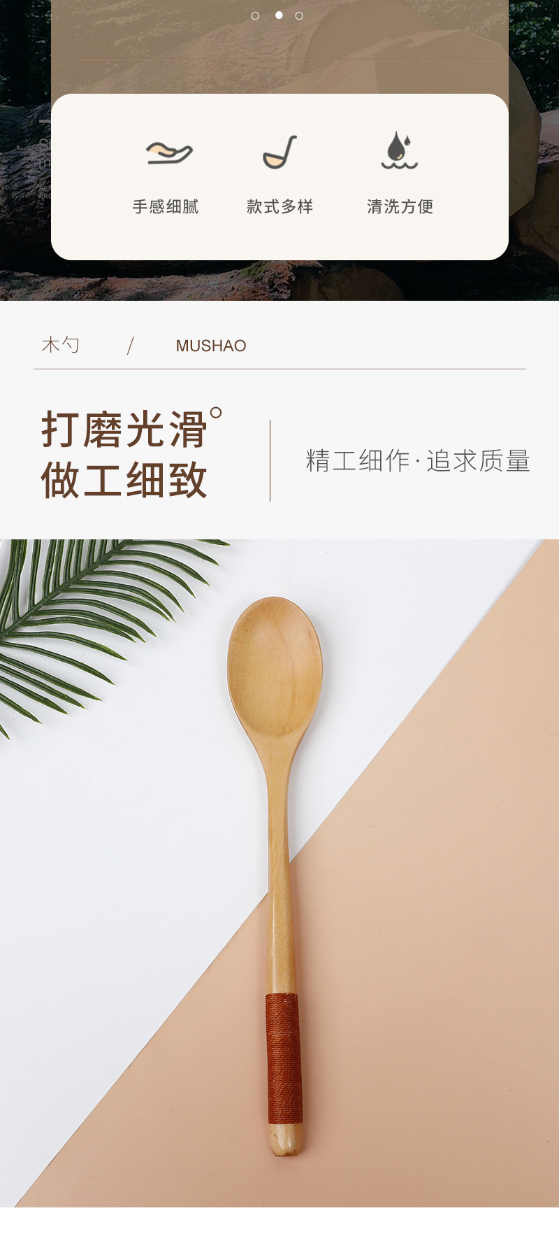 우드 컬러 실로 감싼 스푼