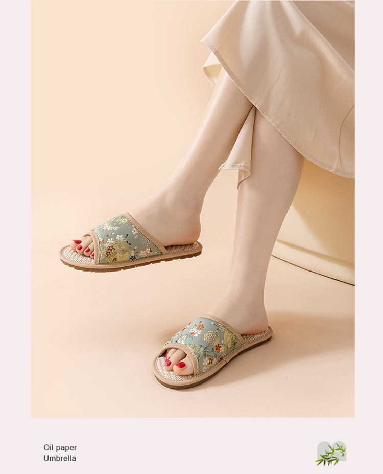 리넨 슬리퍼 여성 실내 홈 2024 여름 새로운 미끄럼 방지 쇠고기 바닥 자수 중국 스타일 오픈 발가락 샌들
