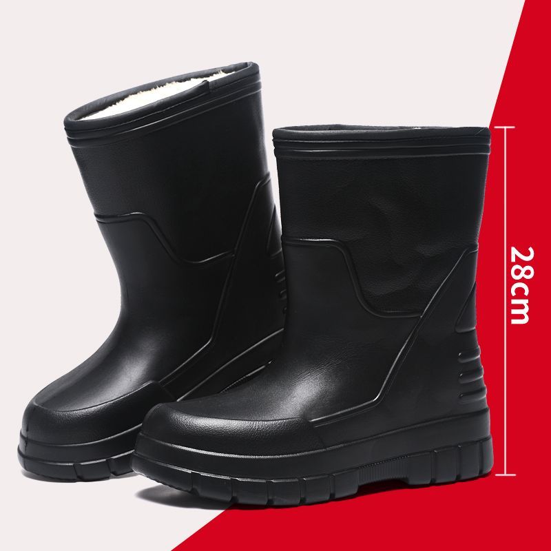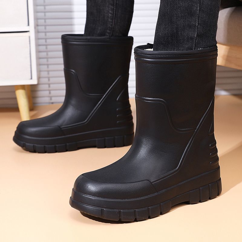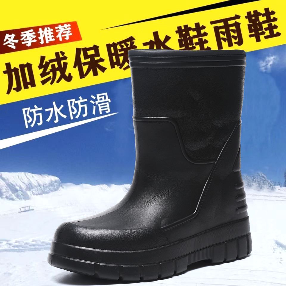 폭발성 기모 남성용 레인 부츠 미끄럼 방지 따뜻한 하이 튜브 방수 스노우 부츠 두꺼운 바닥 내마모성 EVA 초경량 올인원 신발