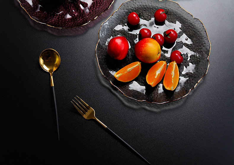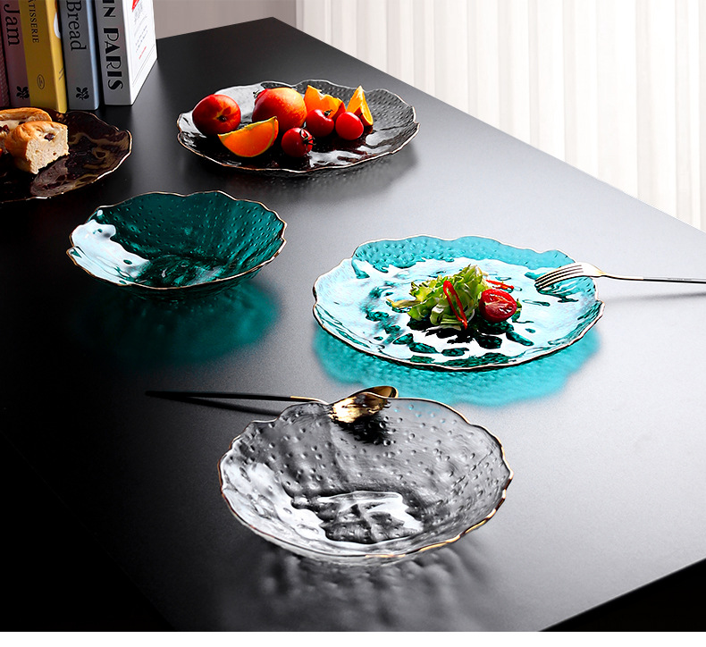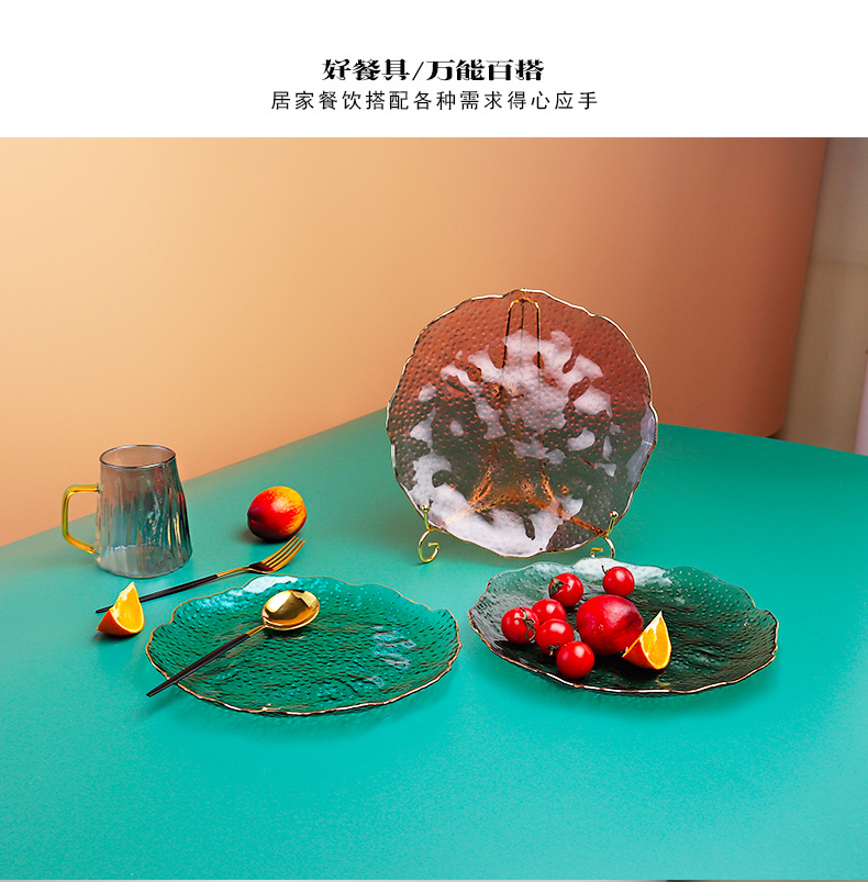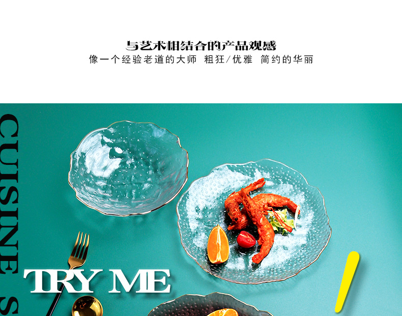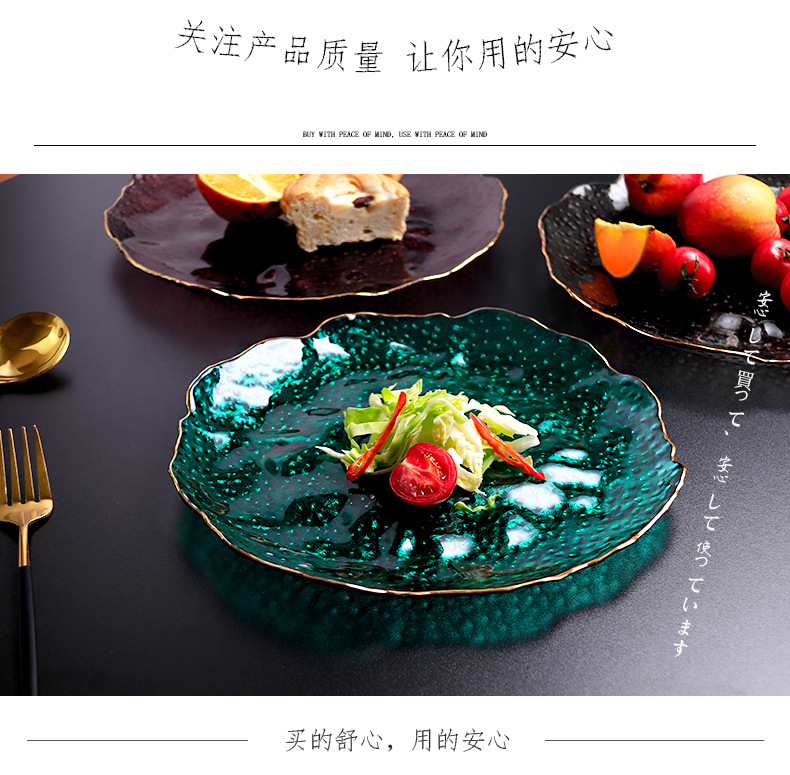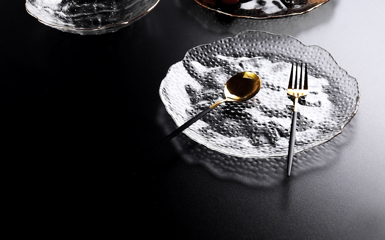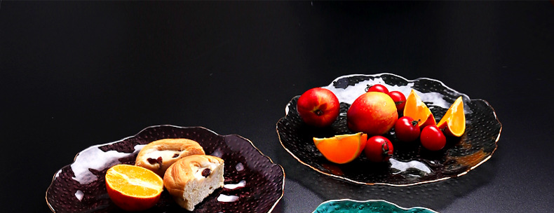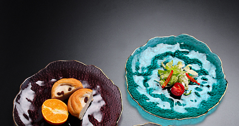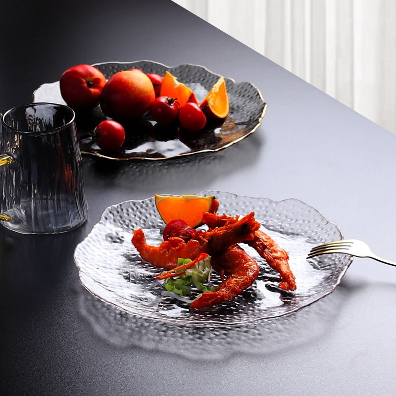 餐具玻璃盘子欧美风格灰色餐饮特色小吃店直播带货专供货源圆盘