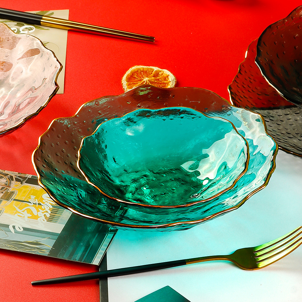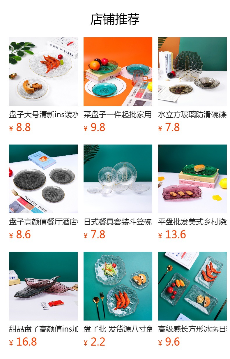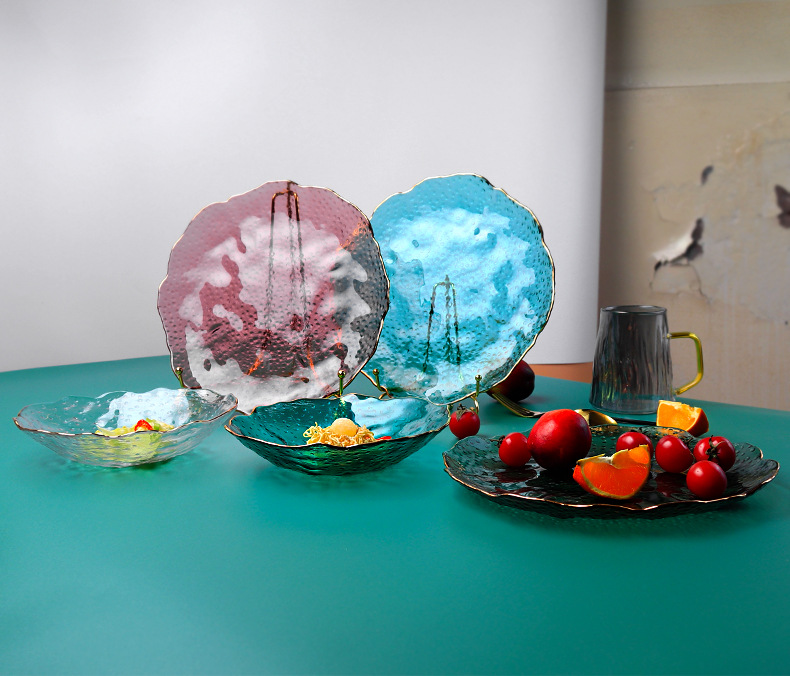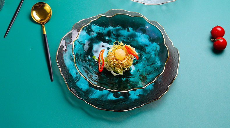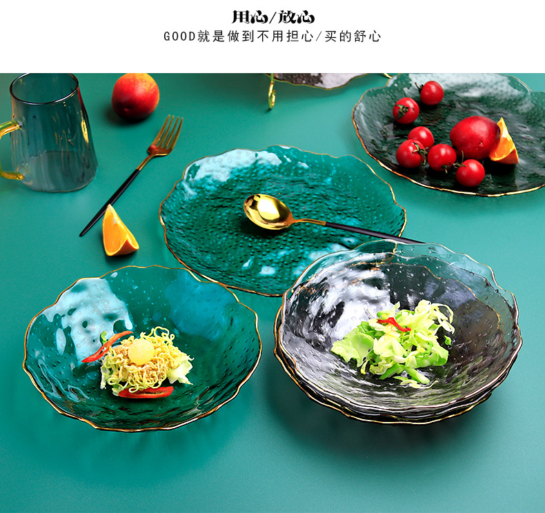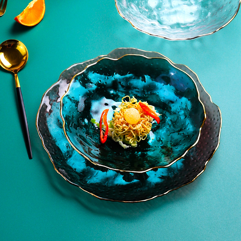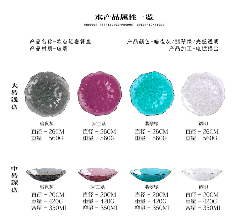 餐具玻璃盘子欧美风格灰色餐饮特色小吃店直播带货专供货源圆盘