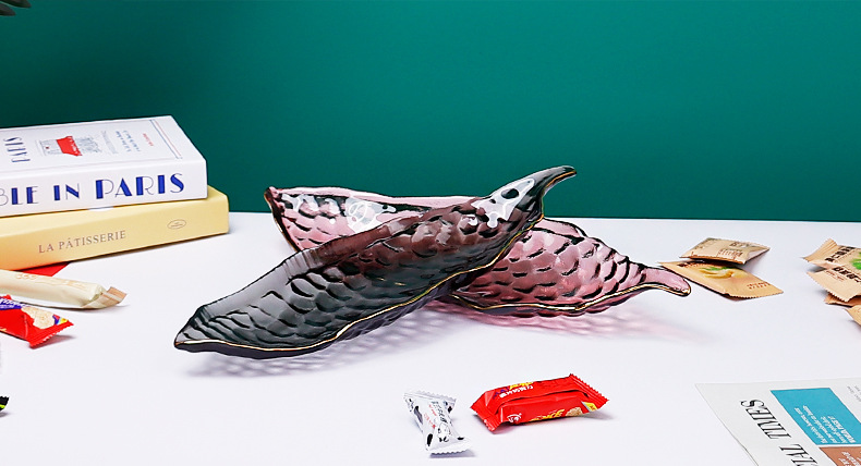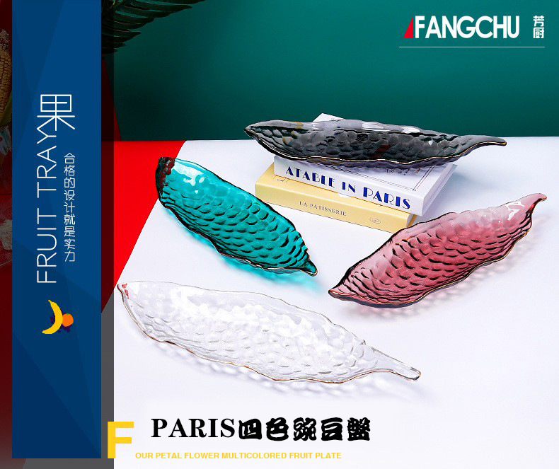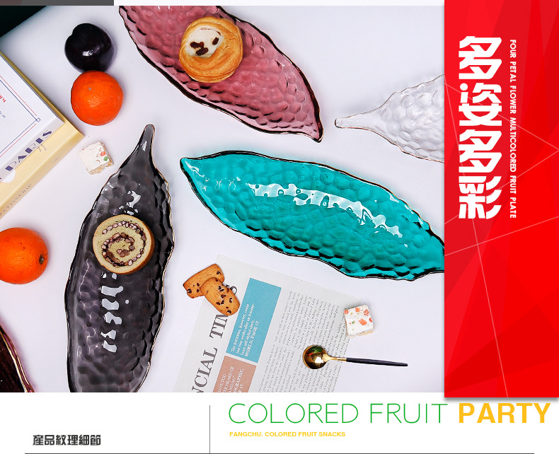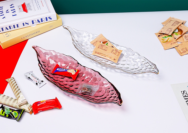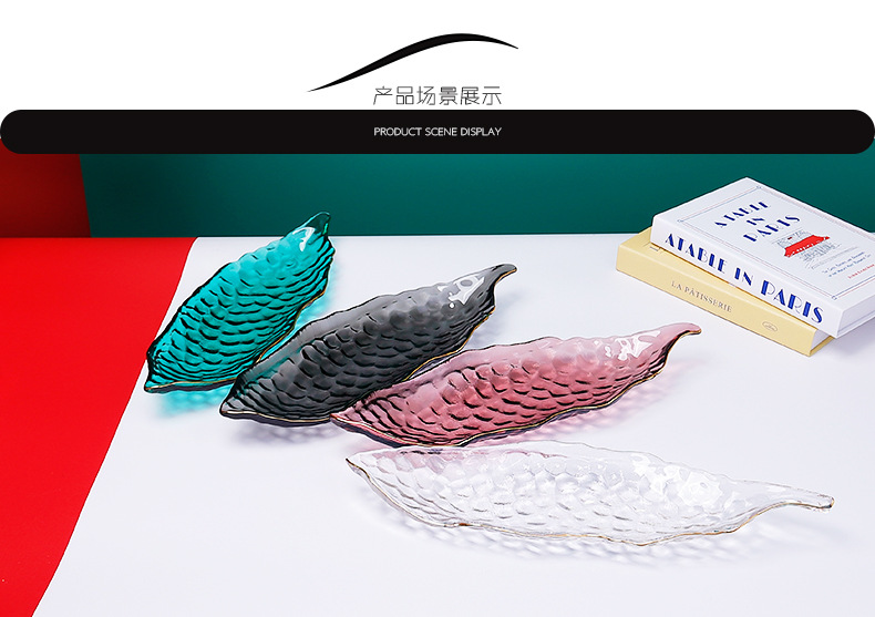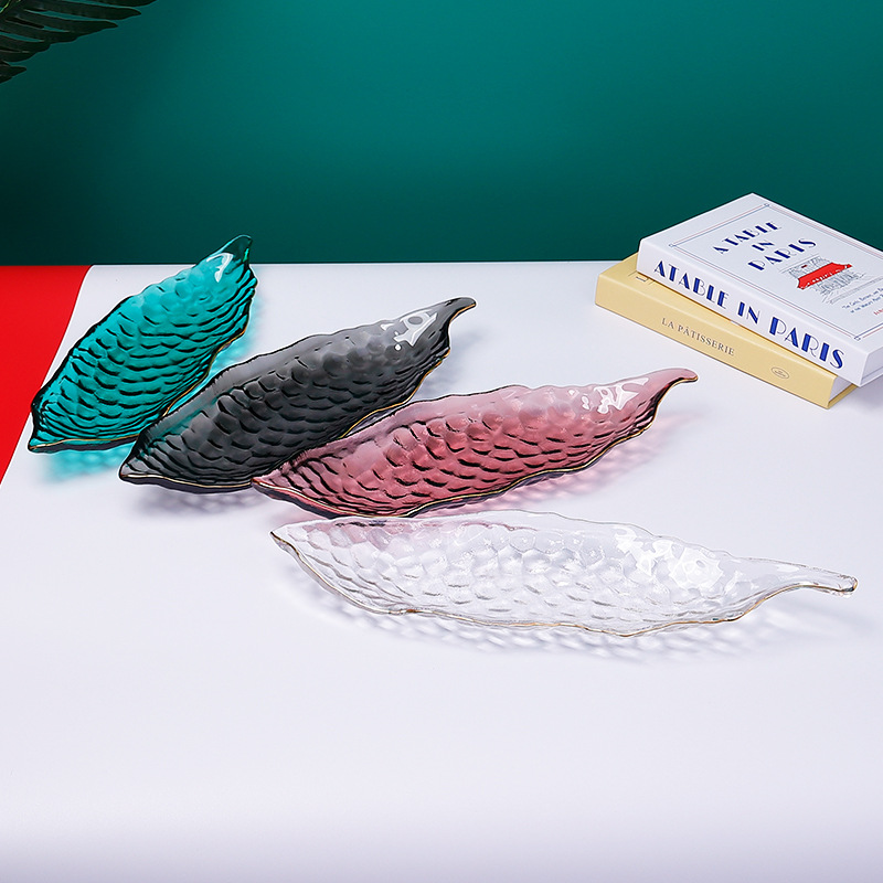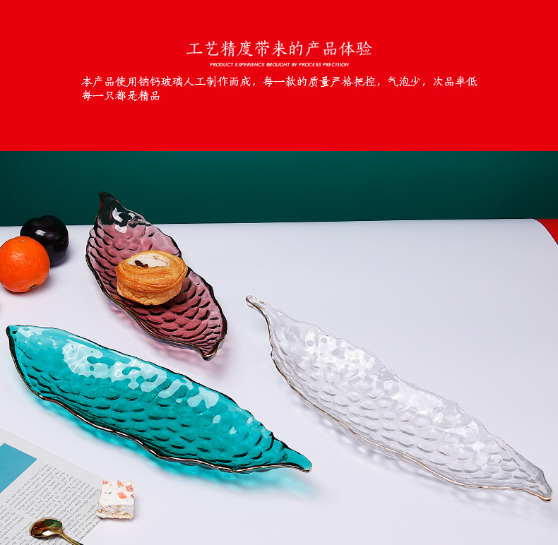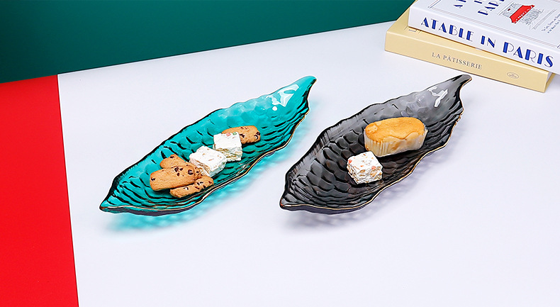 甜品盘子高颜值ins加厚餐饮烘焙店摆件创意餐具玻璃长条糕点盘