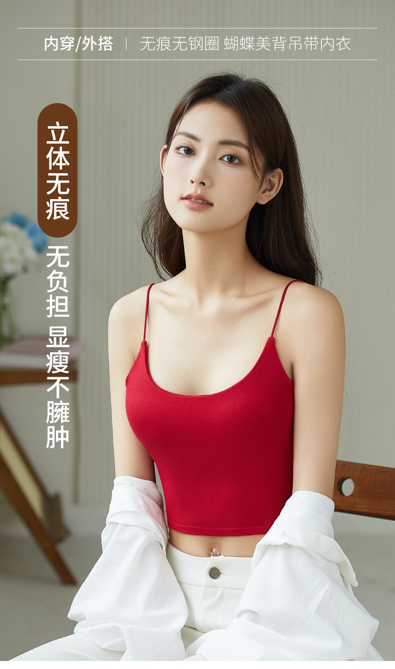 중공 백리스 작은 카미 솔 조끼 여성용 여름 내복 아름다운 뒤 브래지어 원피스 베이스 (가슴 패드 아우터 웨어 탑 포함)