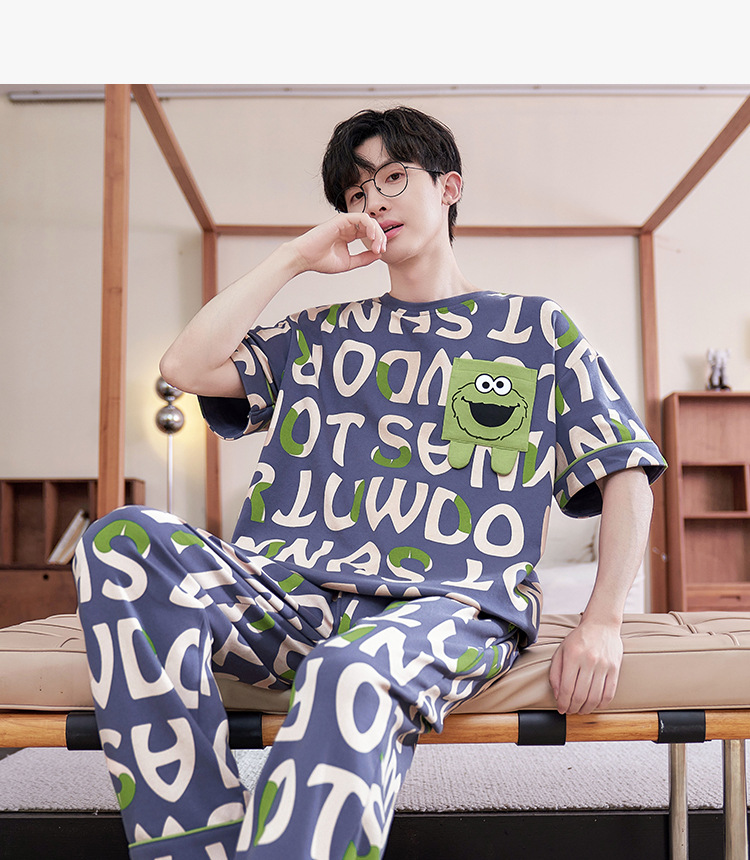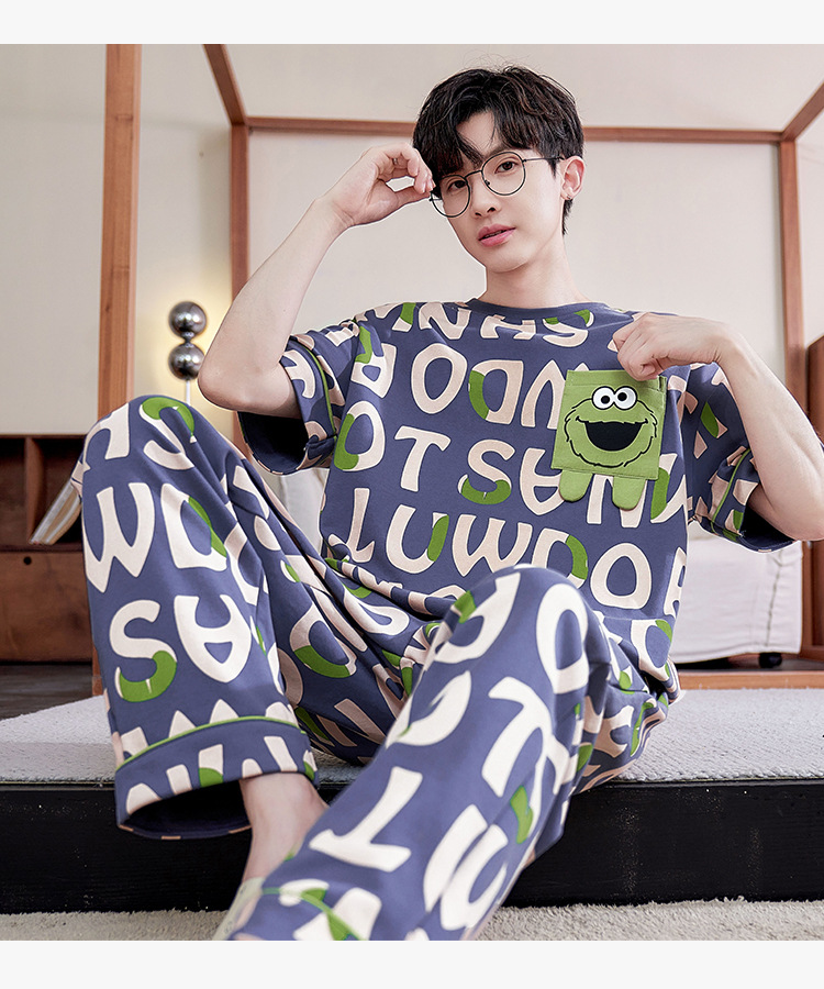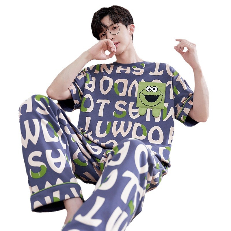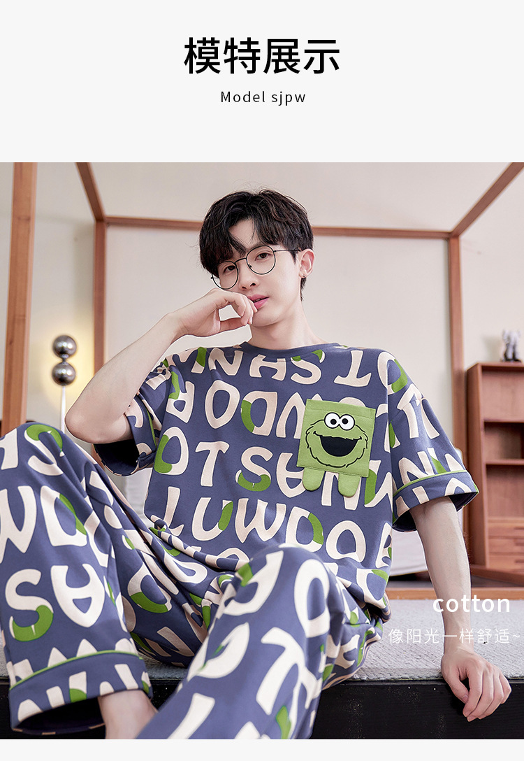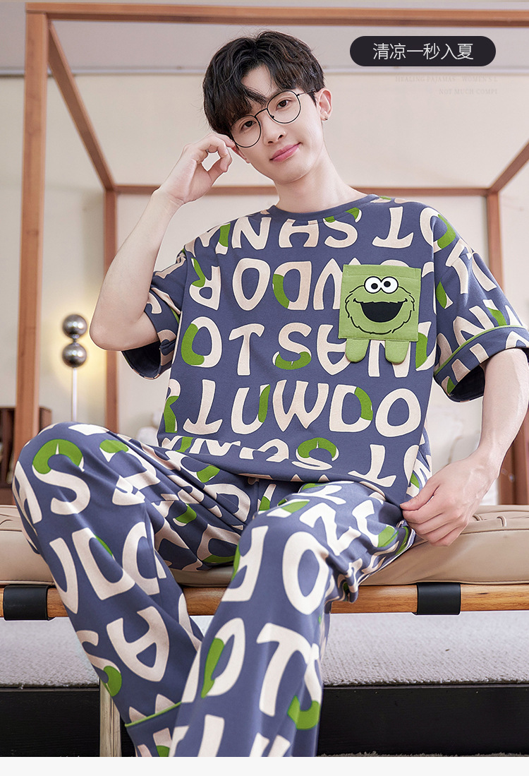 남자 잠옷 여름면 반팔 바지 만화 십대 봄과 가을 외부 착용 학생 홈 의류 세트