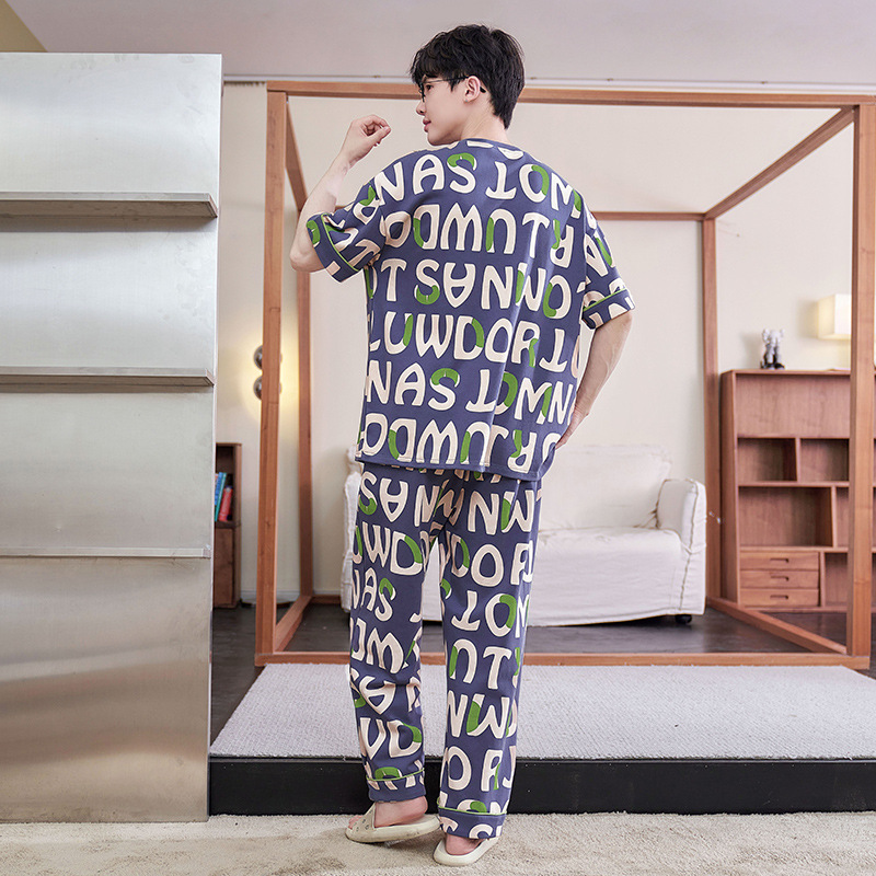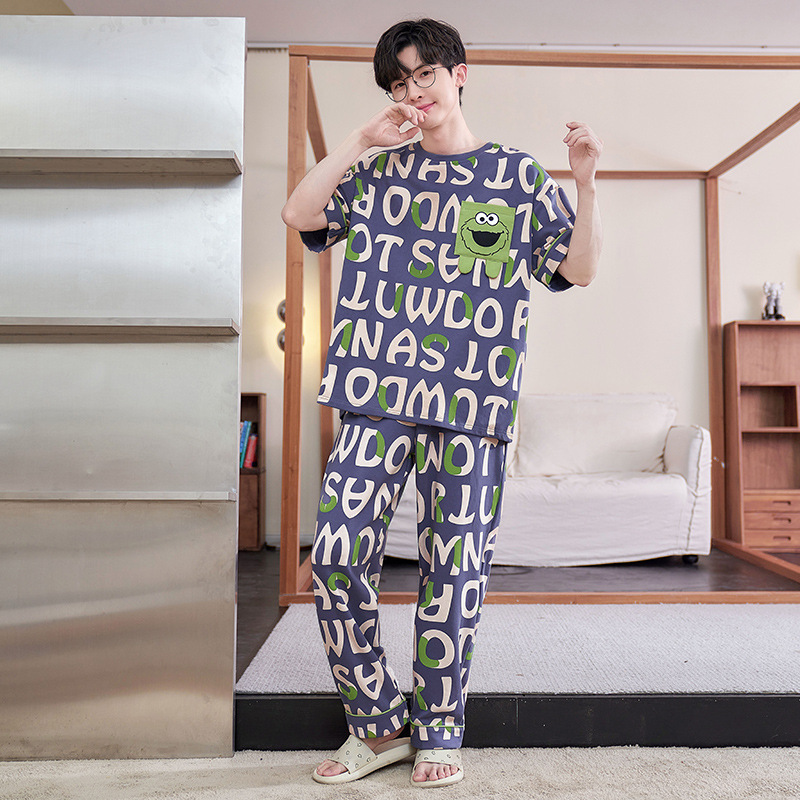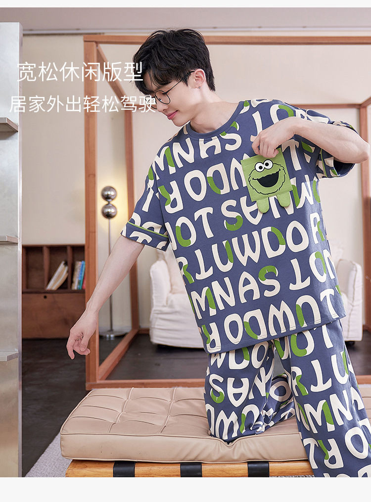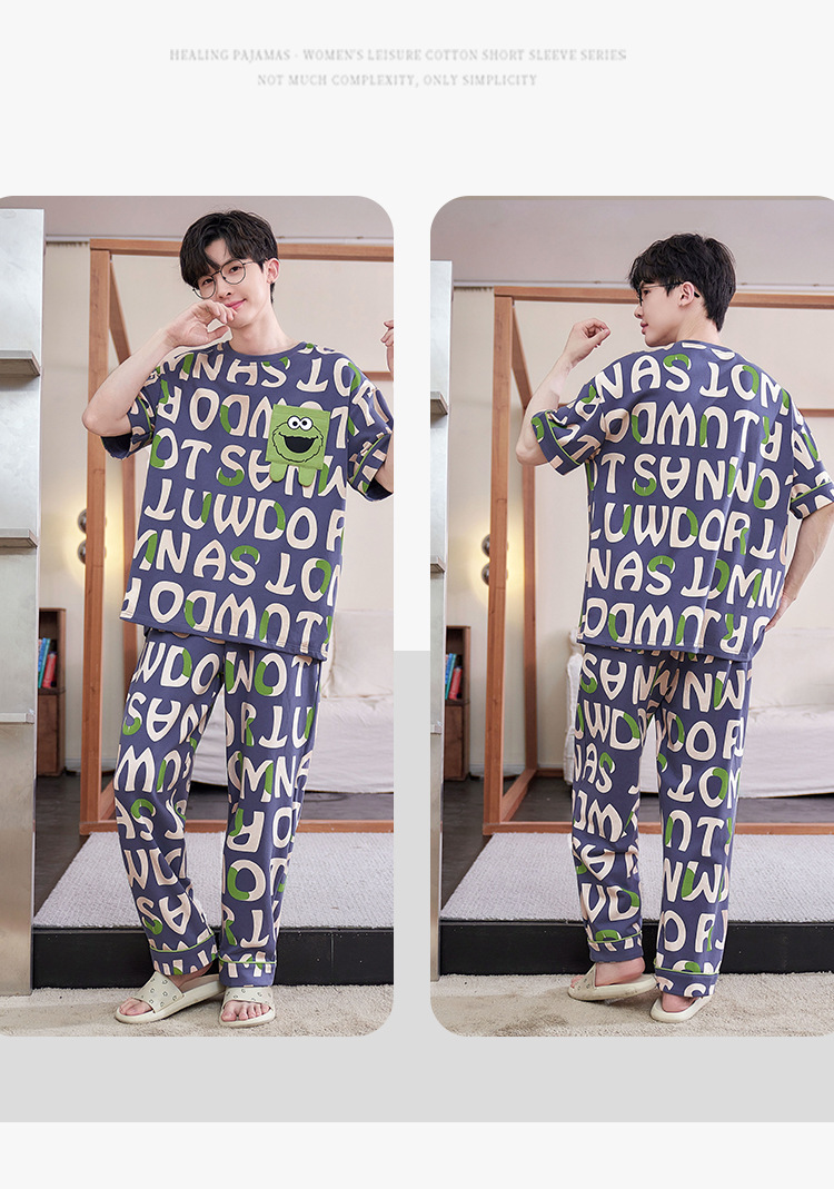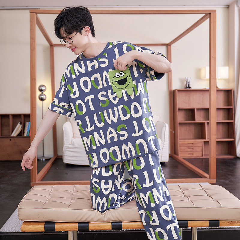 남자 잠옷 여름면 반팔 바지 만화 십대 봄과 가을 외부 착용 학생 홈 의류 세트