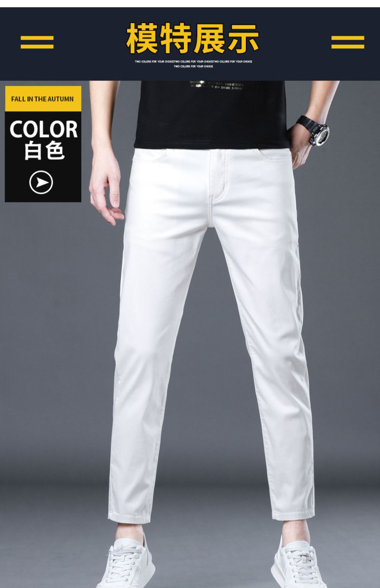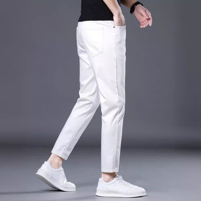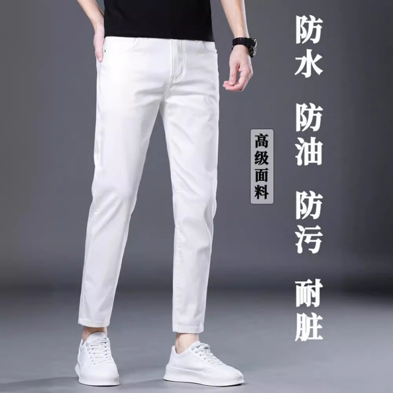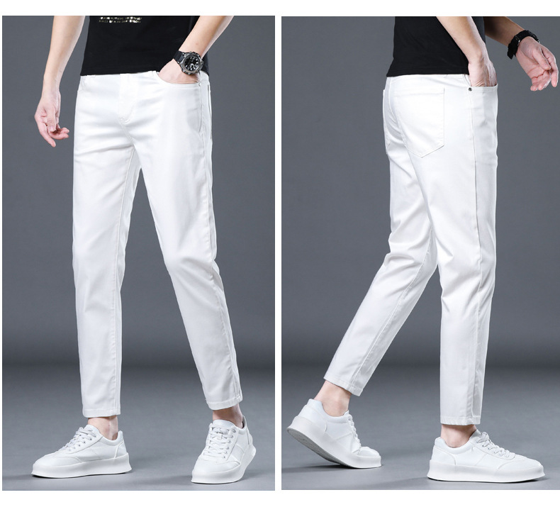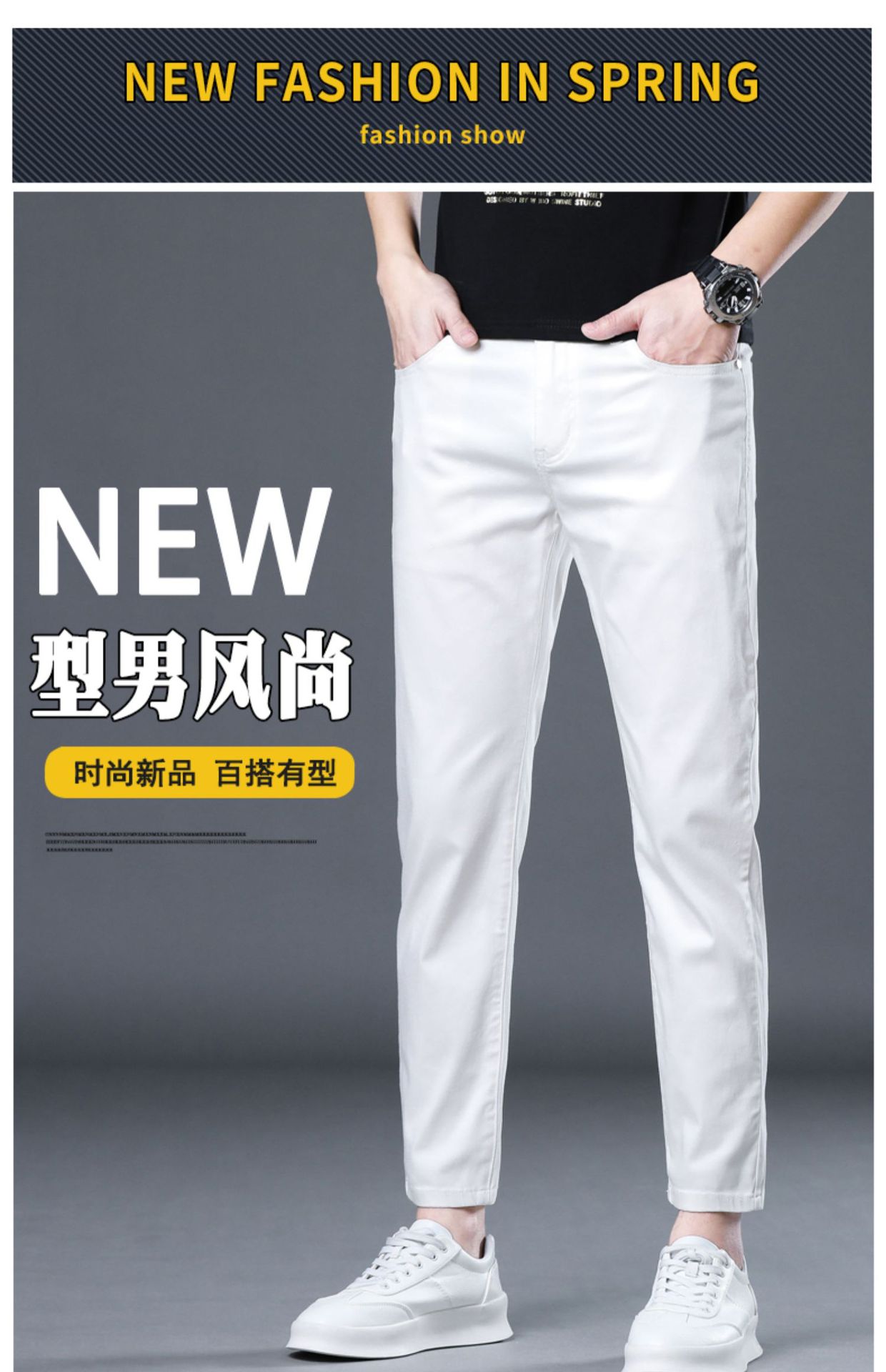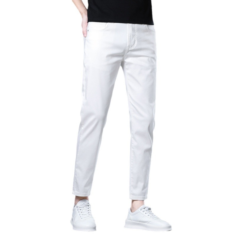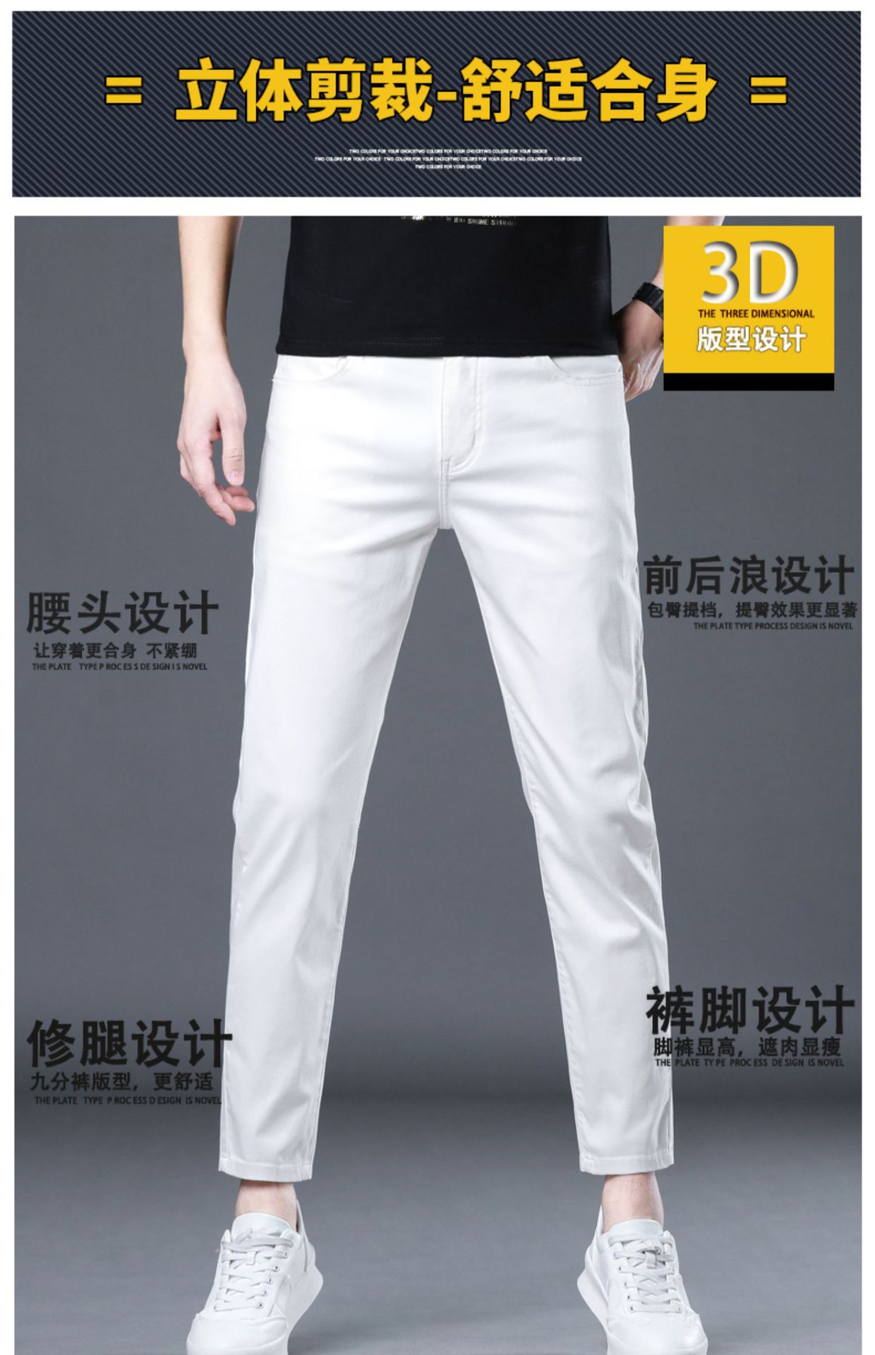 하이 엔드 3 방지 먼지 방지 화이트 크롭 청바지 남성 여름 스트레치 슬림 핏 스키니 풋 트렌디 크롭 남성용 바지