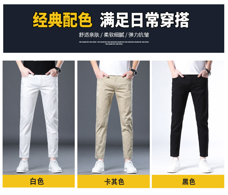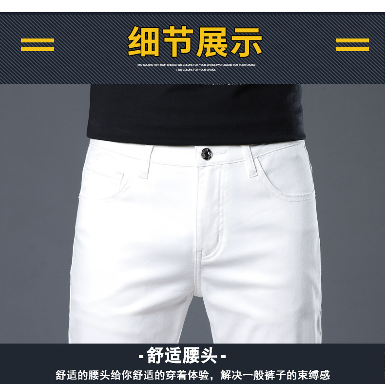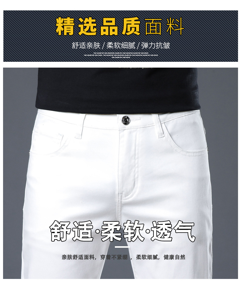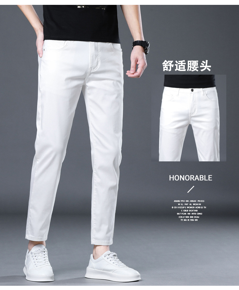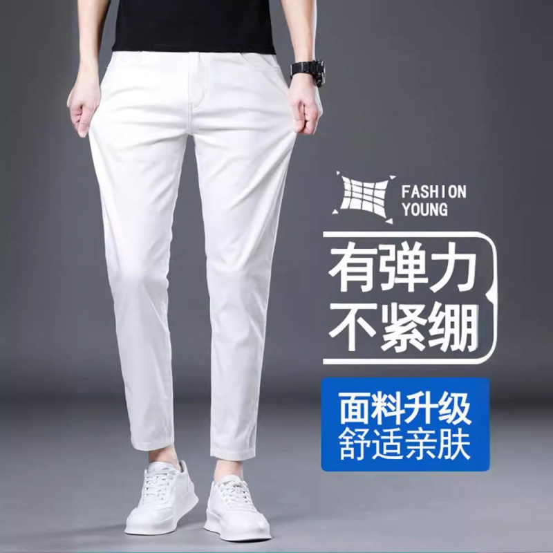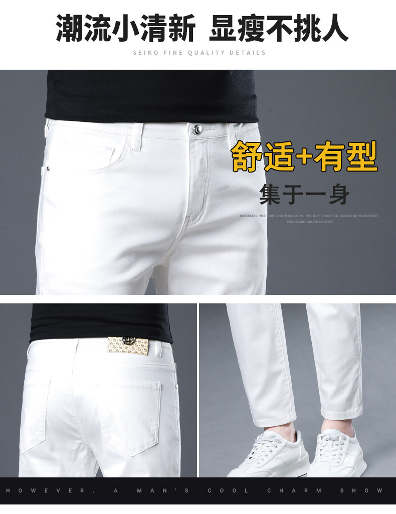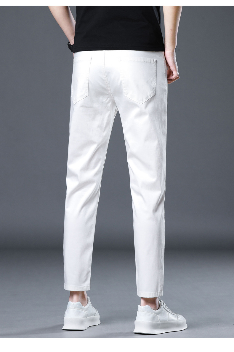 하이 엔드 3 방지 먼지 방지 화이트 크롭 청바지 남성 여름 스트레치 슬림 핏 스키니 풋 트렌디 크롭 남성용 바지