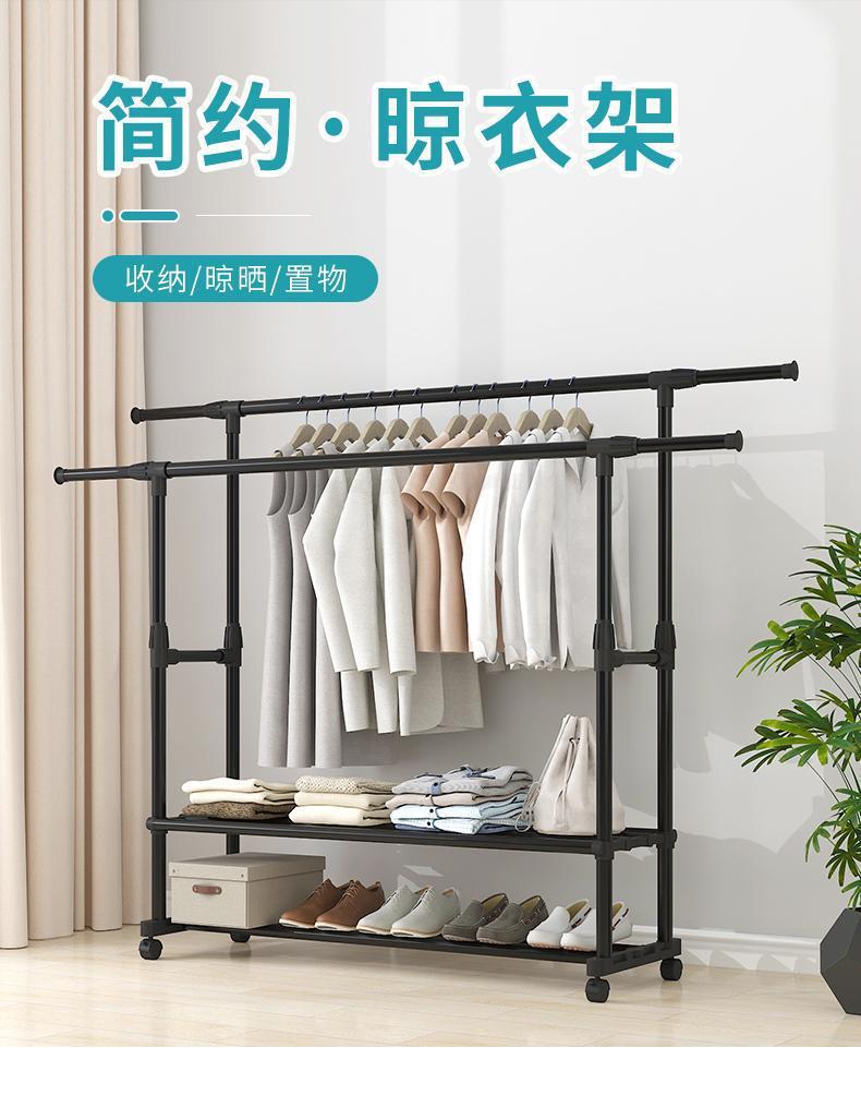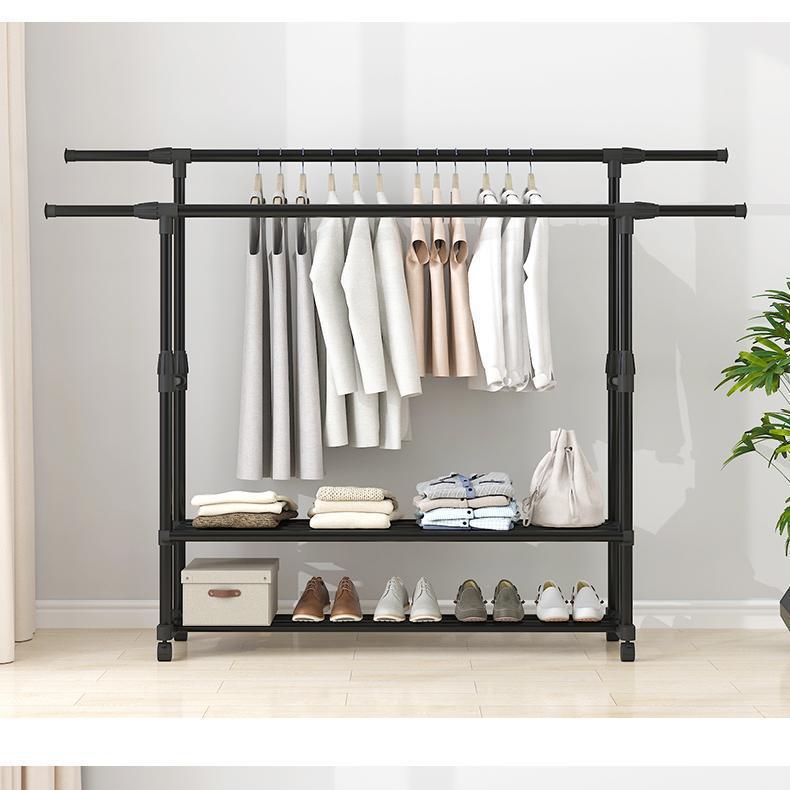 탄소강 텔레스코픽 1.5m 빨래 건조대 [더블 폴 2층 모델]