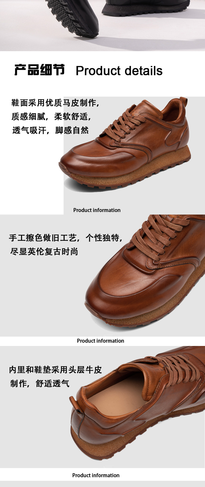 영국 빈티지 컬러 광택 올드 탑 말 가죽 남성 신발 정품 가죽 비즈니스 캐주얼 남성 신발 2024 새로운 세탁 가죽 신발
