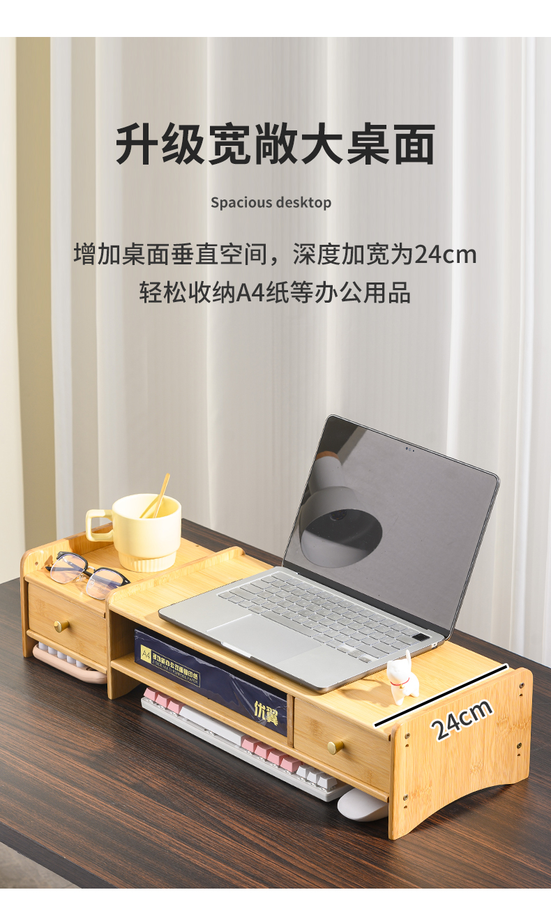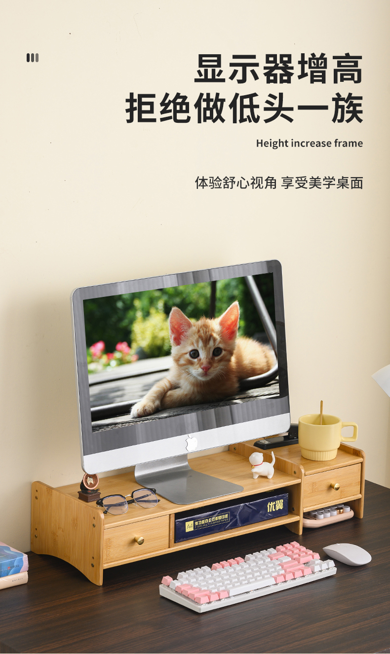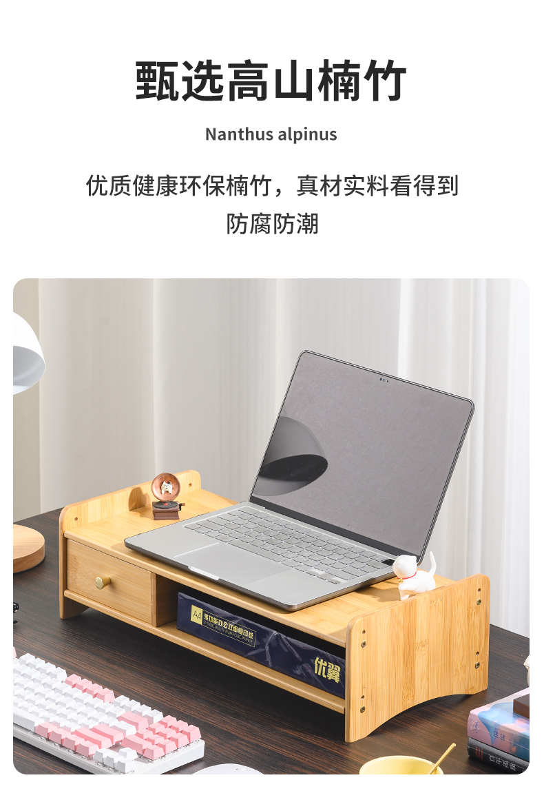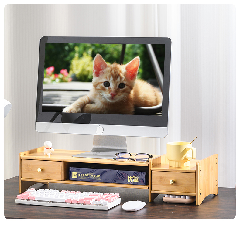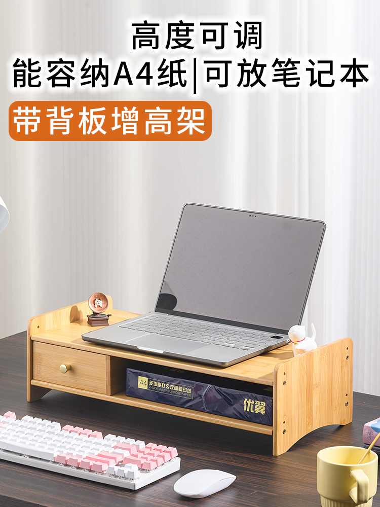 5V 컴퓨터 모니터 높이 조절 책상 대나무 책상 수납 선반 데스크탑 높이 조절 베이스 노트북 높이 조절