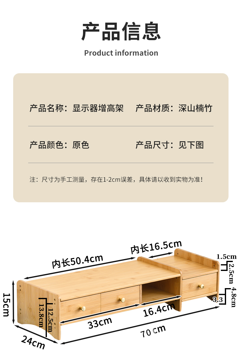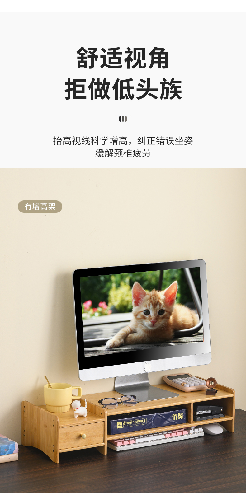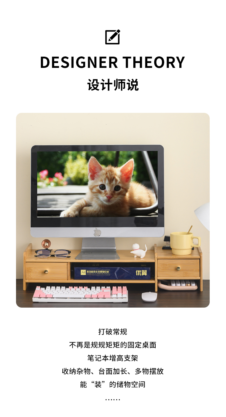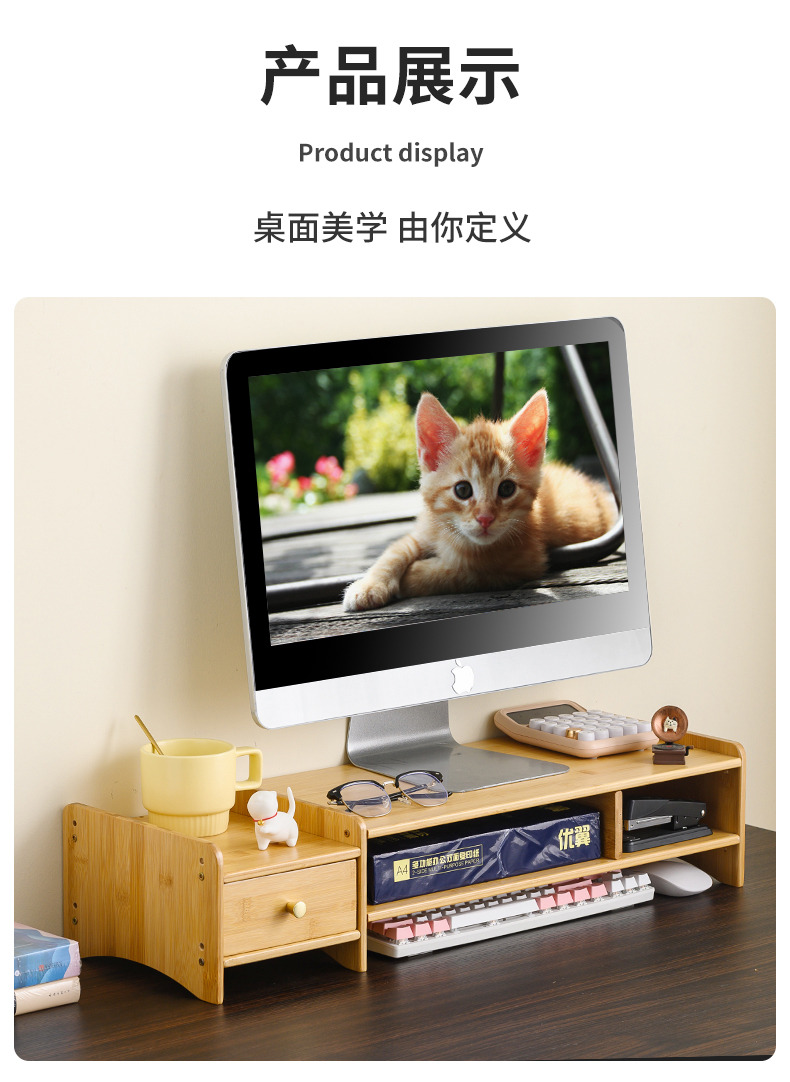 5V 컴퓨터 모니터 높이 조절 책상 대나무 책상 수납 선반 데스크탑 높이 조절 베이스 노트북 높이 조절