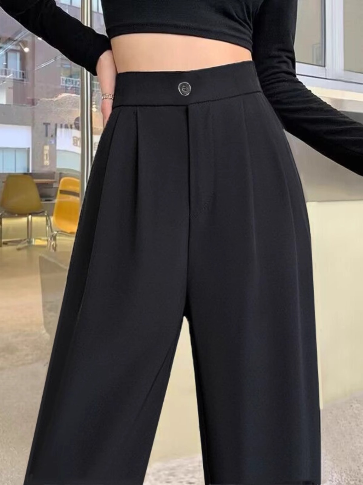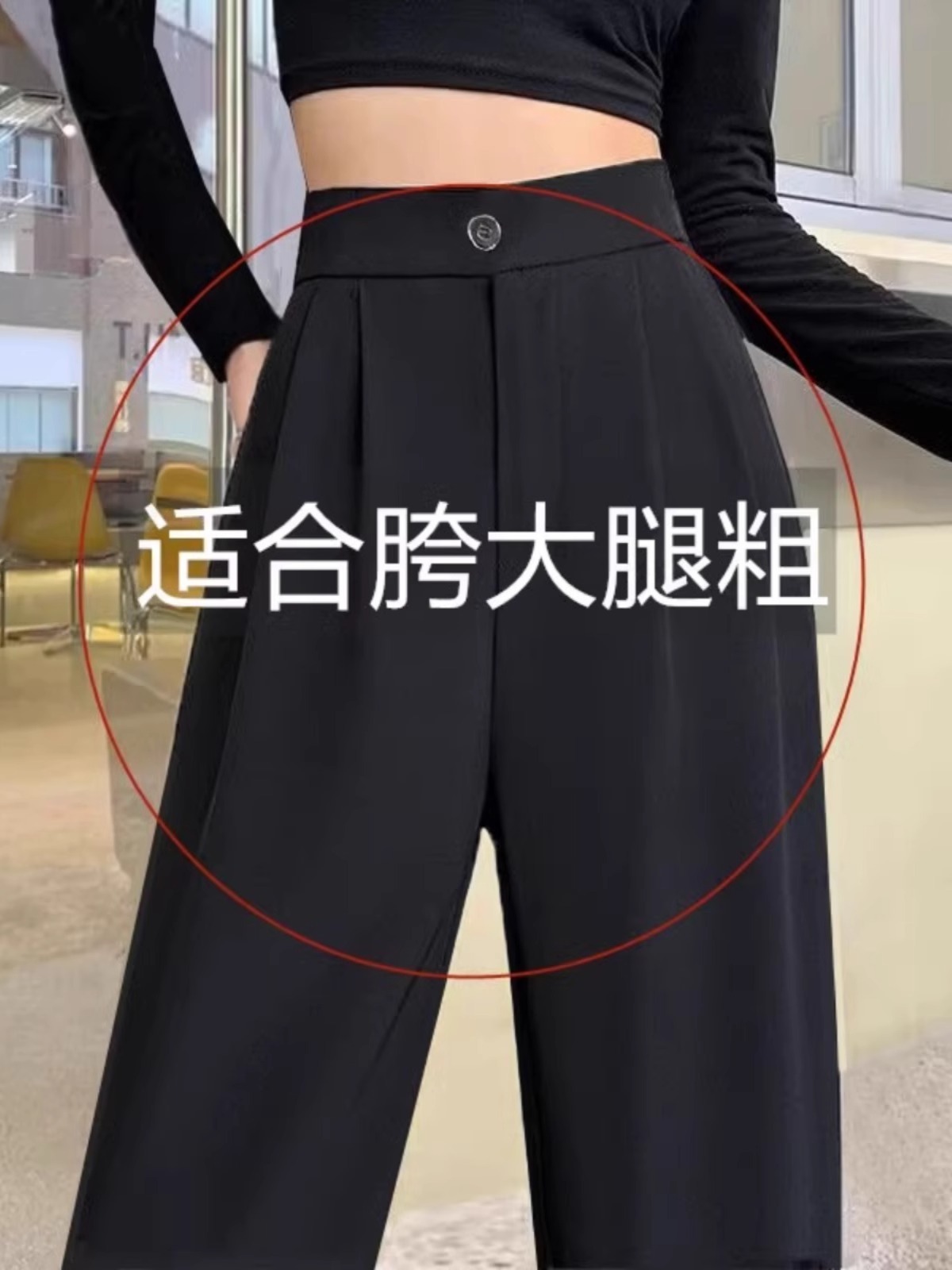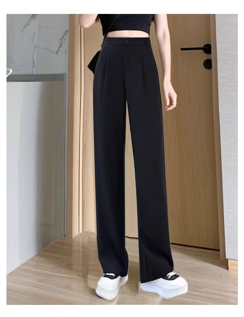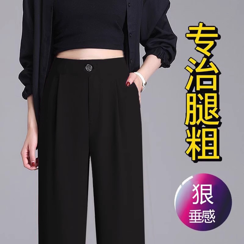 블랙 세트 와이드 레그 바지 여성 여름 2024 새로운 하이 웨이스트 통통녀 스트레이트 바지 패션 캐주얼 바지