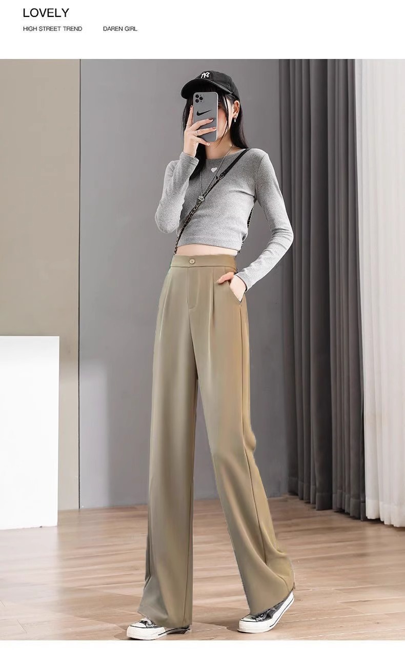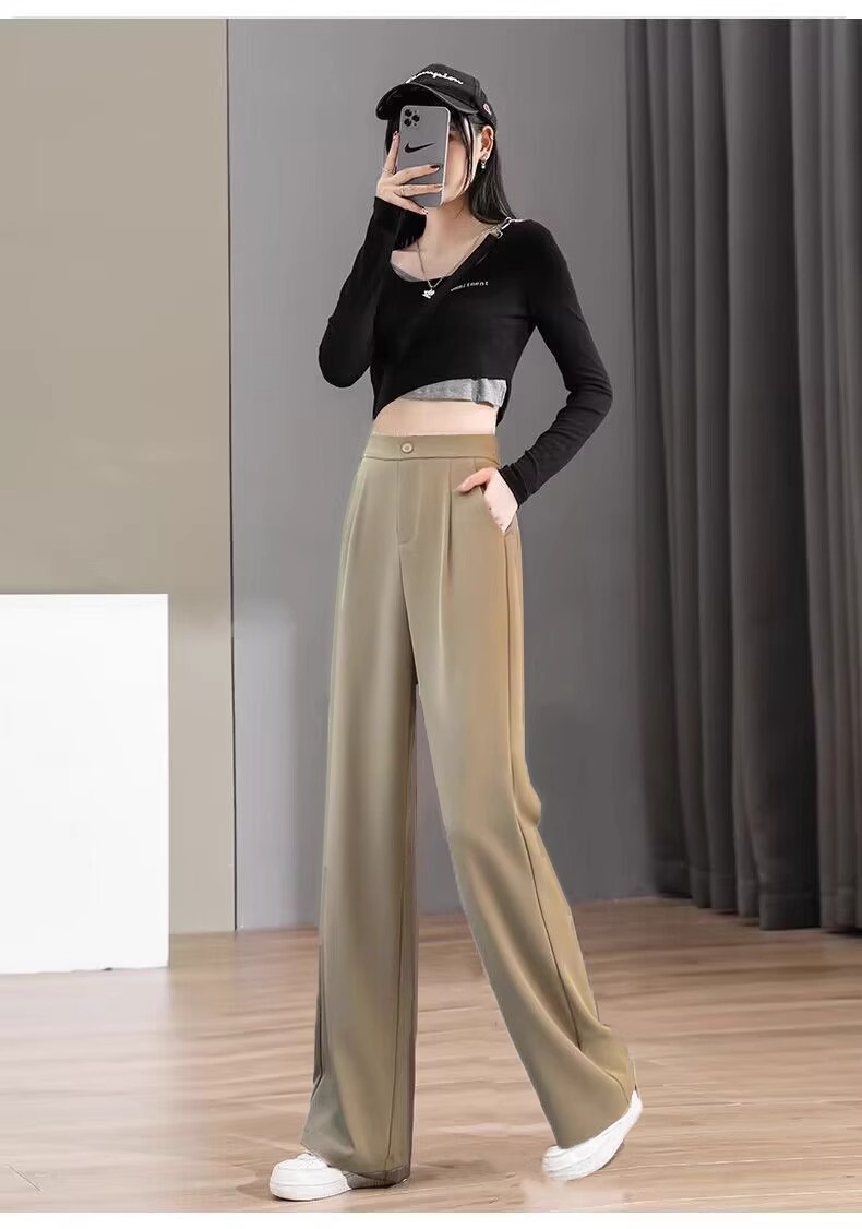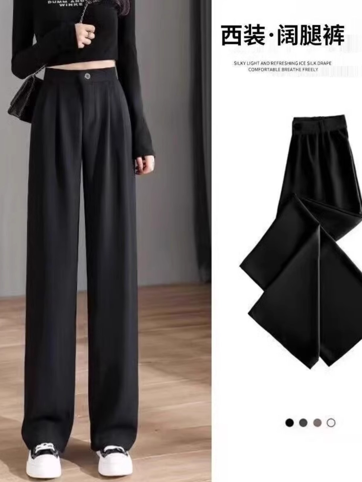 블랙 세트 와이드 레그 바지 여성 여름 2024 새로운 하이 웨이스트 통통녀 스트레이트 바지 패션 캐주얼 바지