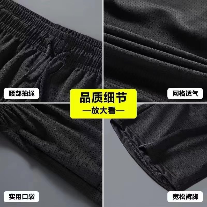 아이스 실크 메쉬 반바지 여름 남자 계절 빠른 건조 스포츠 바지 얇은 캐주얼 외부 착용 느슨한 5 점 플러스 사이즈 아이스 실크 바지