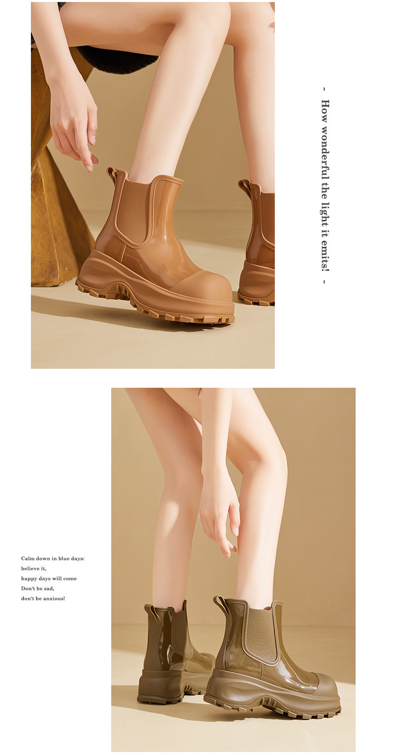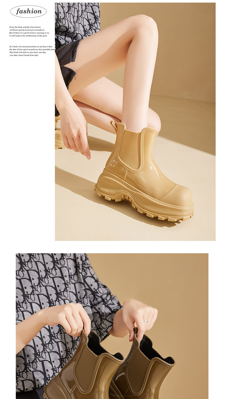 여성용 장화 패션 의상 인터넷-유명한 두꺼운 밑창 마틴 부츠 미끄럼 방지 올 매치 중저 장화 강화 야외 고무 신발