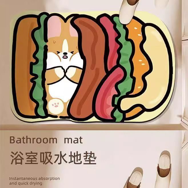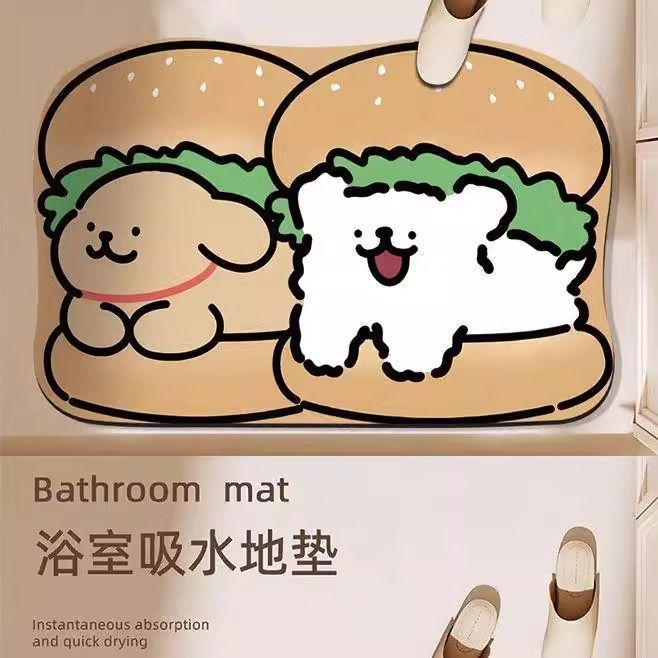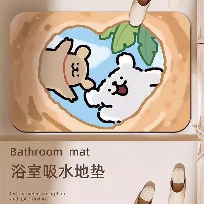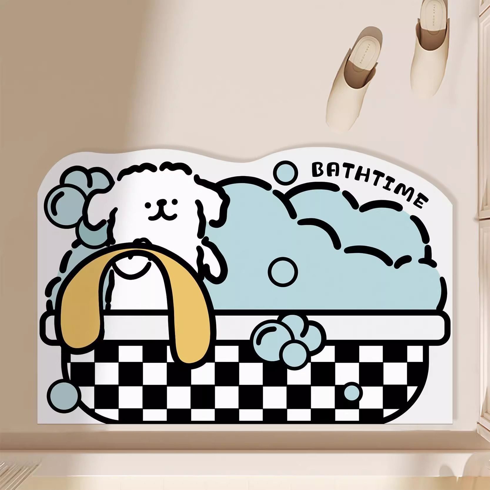 만화 강아지 diatom 진흙 바닥 매트 특수 모양의 화장실 문 미끄럼 방지 매트 화장실 바닥 매트 머리카락