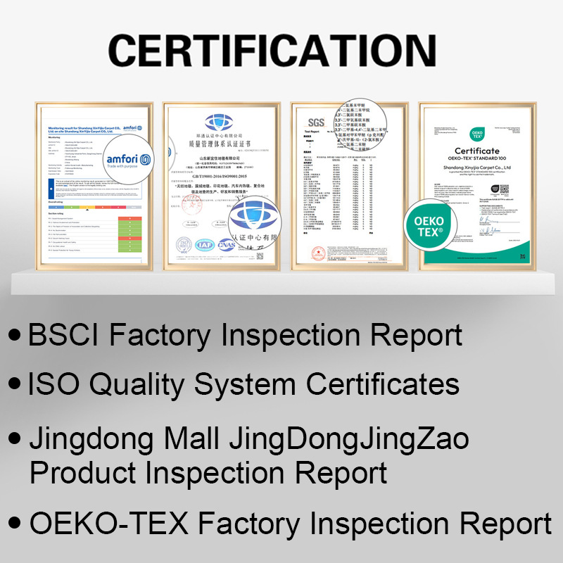 山东新宜佳地毯有限公司,成立于2007年。旗下有 双八 牌、 美歌 牌两大品牌。产品有机织簇绒地毯、针刺无纺地毯、激光刻花、数码印花、压花等。支持定制OEM/ODM,高新技术企业,规上企业,BSCI认证,OEKOTEX认证,ISO认证,跨境直销,厂家直供。