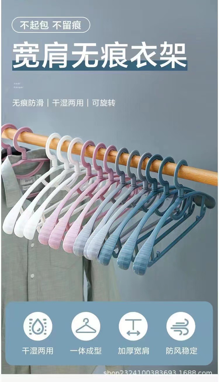 가정용 간단한 넓은 어깨 이음매 없는 미끄럼 방지 옷걸이 플라스틱 후크 회전식 옷걸이 대형 옷걸이 옷 지지대