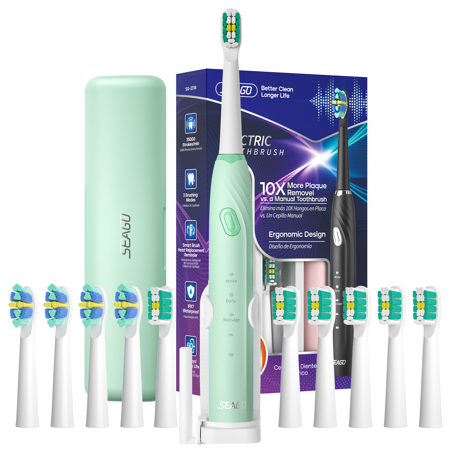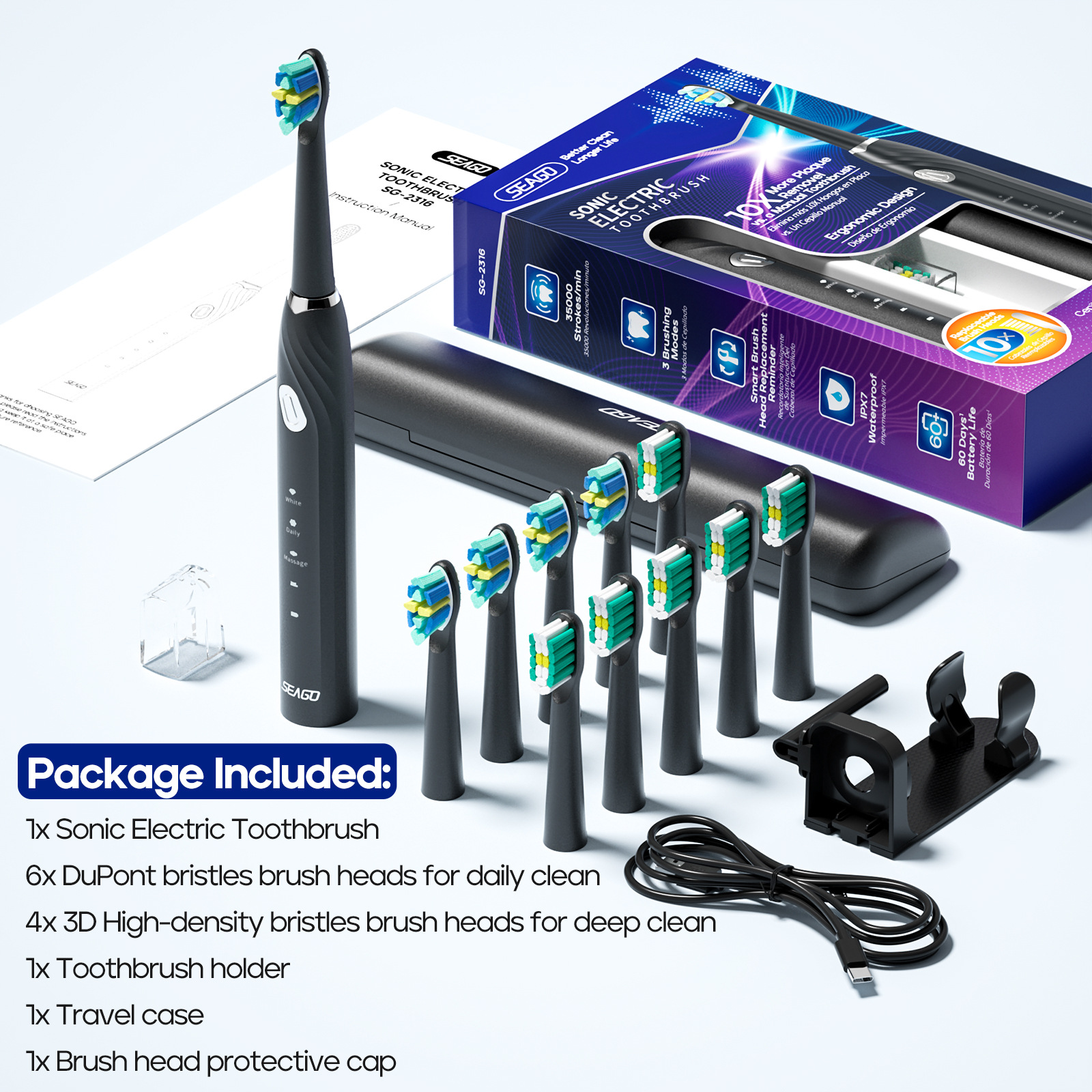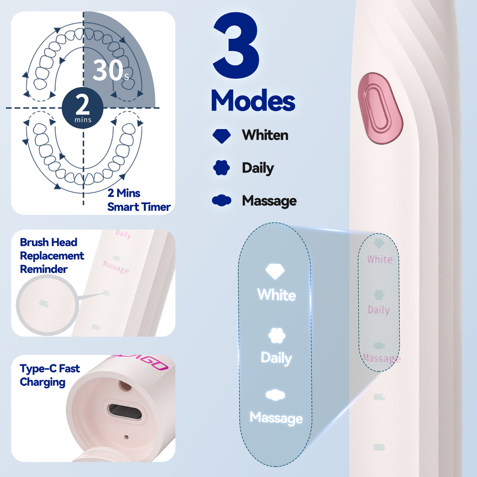 2316 잉글리쉬-핑크 [메인손잡이+칫솔모10개+여행용박스+칫솔홀더+충전케이블]