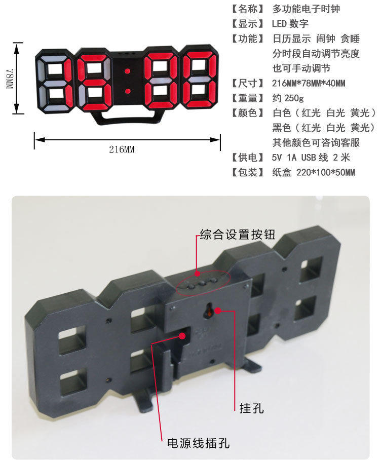 [클리어런스] 대외 무역 국경 간 LED 전자 시계 타이머 다기능 플러그인 전자 벽시계 스탠드 가능