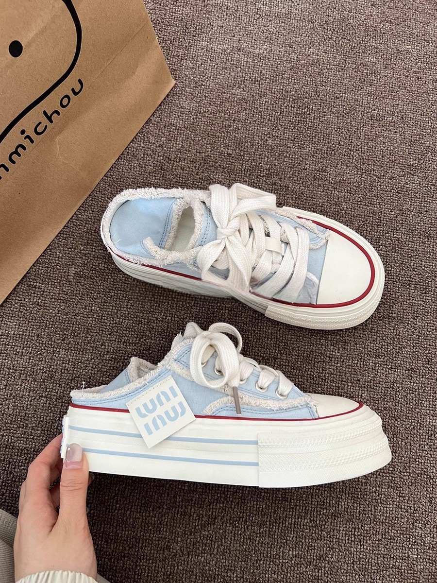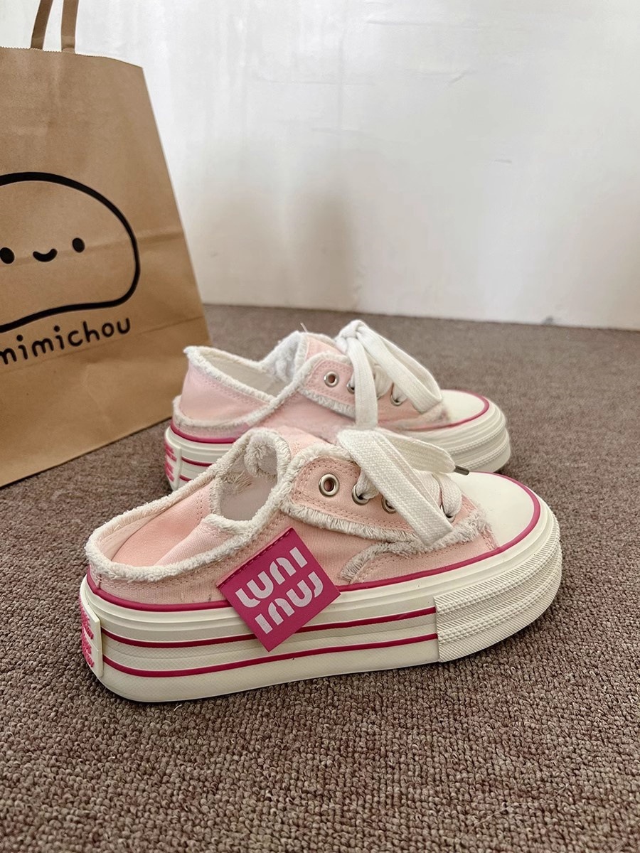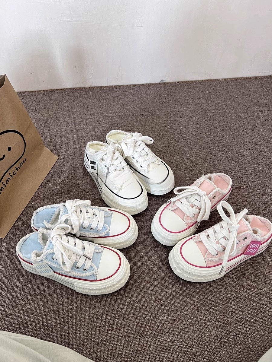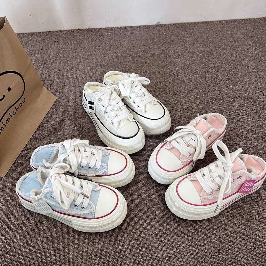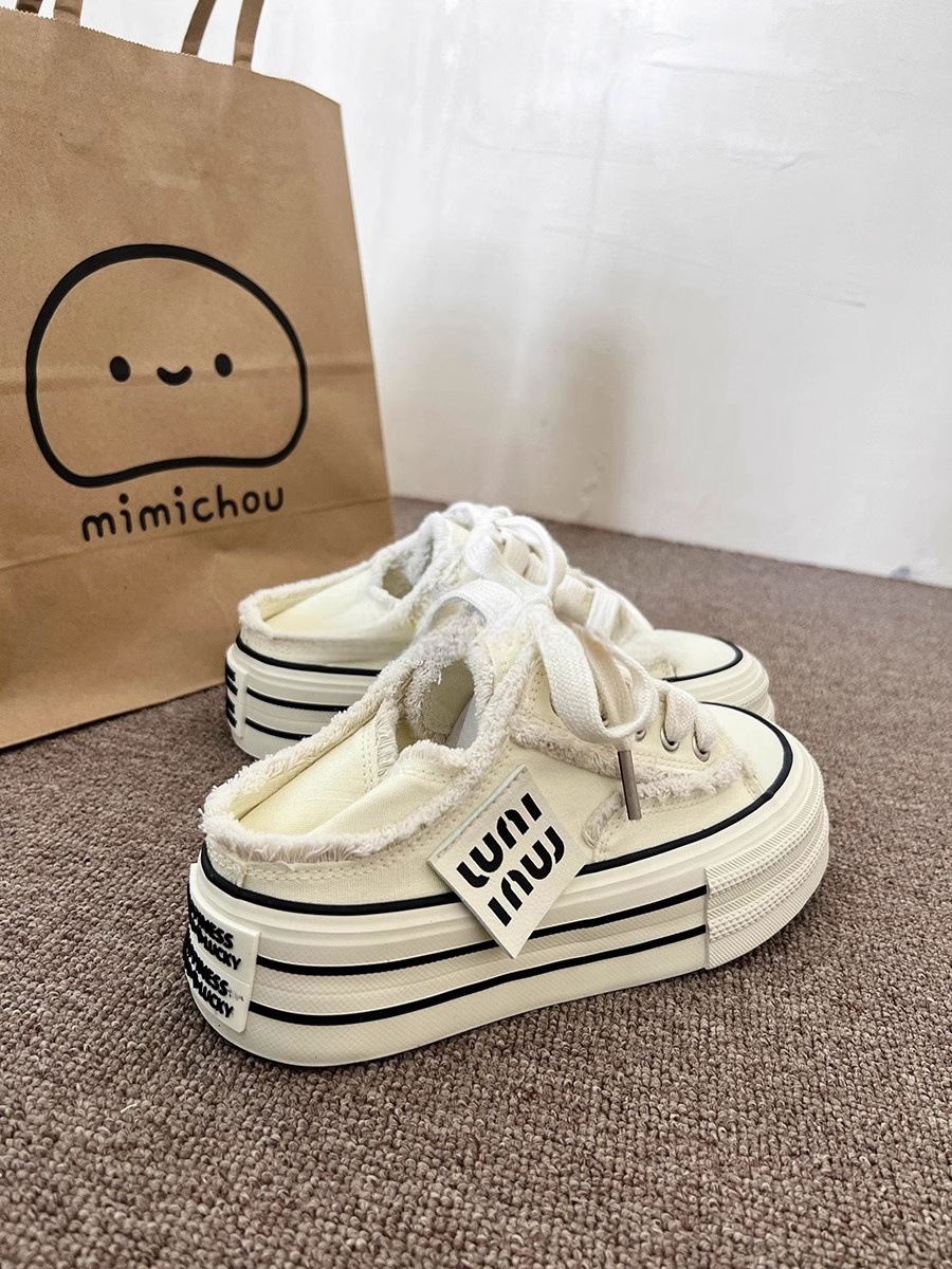 힐을 밟을 수 있는 여성화, 두꺼운 밑창, 다용도 슬립온, 2025 새로운 디자인, 캐주얼 캔버스 슈즈 증가