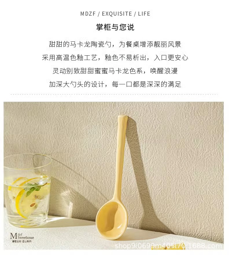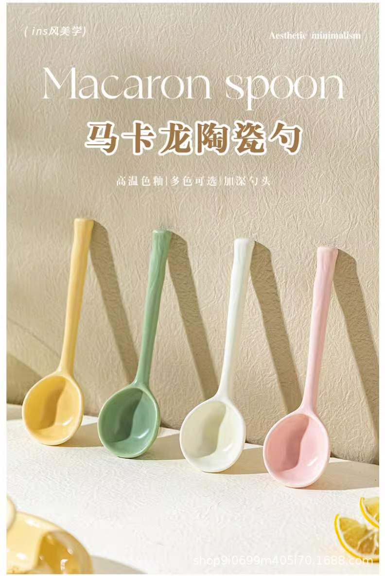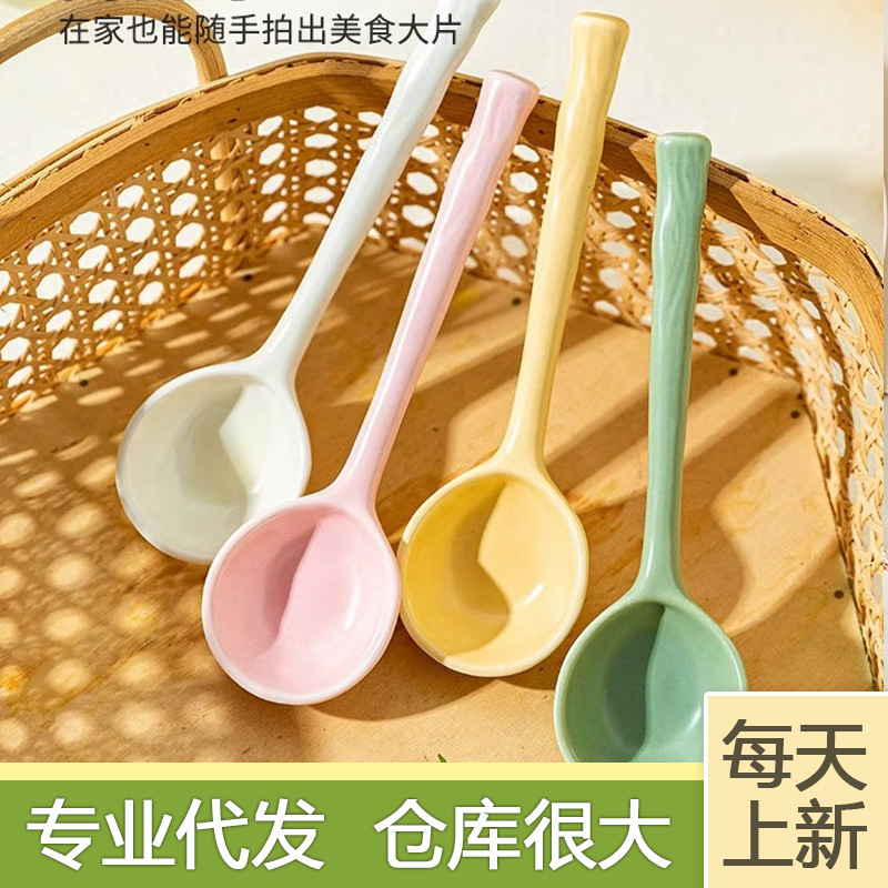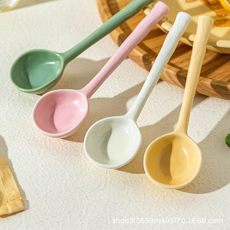 세라믹 스푼 높은 뷰티 가치 작은 숟가락 스타일 일본식 가정용 디저트 스푼 마시는 수프 긴 손잡이 숟가락 인터넷 인기 쌀 숟가락