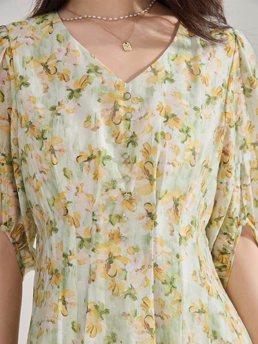 V领设计拉长颈部曲线,门襟蘑菇扣装饰