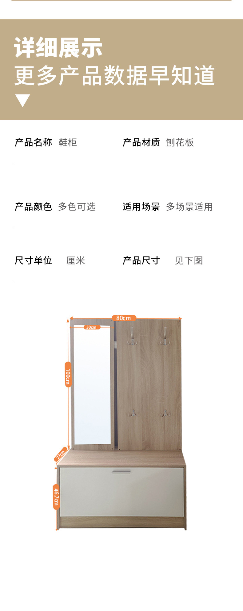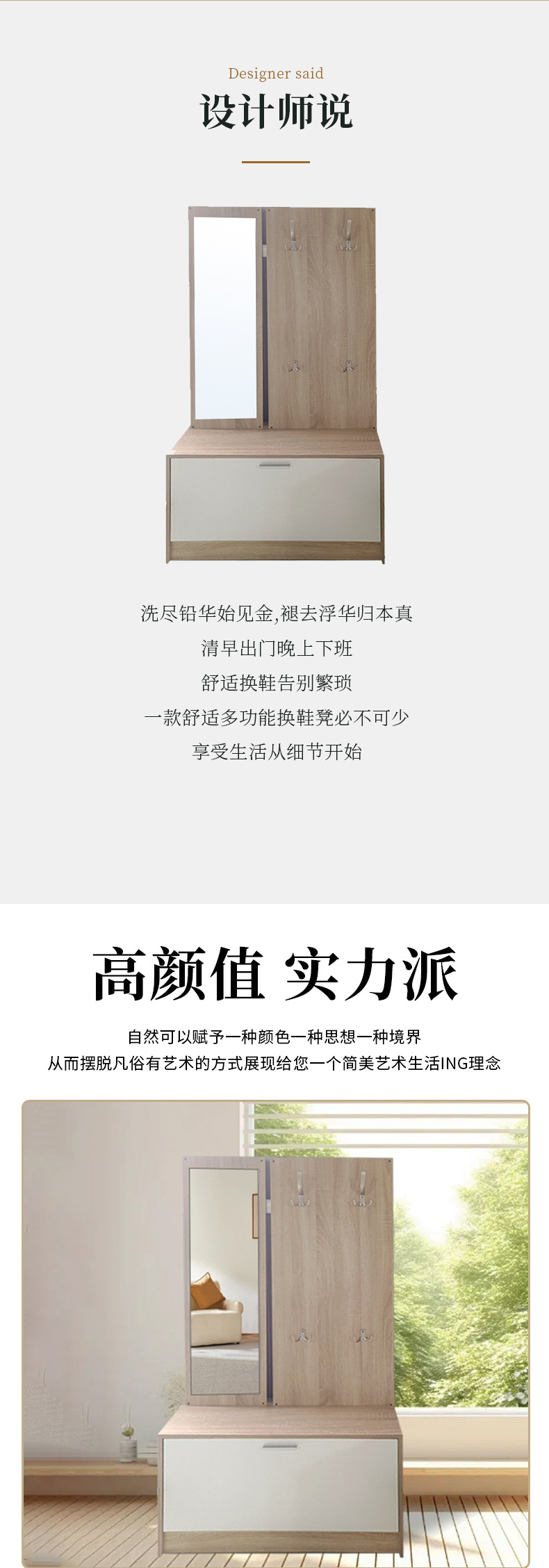 우드 그레인 컬러 신발 캐비닛 (거울과 통합)