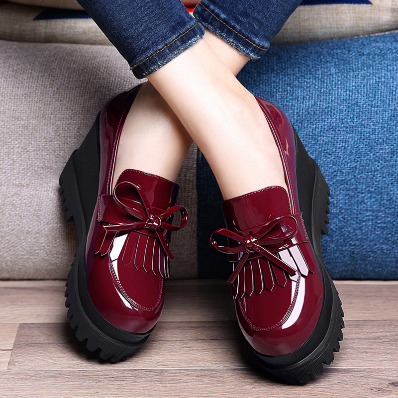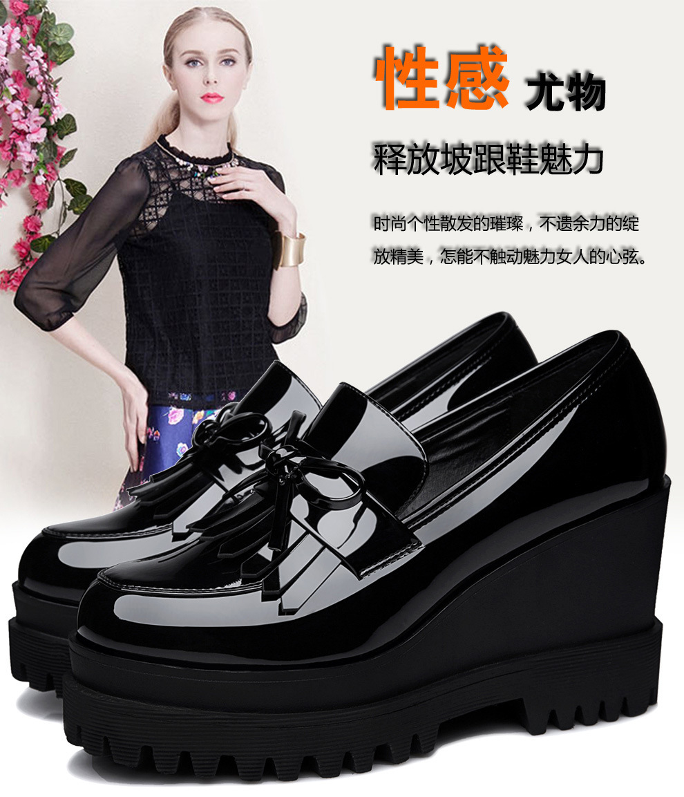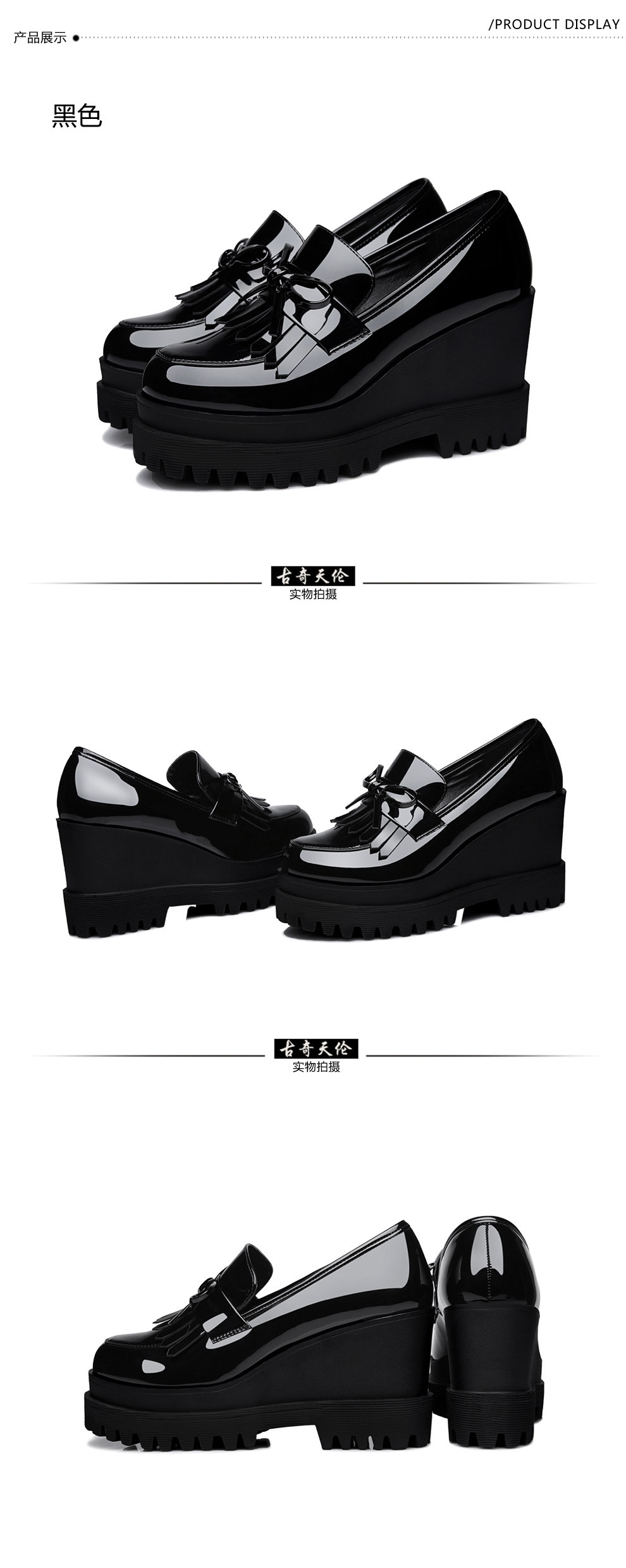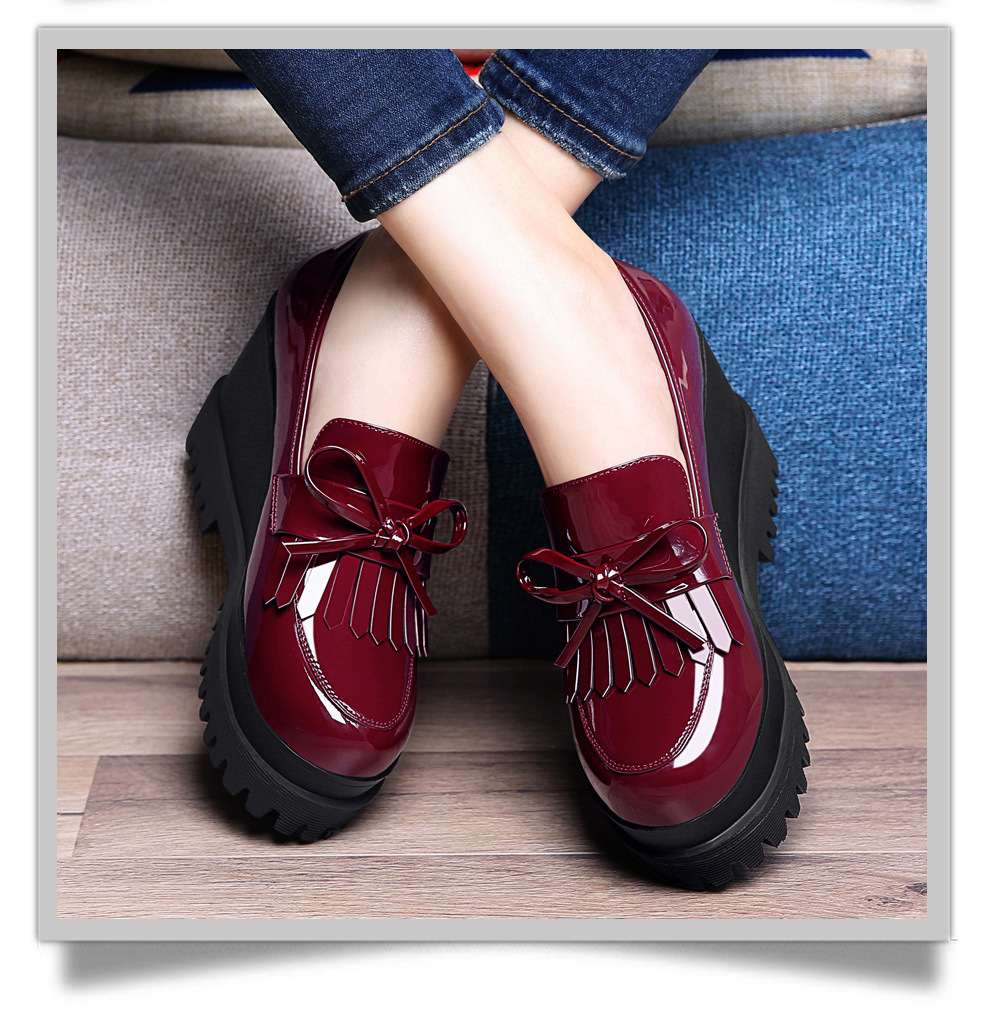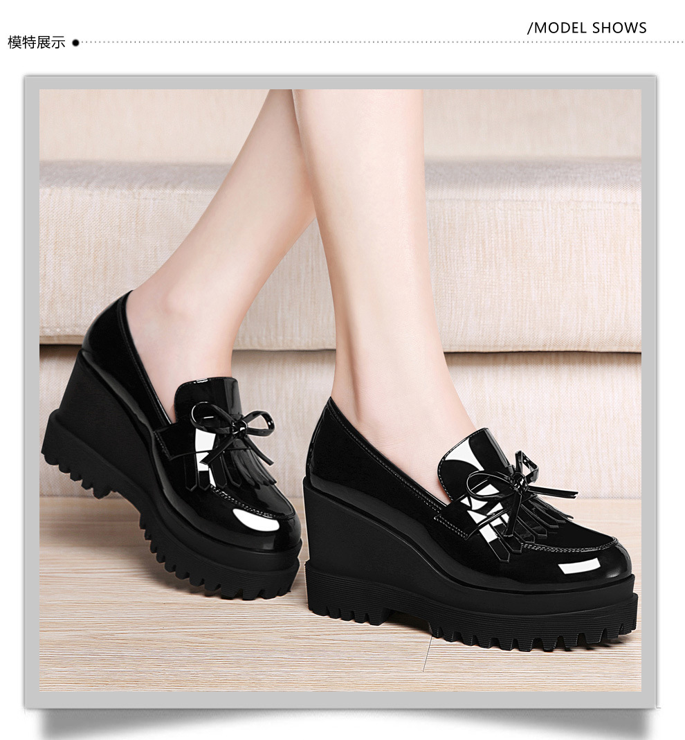 Gucci Tianlun 2024 봄과 가을 새로운 캐주얼 특허 가죽 신발 여성 로퍼 나비 매듭 웨지 하이힐