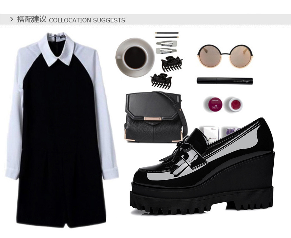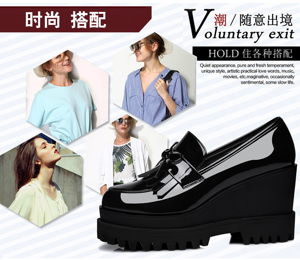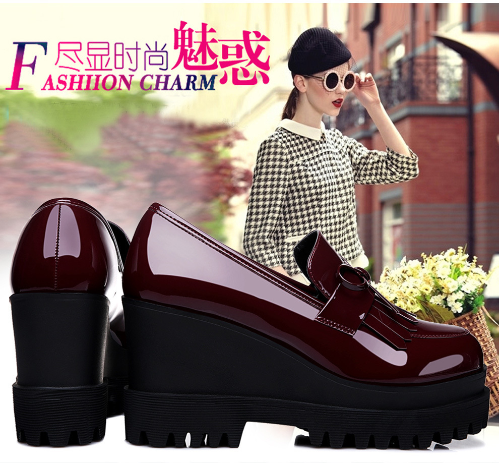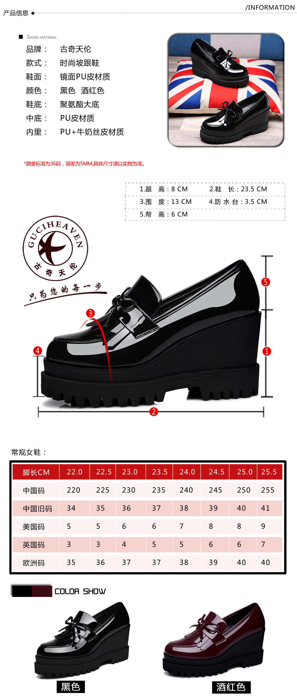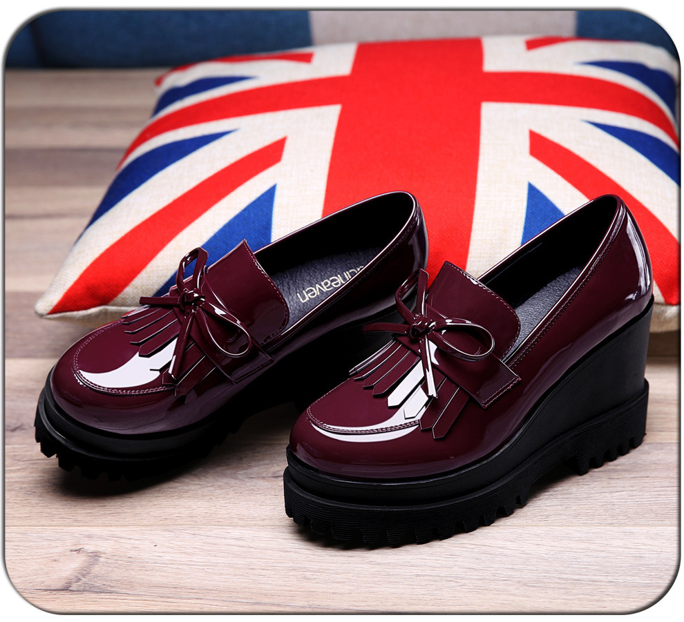 Gucci Tianlun 2024 봄과 가을 새로운 캐주얼 특허 가죽 신발 여성 로퍼 나비 매듭 웨지 하이힐