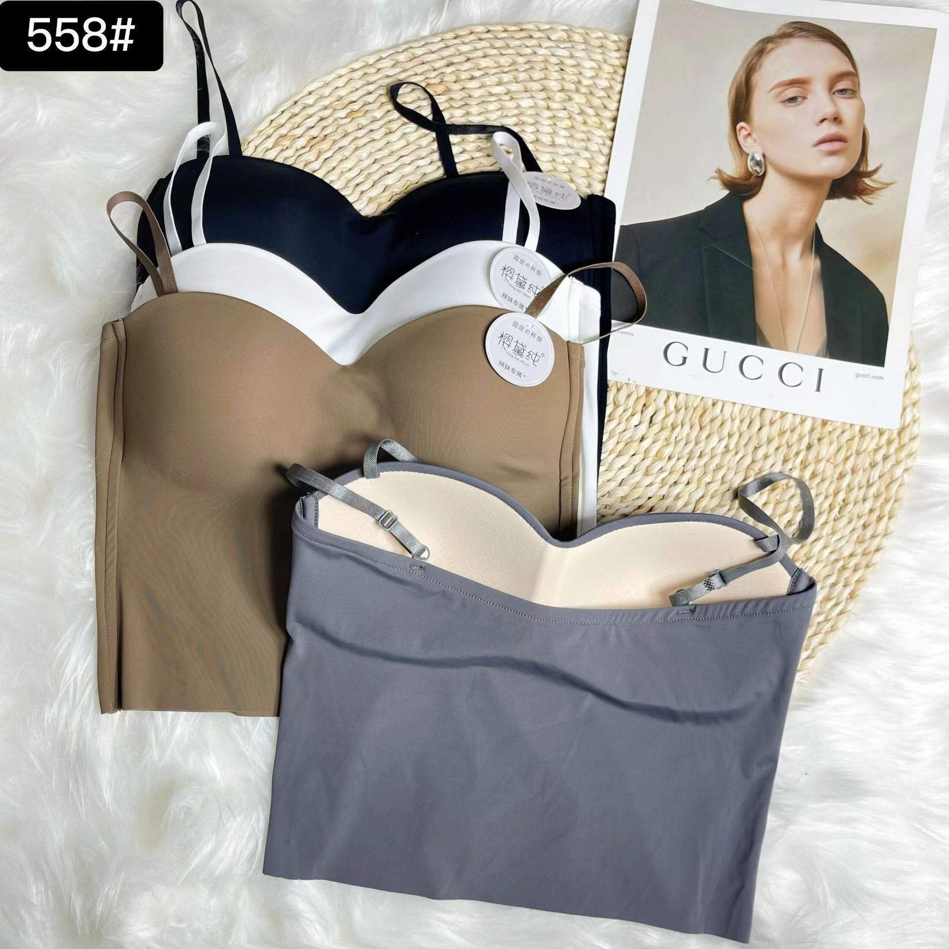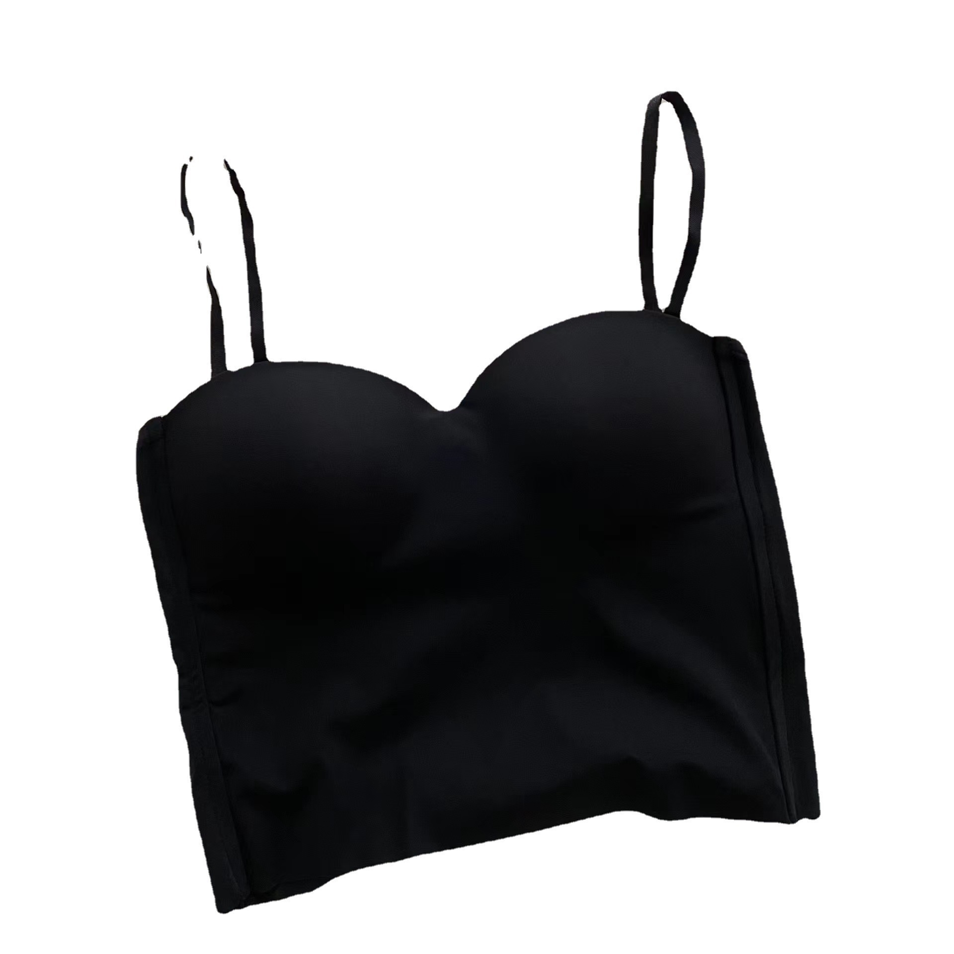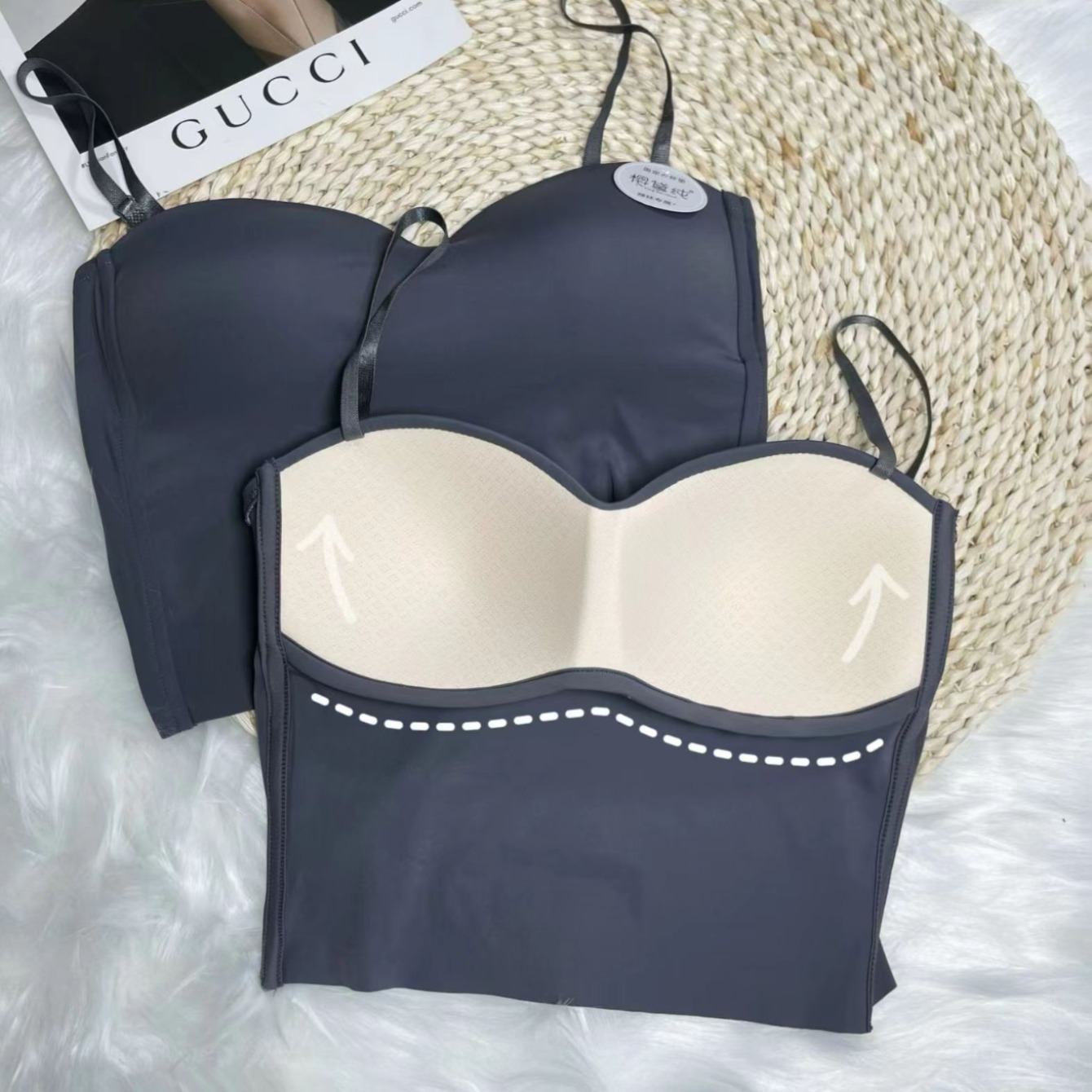 간단한 솔리드 컬러 아이스 실크 걸스 슬링 아름다운 백 피스 고정 컵 푸시 업 외부 착용 안티 러닝 라이트 편안한 튜브 탑