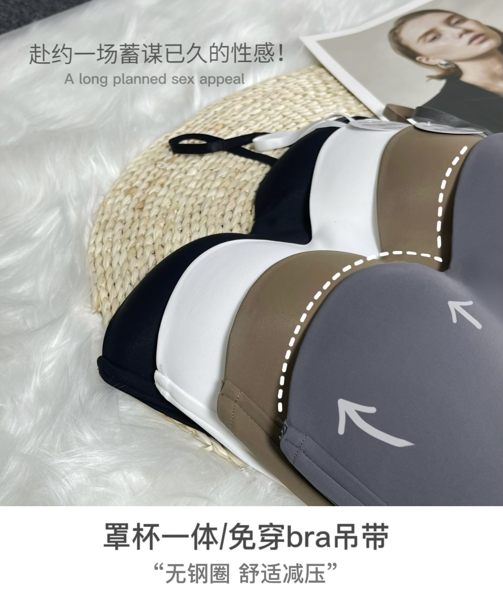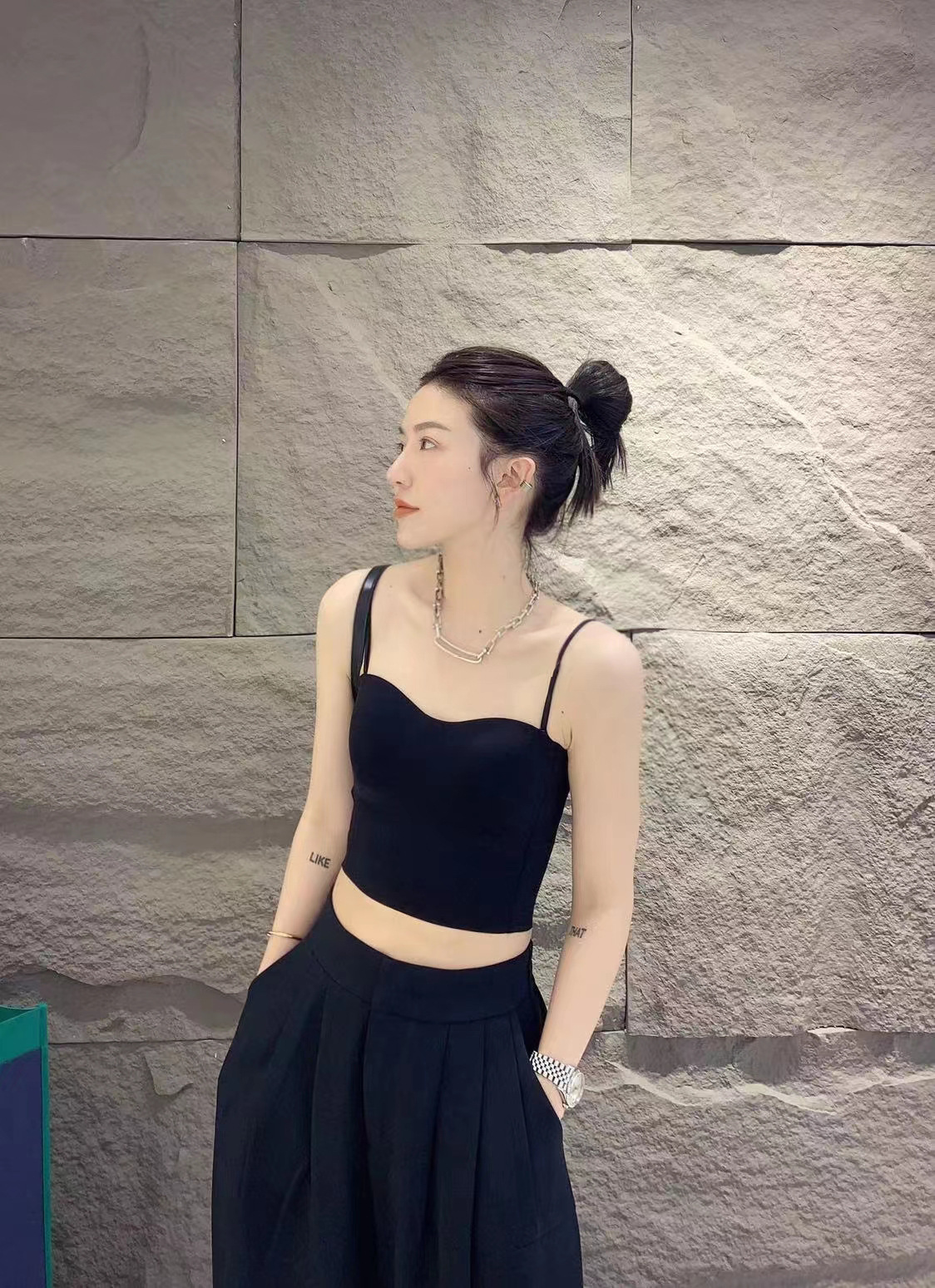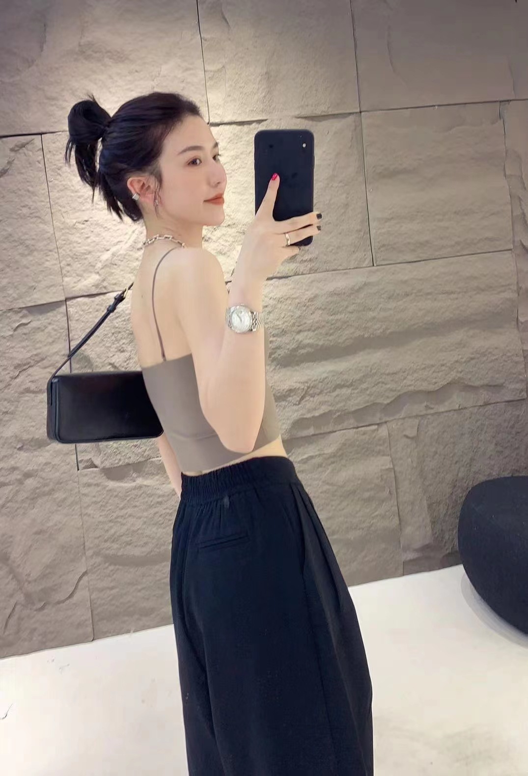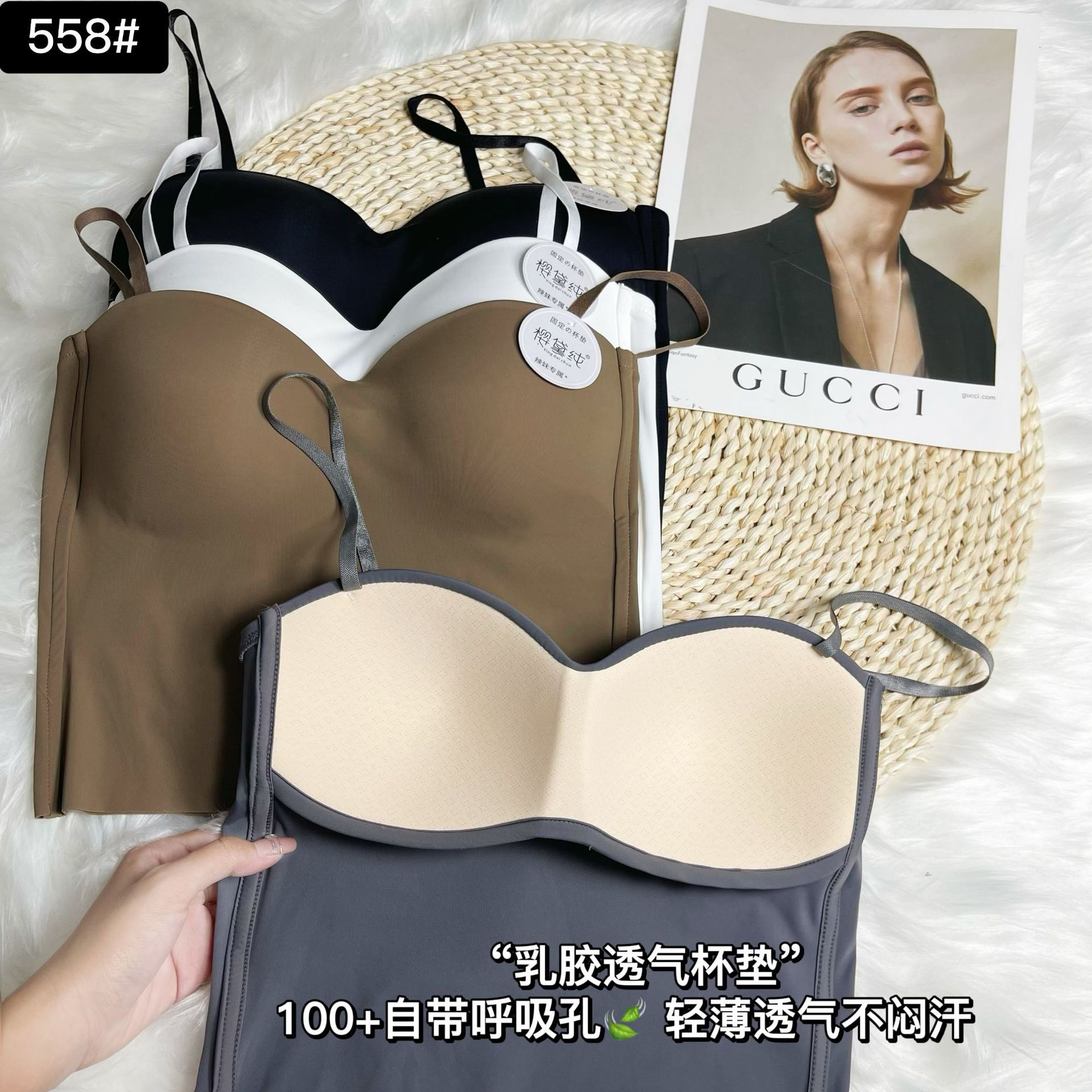 간단한 솔리드 컬러 아이스 실크 걸스 슬링 아름다운 백 피스 고정 컵 푸시 업 외부 착용 안티 러닝 라이트 편안한 튜브 탑