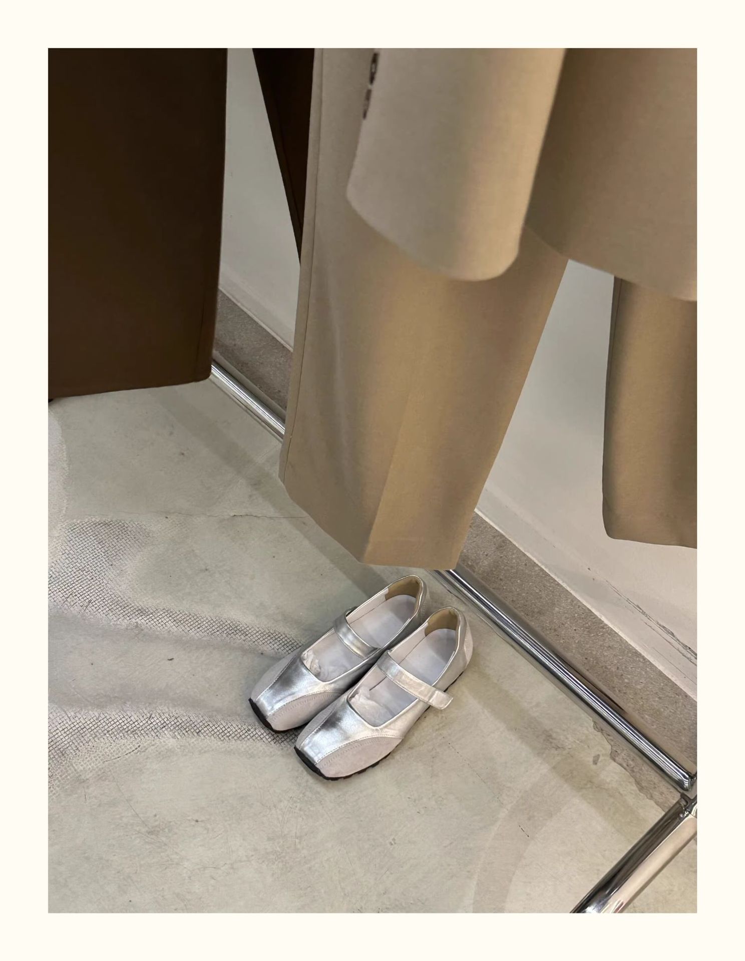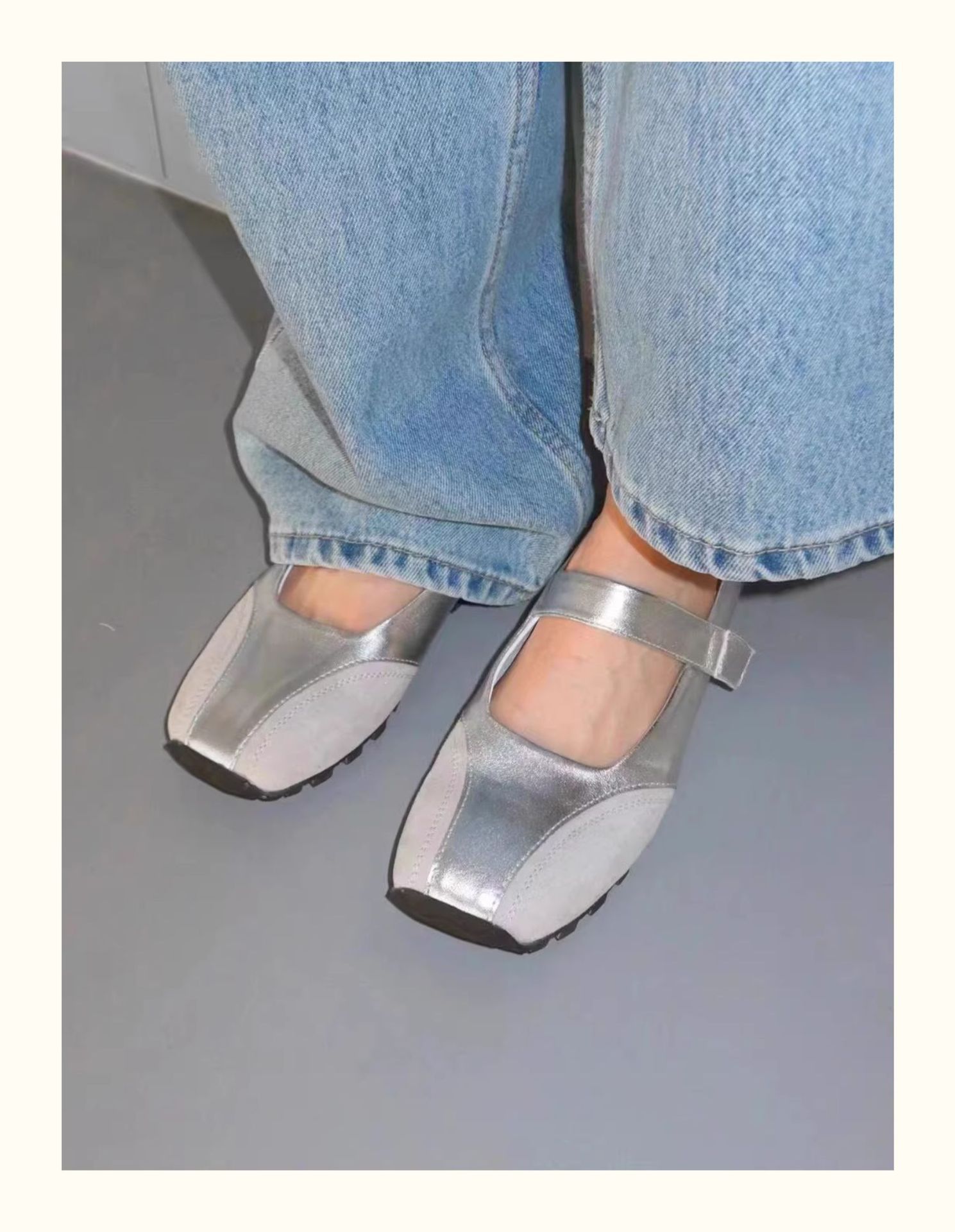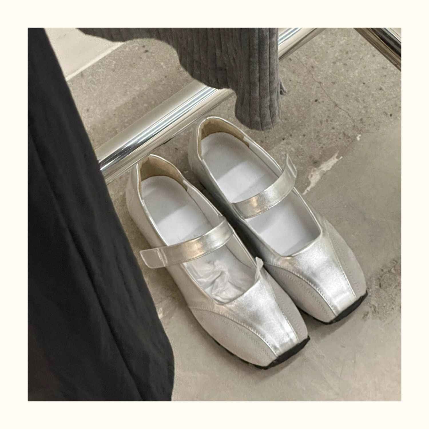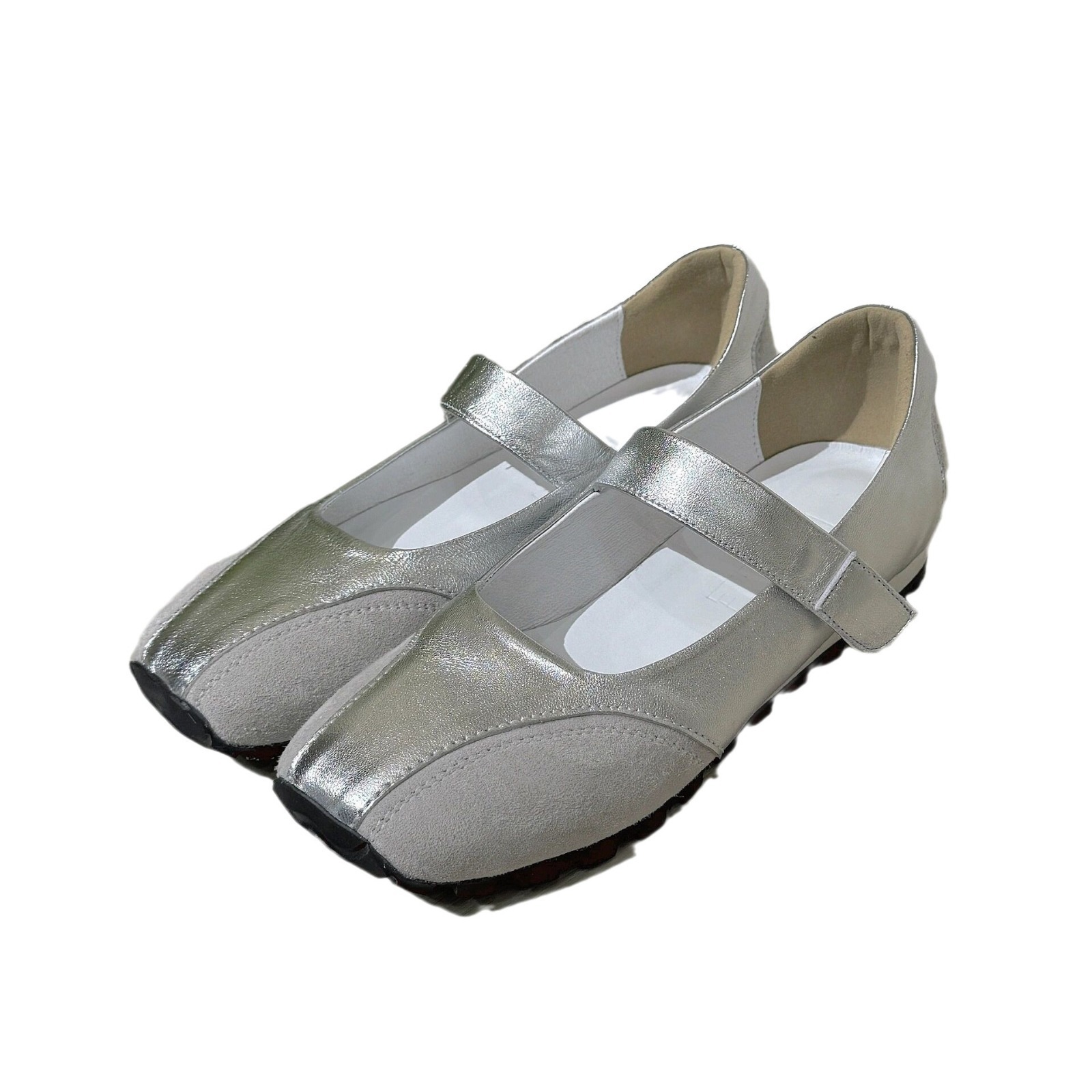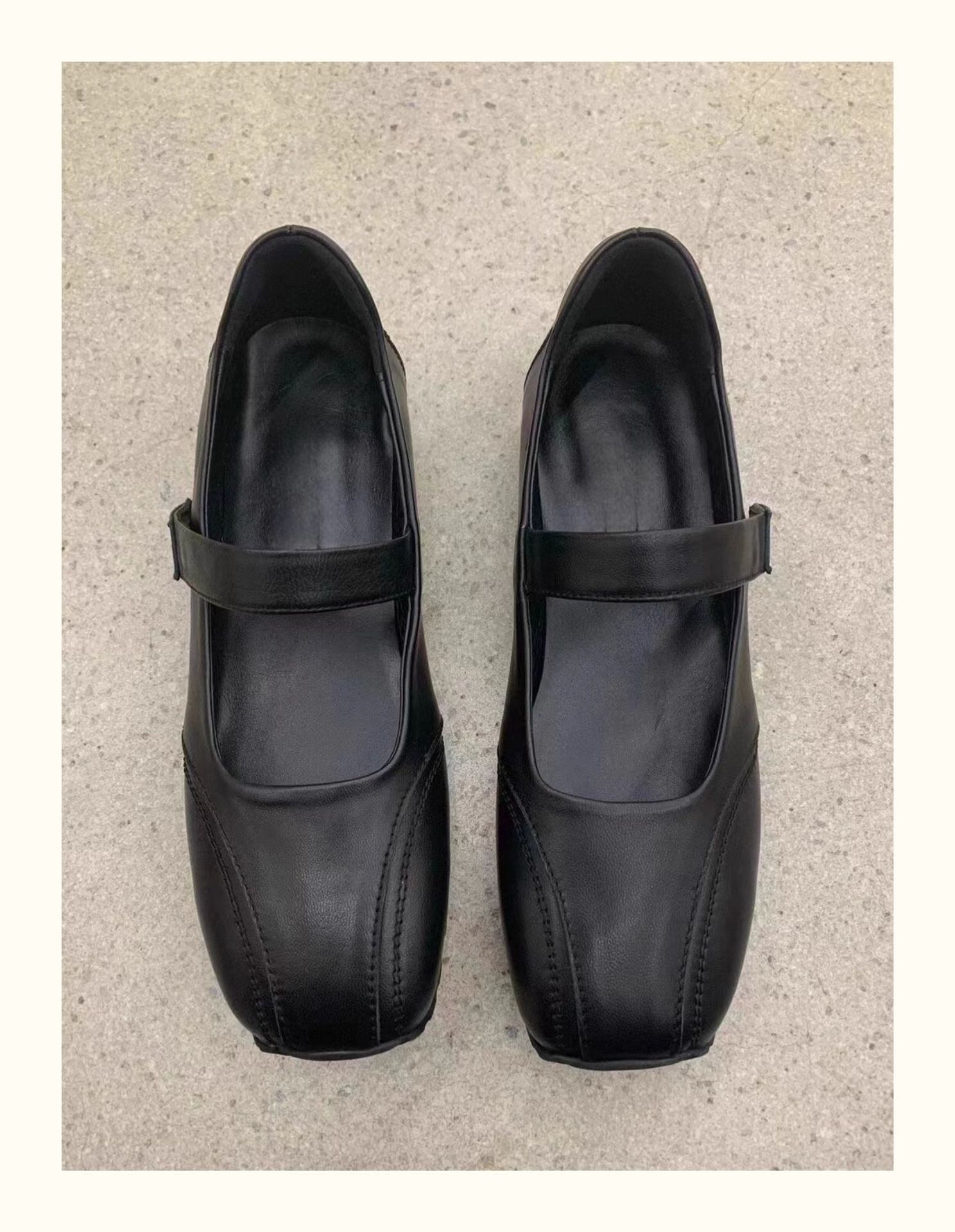 Cowhide Edition ~ 프렌치 스퀘어 발가락 플랫 메리 제인 여성 신발 24 년 새로운 정품 가죽 조커 얕은 입 벨크로 신발