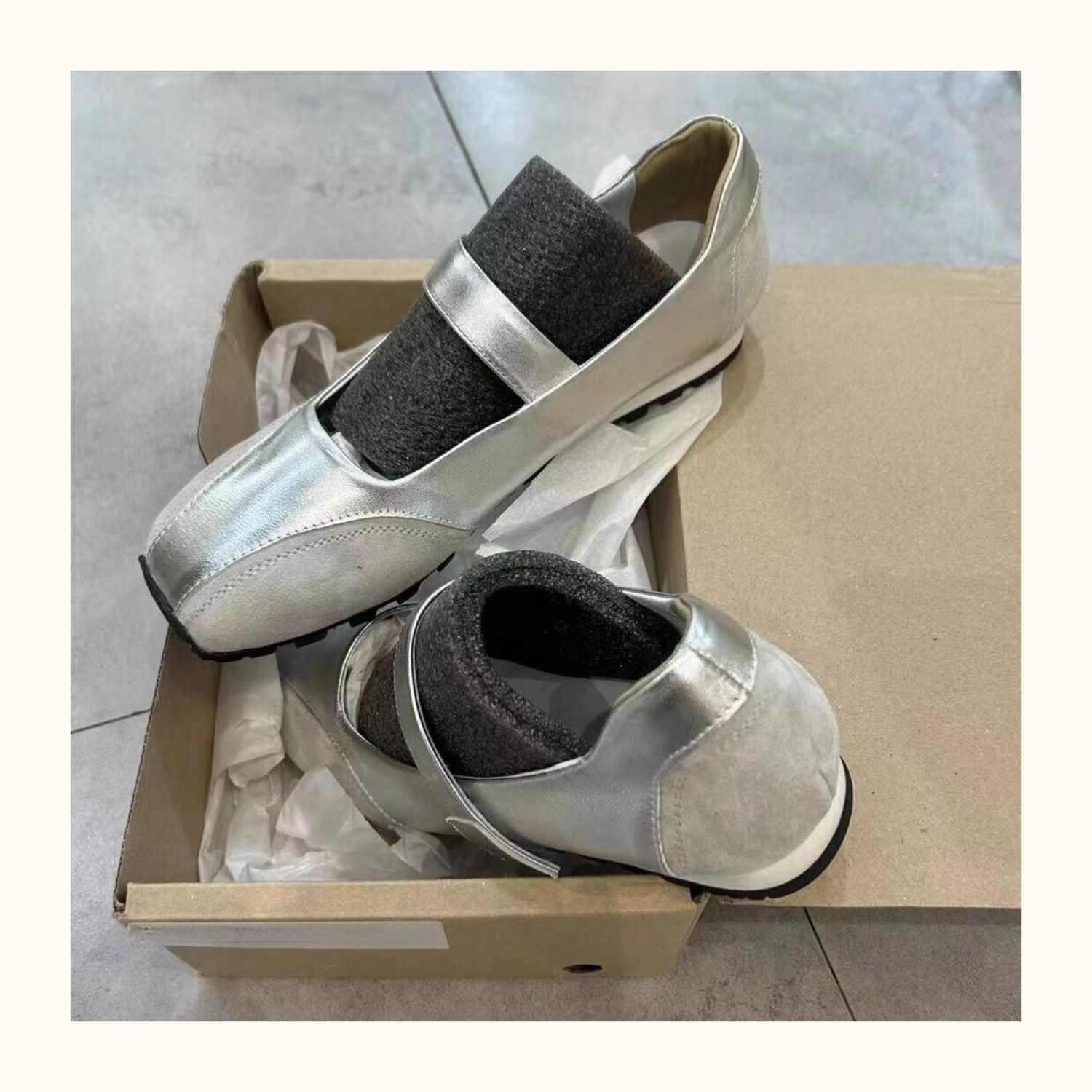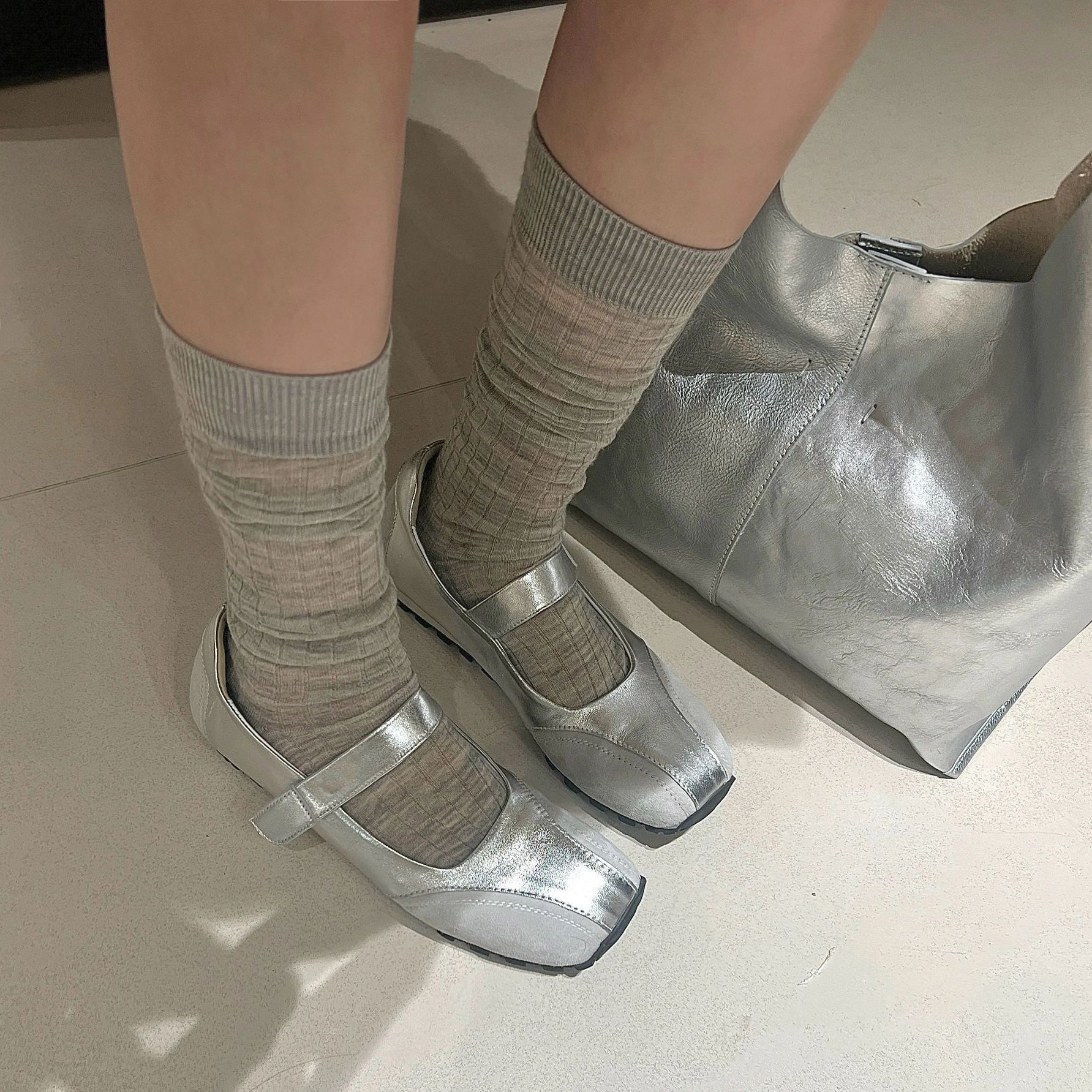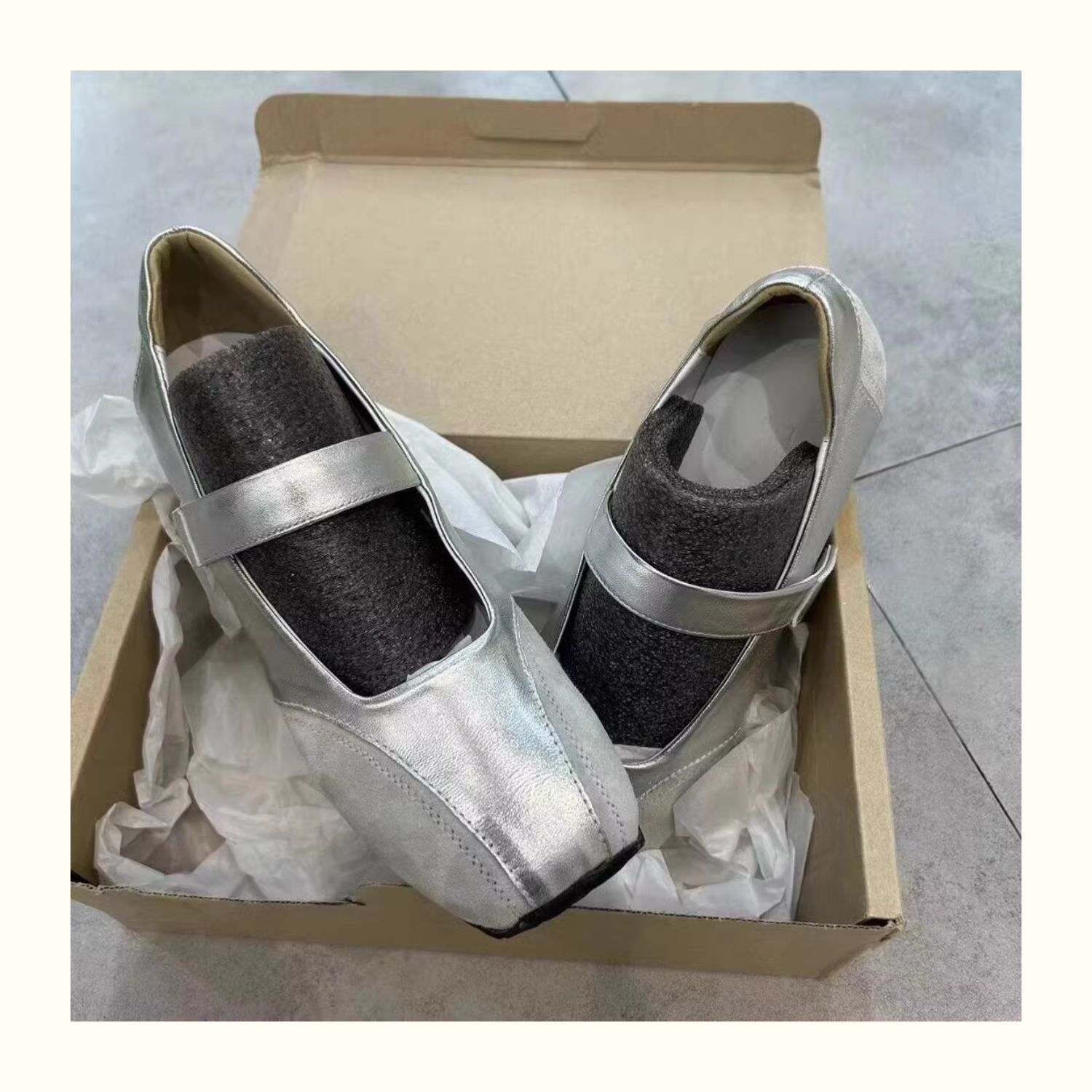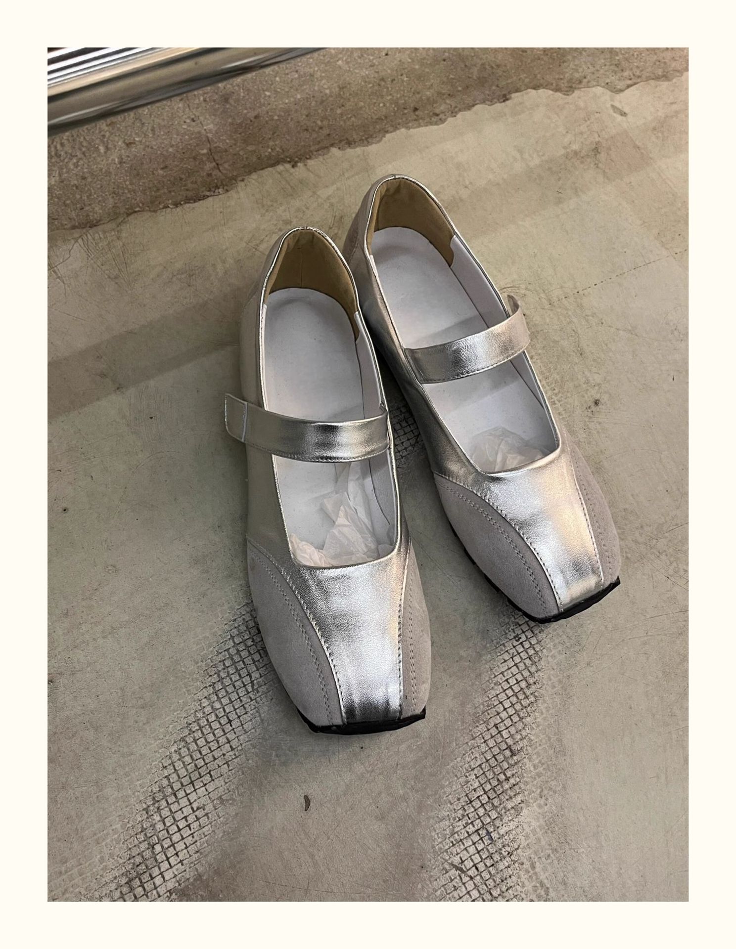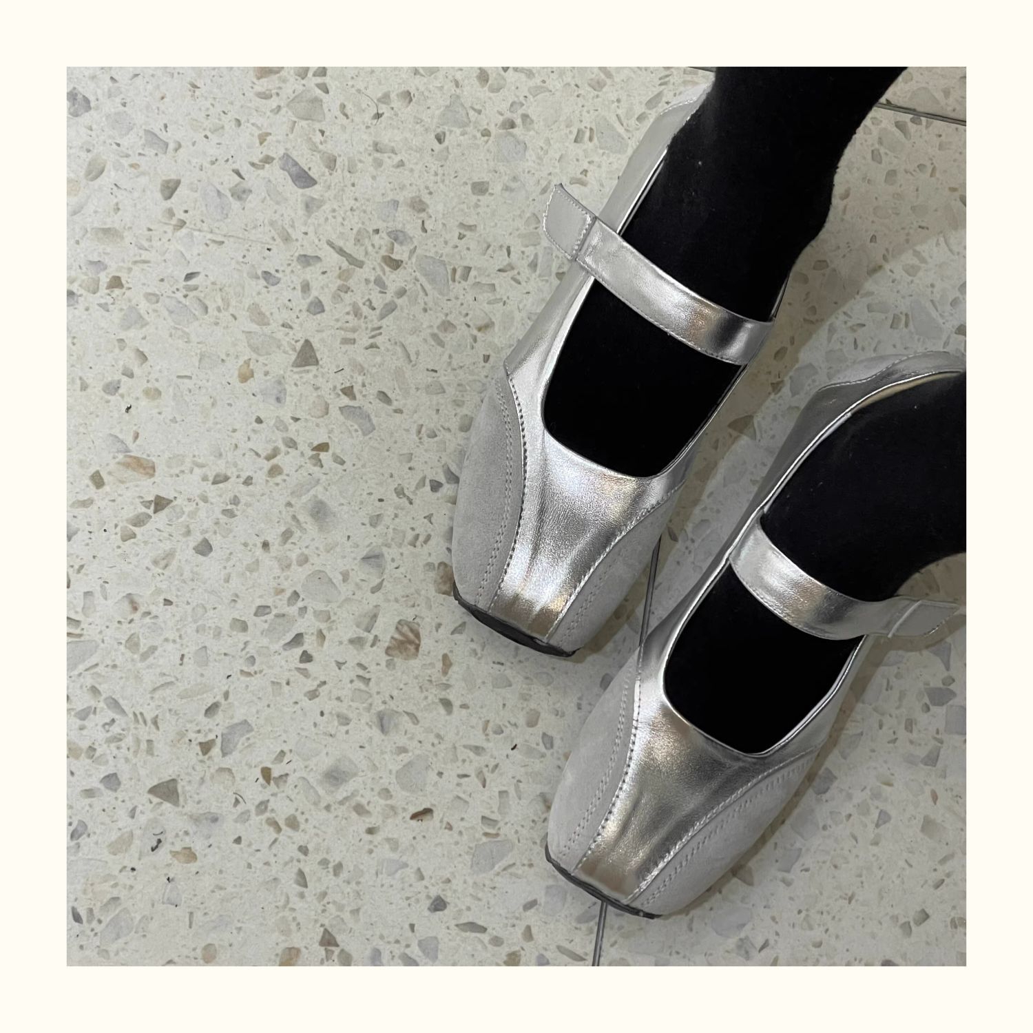 Cowhide Edition ~ 프렌치 스퀘어 발가락 플랫 메리 제인 여성 신발 24 년 새로운 정품 가죽 조커 얕은 입 벨크로 신발