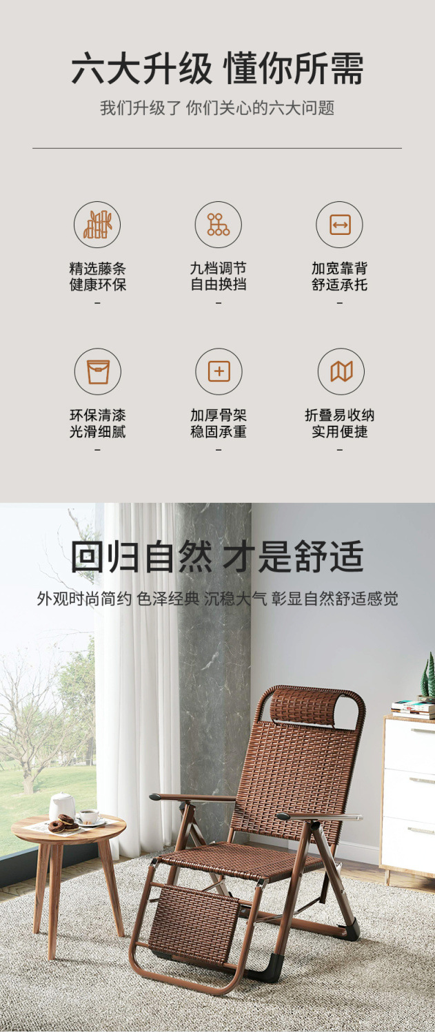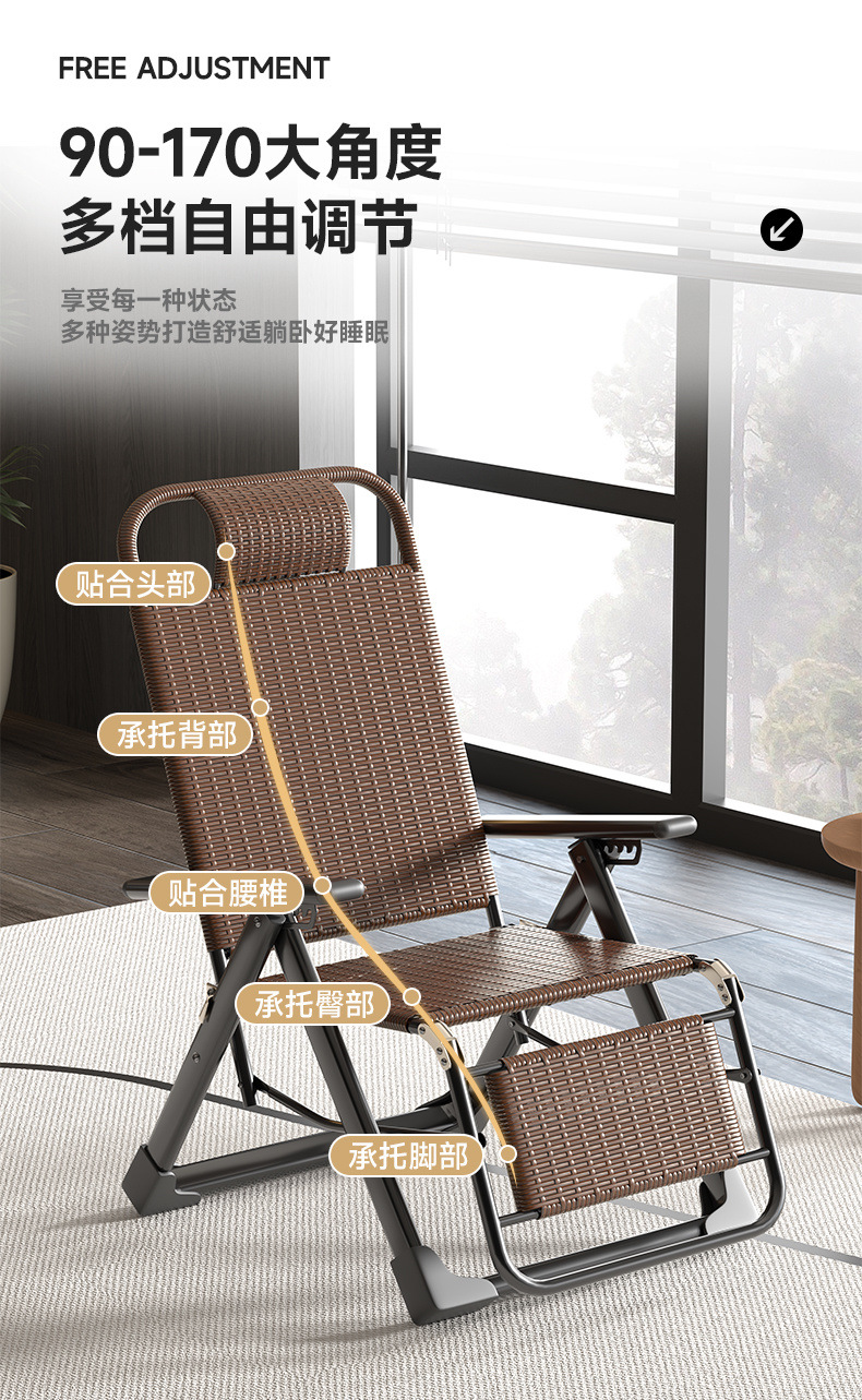등나무 레코더 접이식 등받이 게으른 의자 성인 점심 휴식 홈 거실 발코니 사무실 레저 여름 시원한 의자