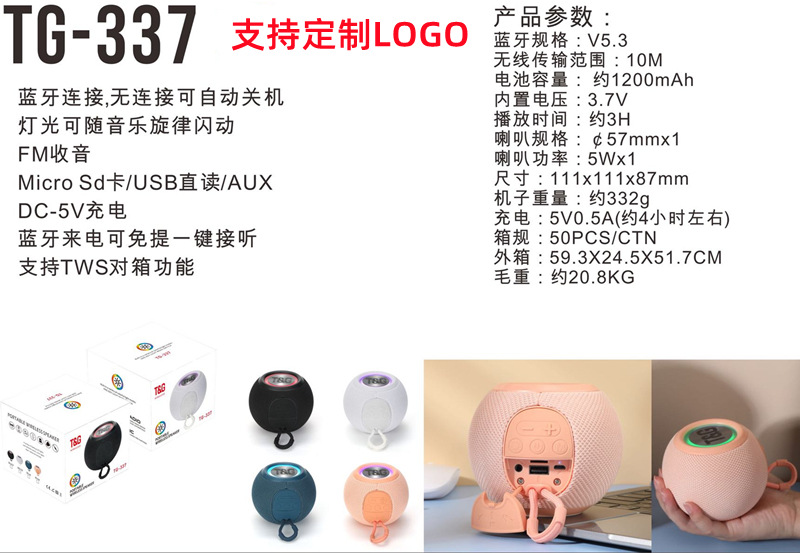 대외 무역 국경 TG337 블루투스 오디오 휴대용 라운드 작은 오디오 패브릭 led 빛 무선 서브 우퍼 스피커