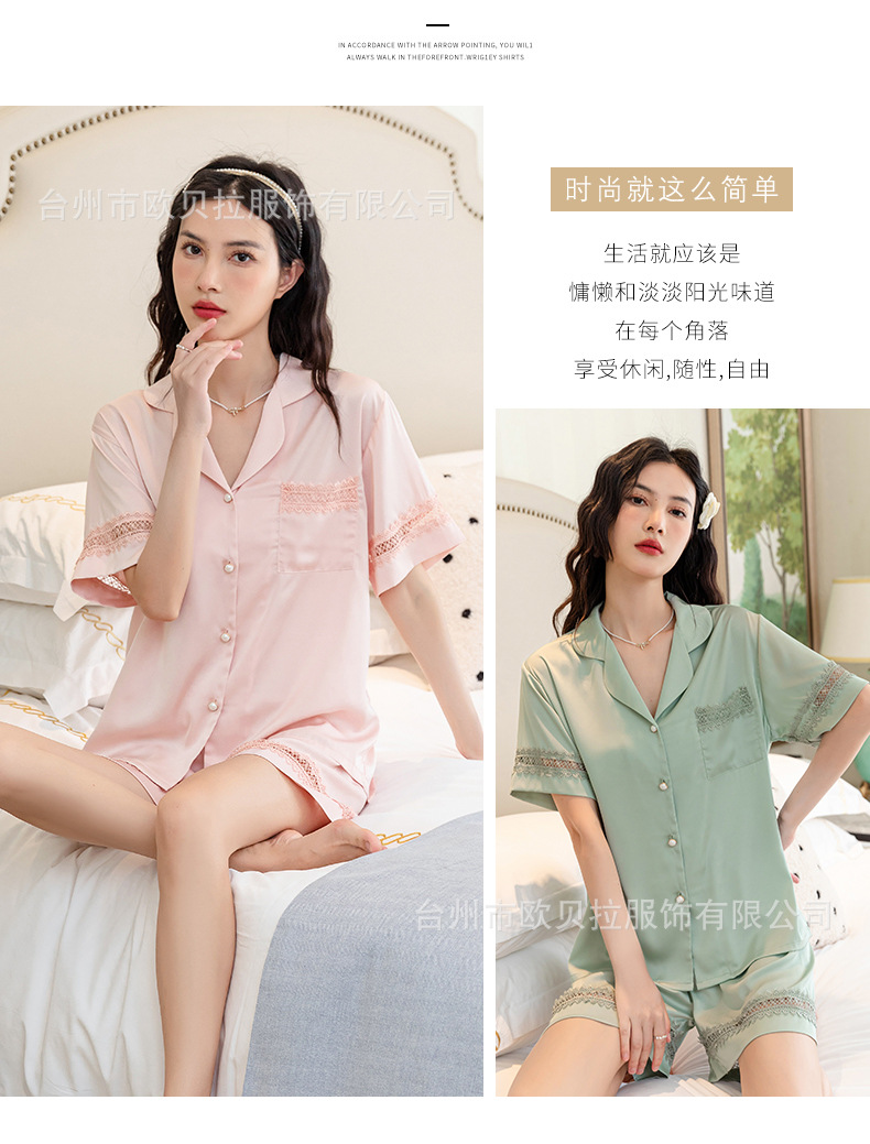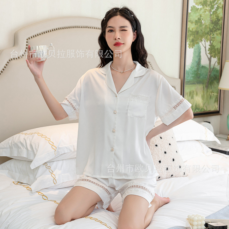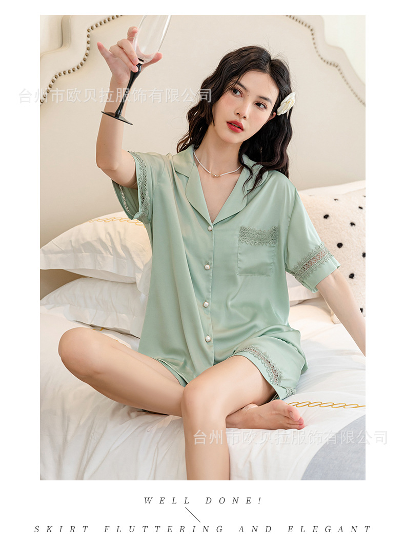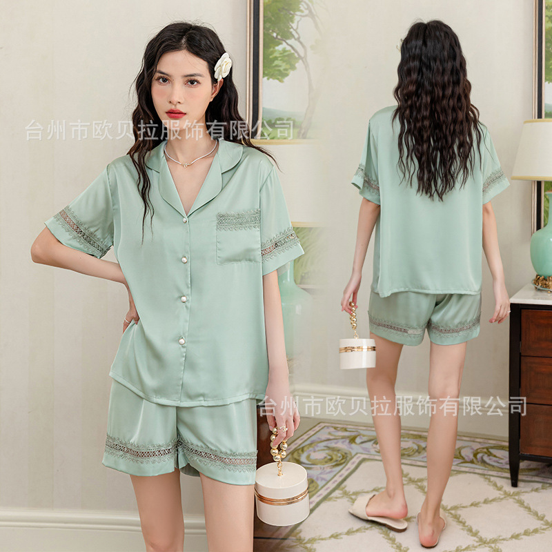작은 빨간 책 추천 아이스 실크 잠옷 여성의 봄과 여름 새로운 하이 엔드 센스 얇은 실크 짧은 소매 반바지 홈 의류 도매