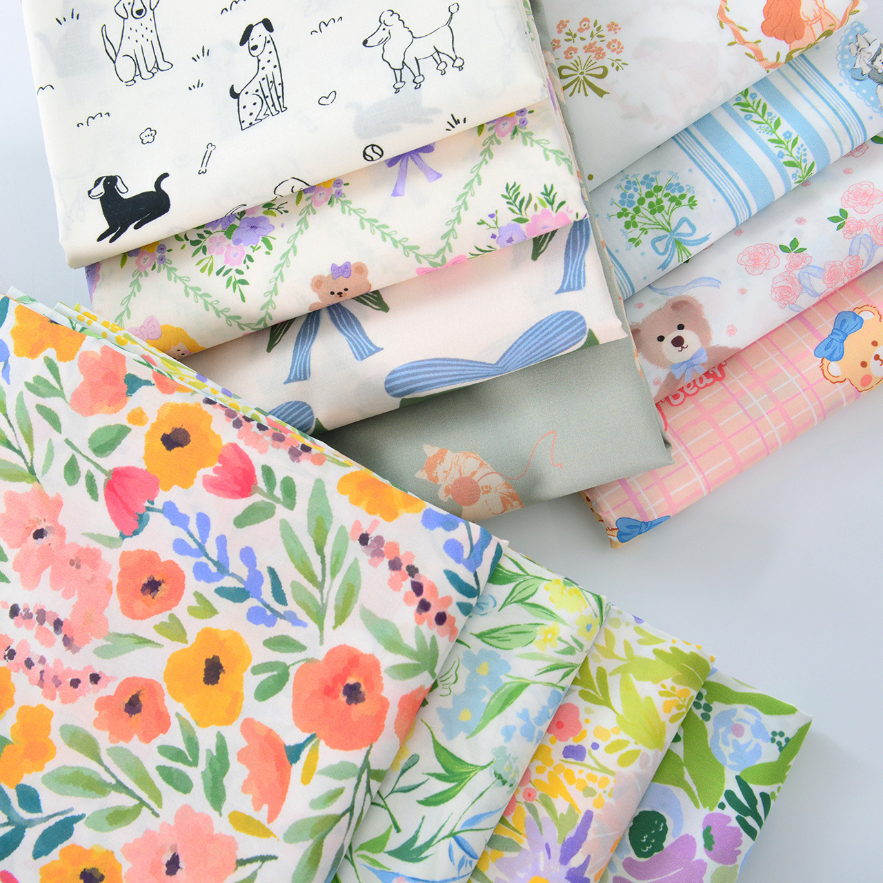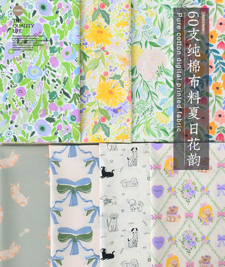 60 점 순면 직물 복고풍 바람 인쇄 모든 면직물 만화 수제 어린이 원피스 인형 옷 여름 꽃 운율