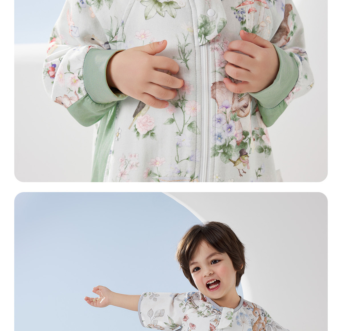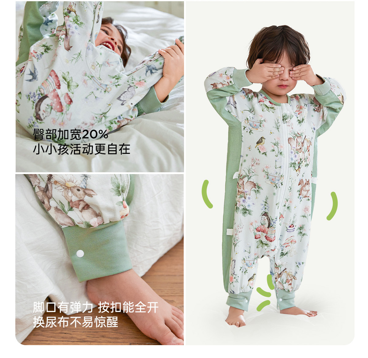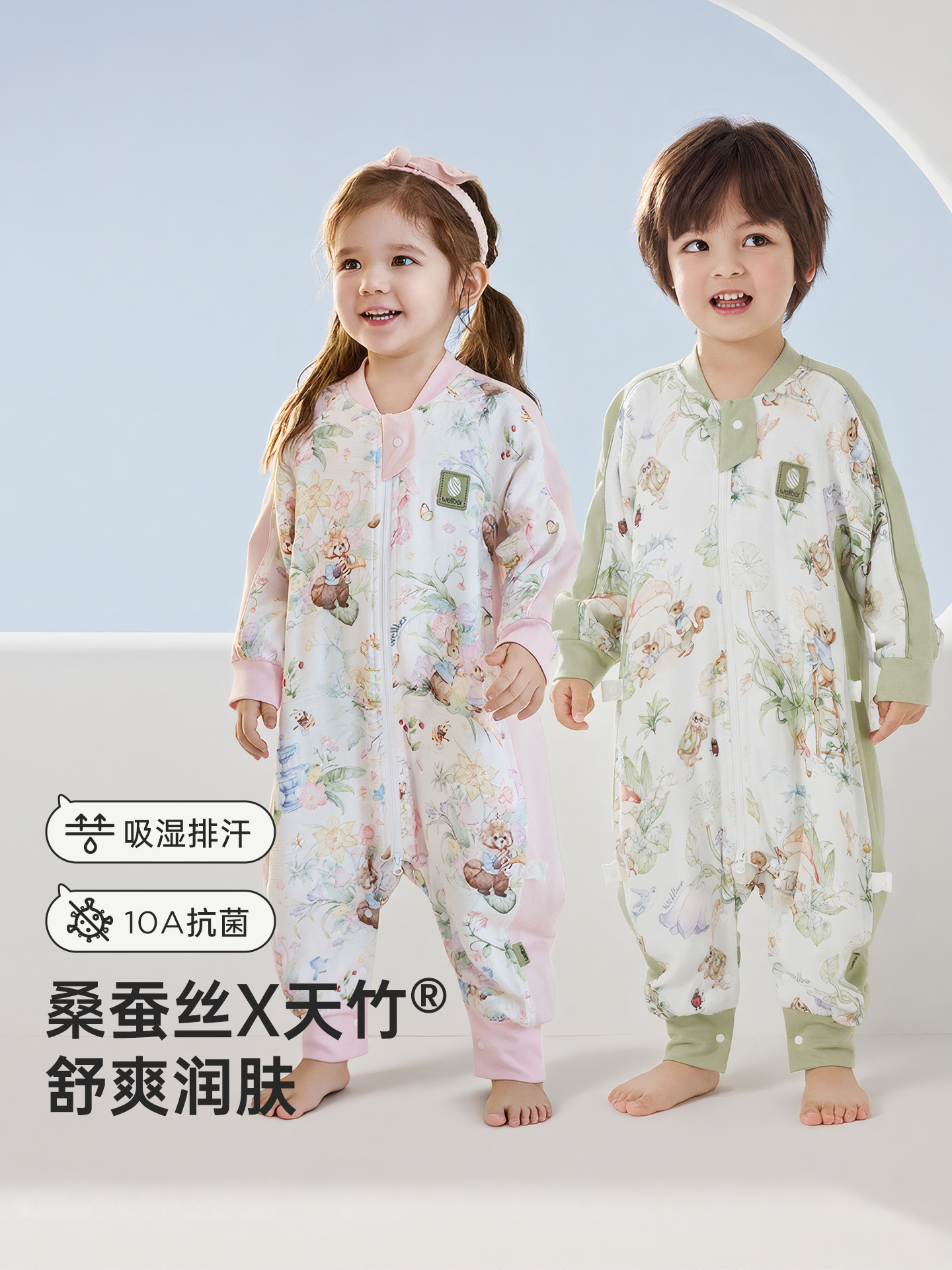 윌베루 유아용 침낭 A급 대나무면 실크 거즈 소재 아동용 방한 편안한 다리 분리형 침낭