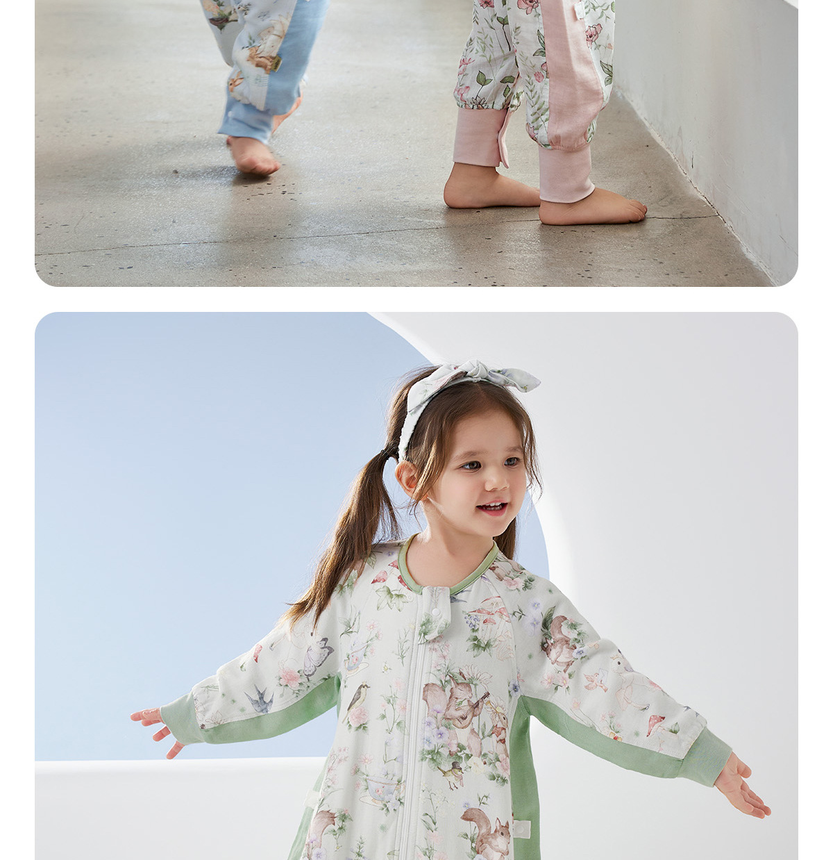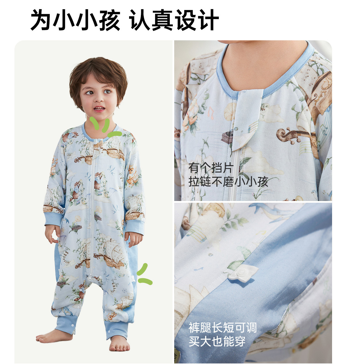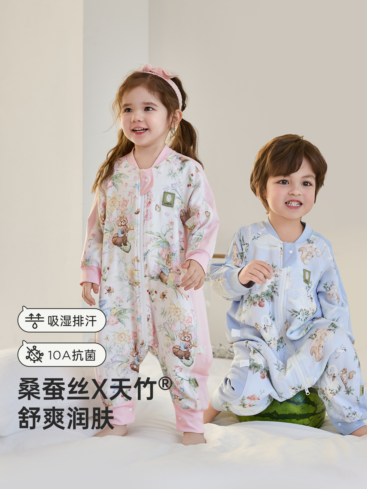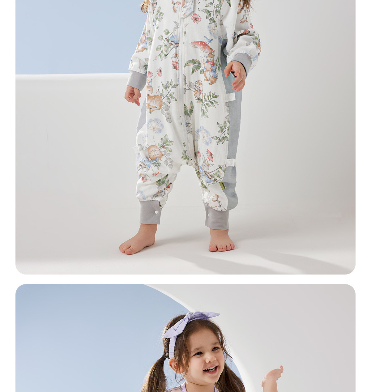 윌베루 유아용 침낭 A급 대나무면 실크 거즈 소재 아동용 방한 편안한 다리 분리형 침낭