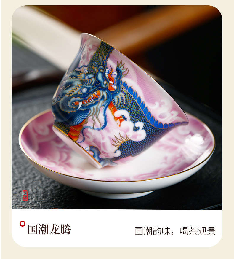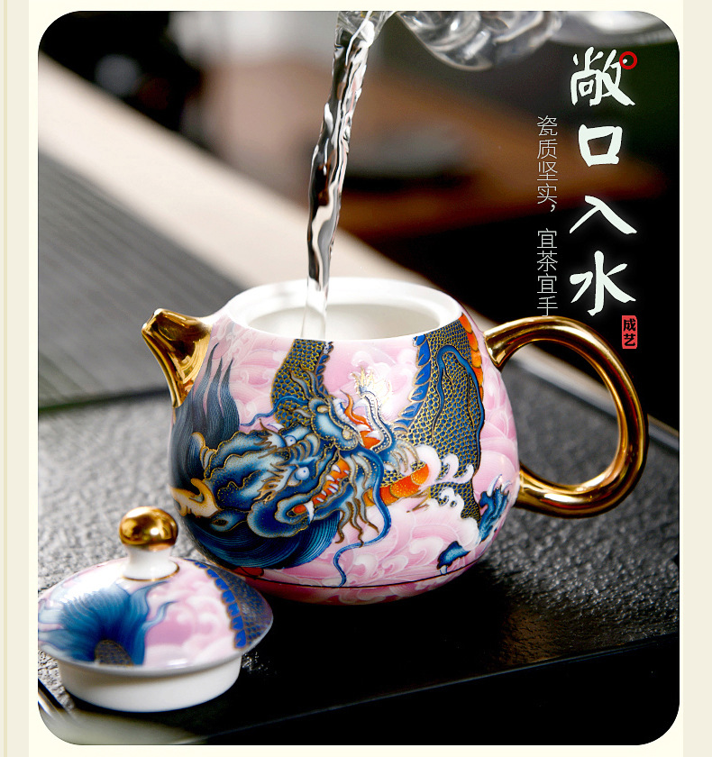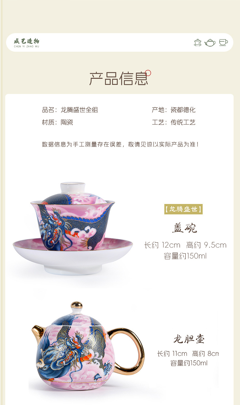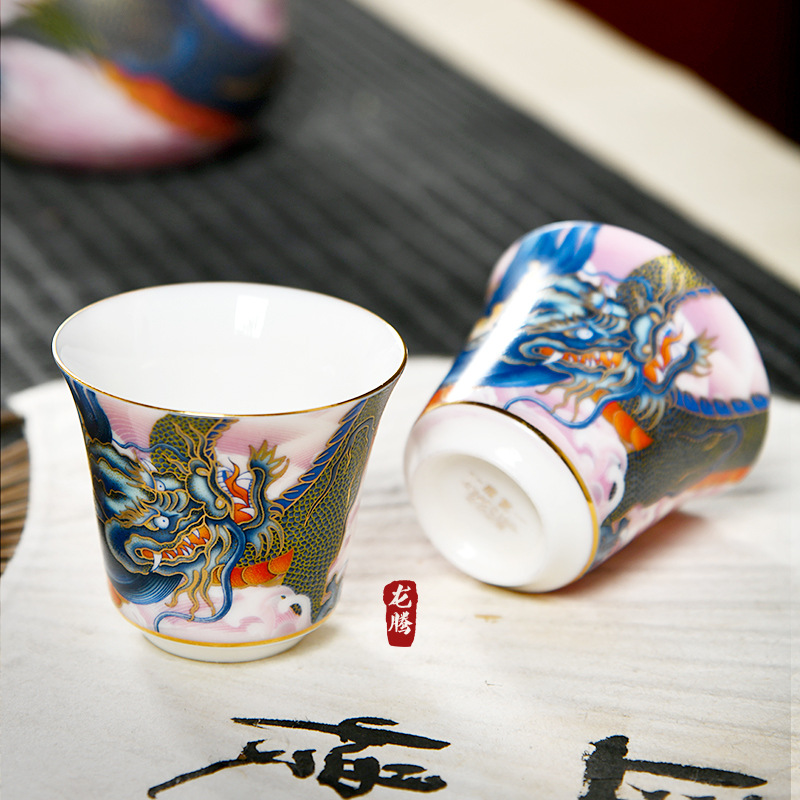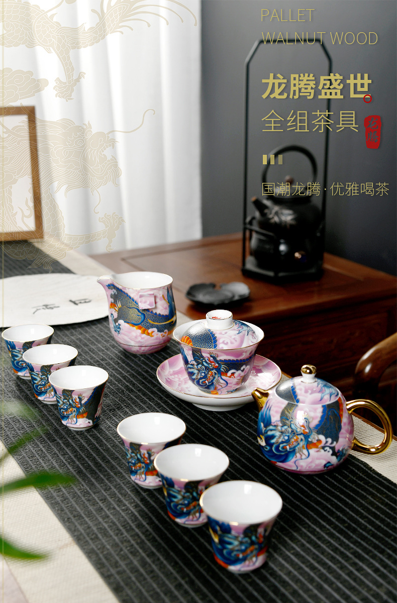 Chengyi 워크숍 Longteng Shengshi 세라믹 차 세트 세트 가정용 차 그릇 물 컵 차 시음 컵 중국 흰색 도자기 겐티아나 냄비