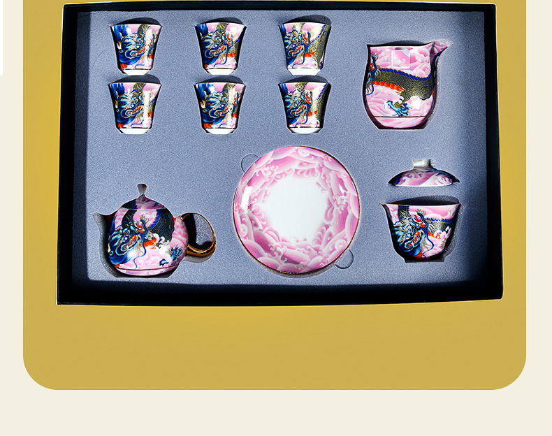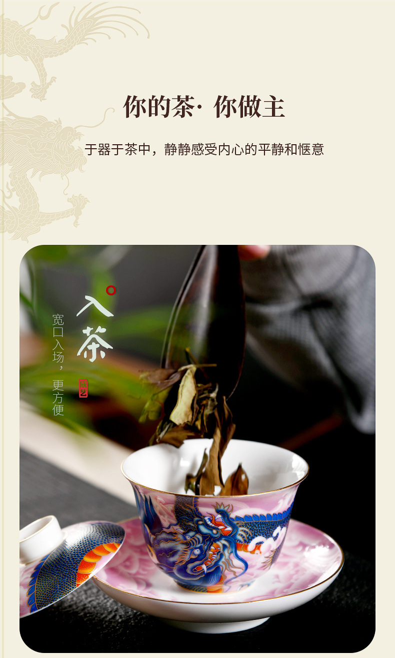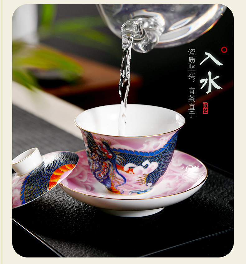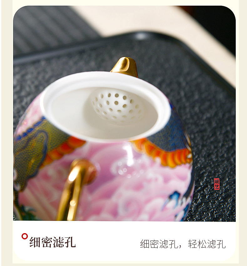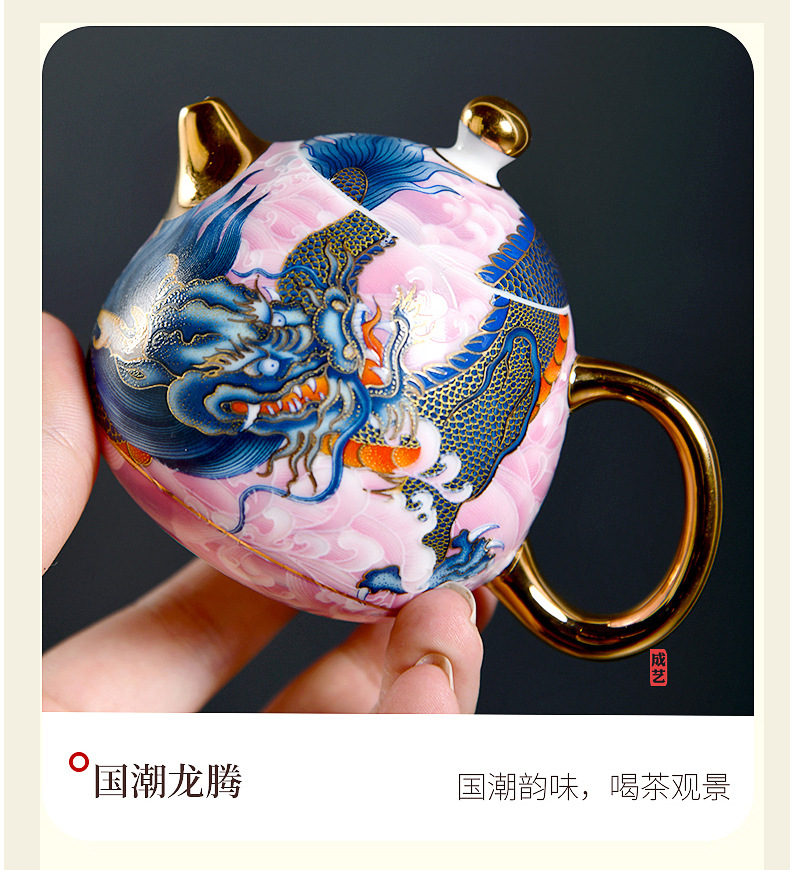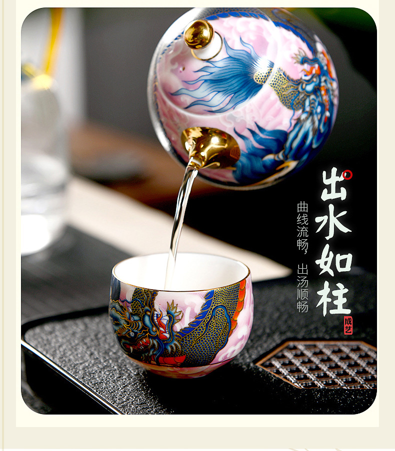 Chengyi 워크숍 Longteng Shengshi 세라믹 차 세트 세트 가정용 차 그릇 물 컵 차 시음 컵 중국 흰색 도자기 겐티아나 냄비