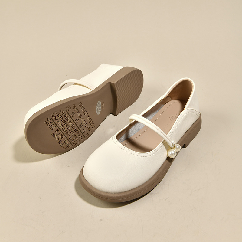 정품 가죽 메리 제인 신발 여성 플랫 신발 봄 2024 새로운 흰색 Lefu 신발 스커트 부드러운 작은 가죽 신발