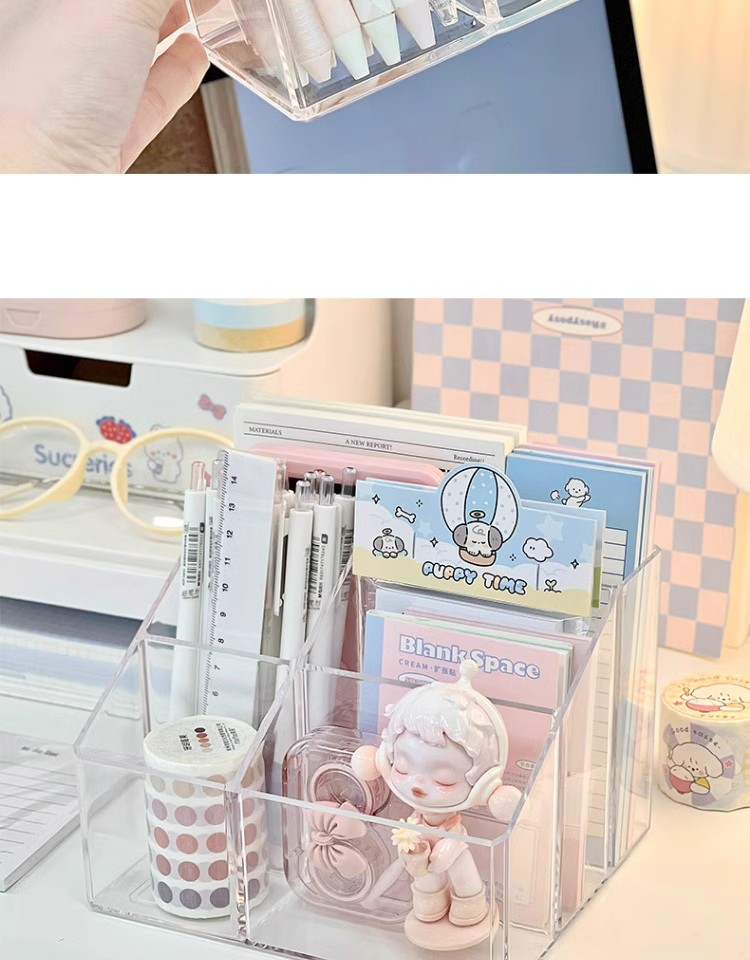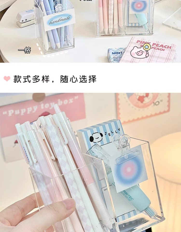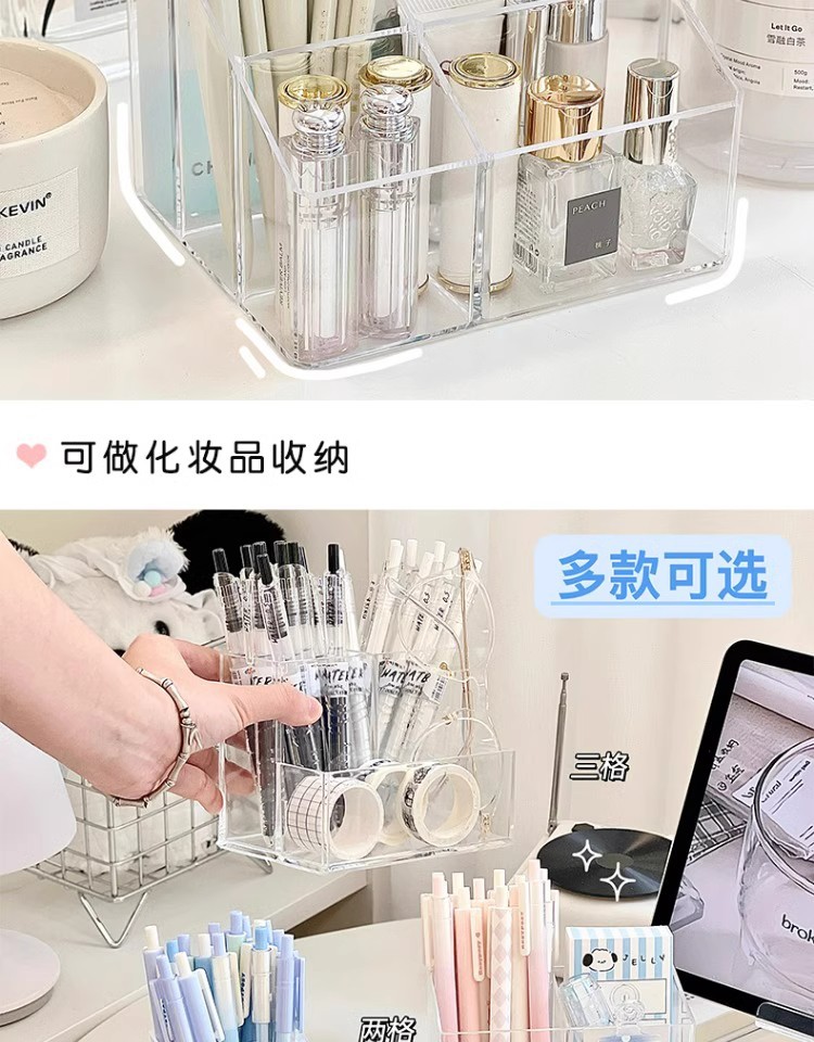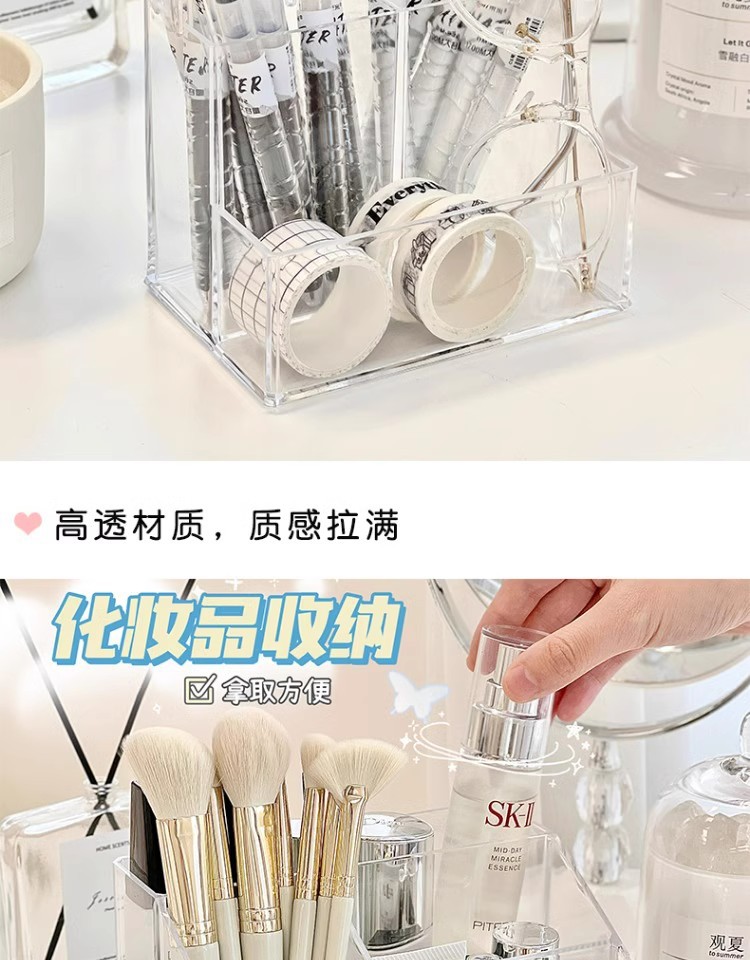 투명 스토리지 박스 화장품 데스크탑 립스틱 메이크업 브러시 펜 홀더 스토리지 랙 간단한 학생 스토리지 배럴 아크릴