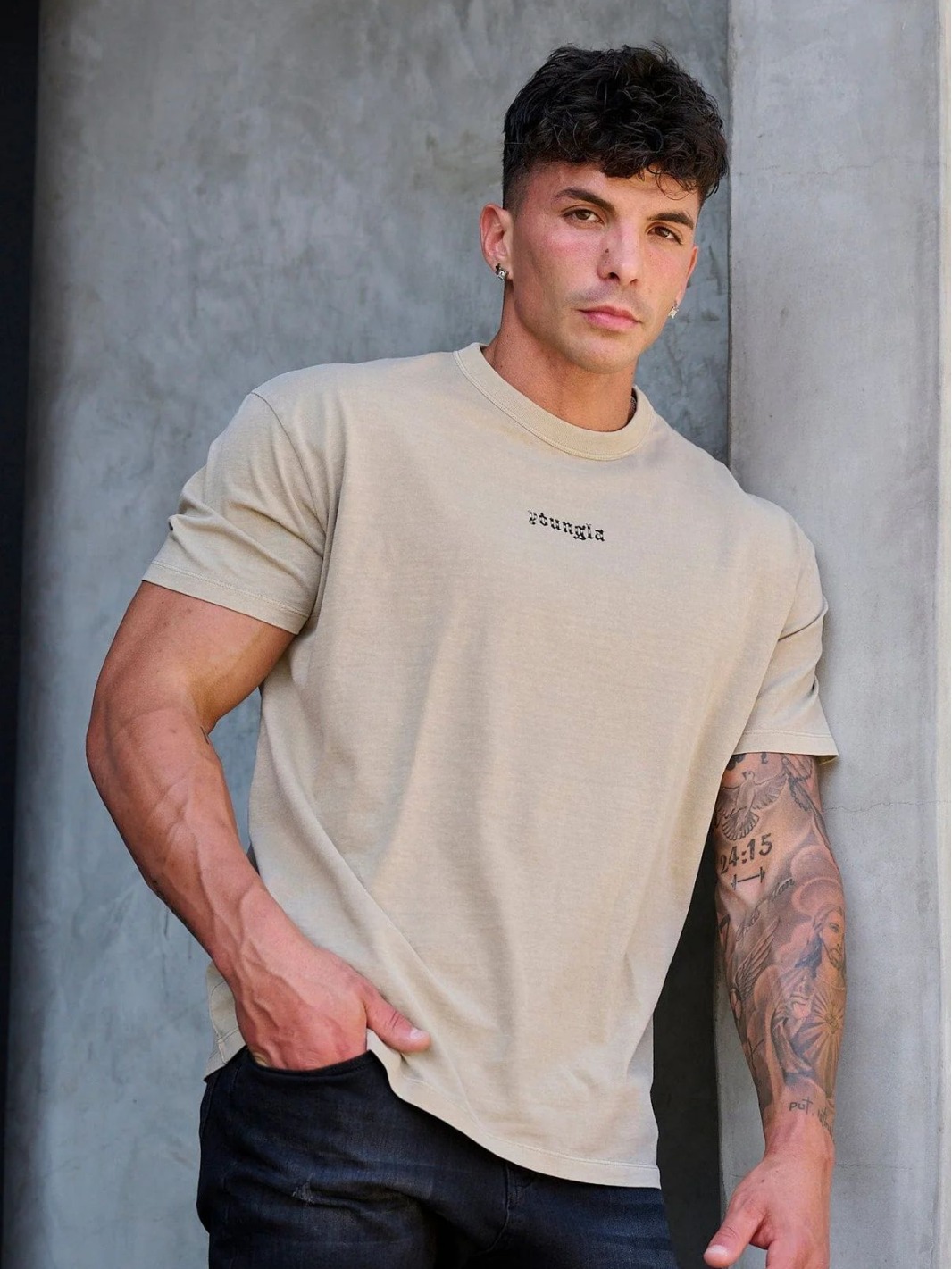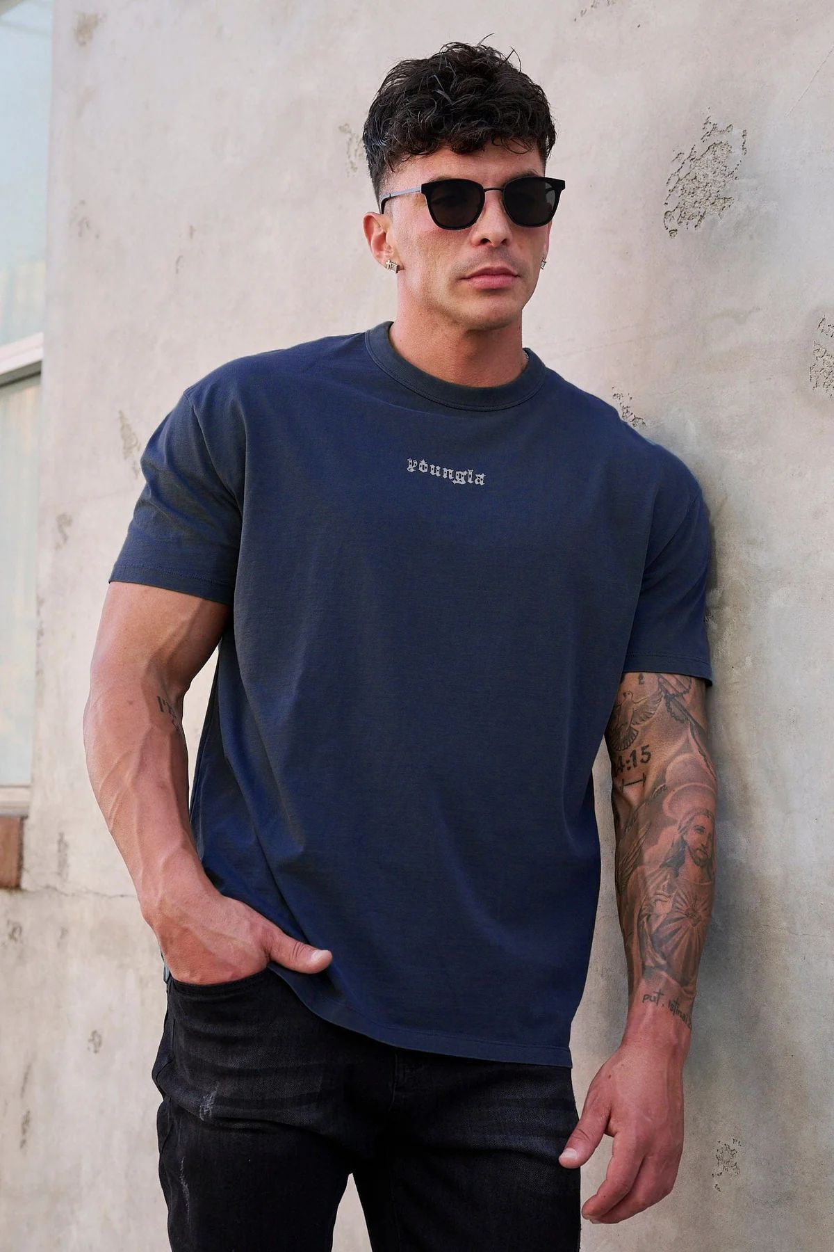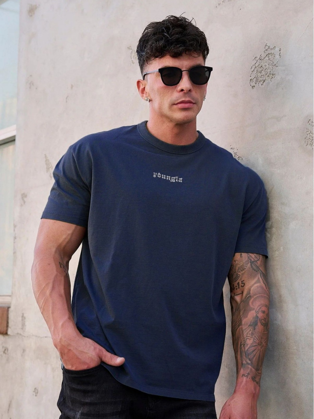 YOUNGLA 남자 대형 티셔츠 근육 스포츠 피트니스 코튼 라운드 넥 짧은 소매 체육관 달리기 농구 훈련